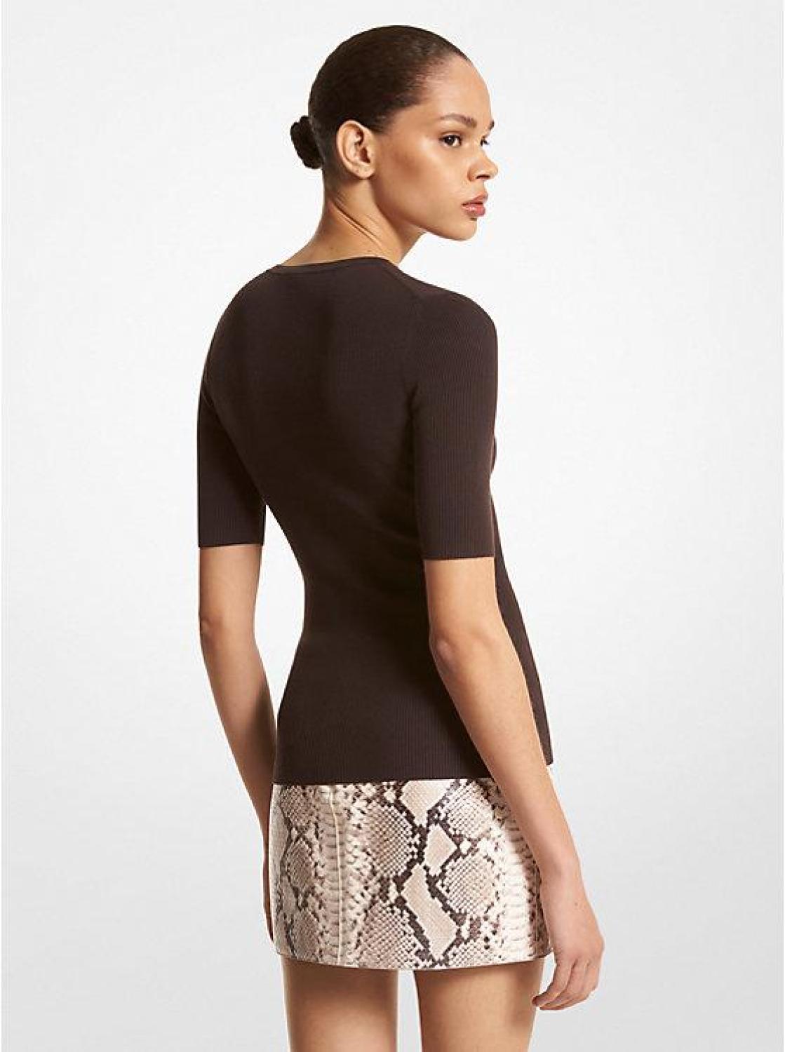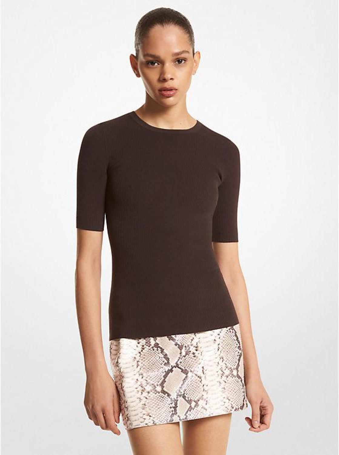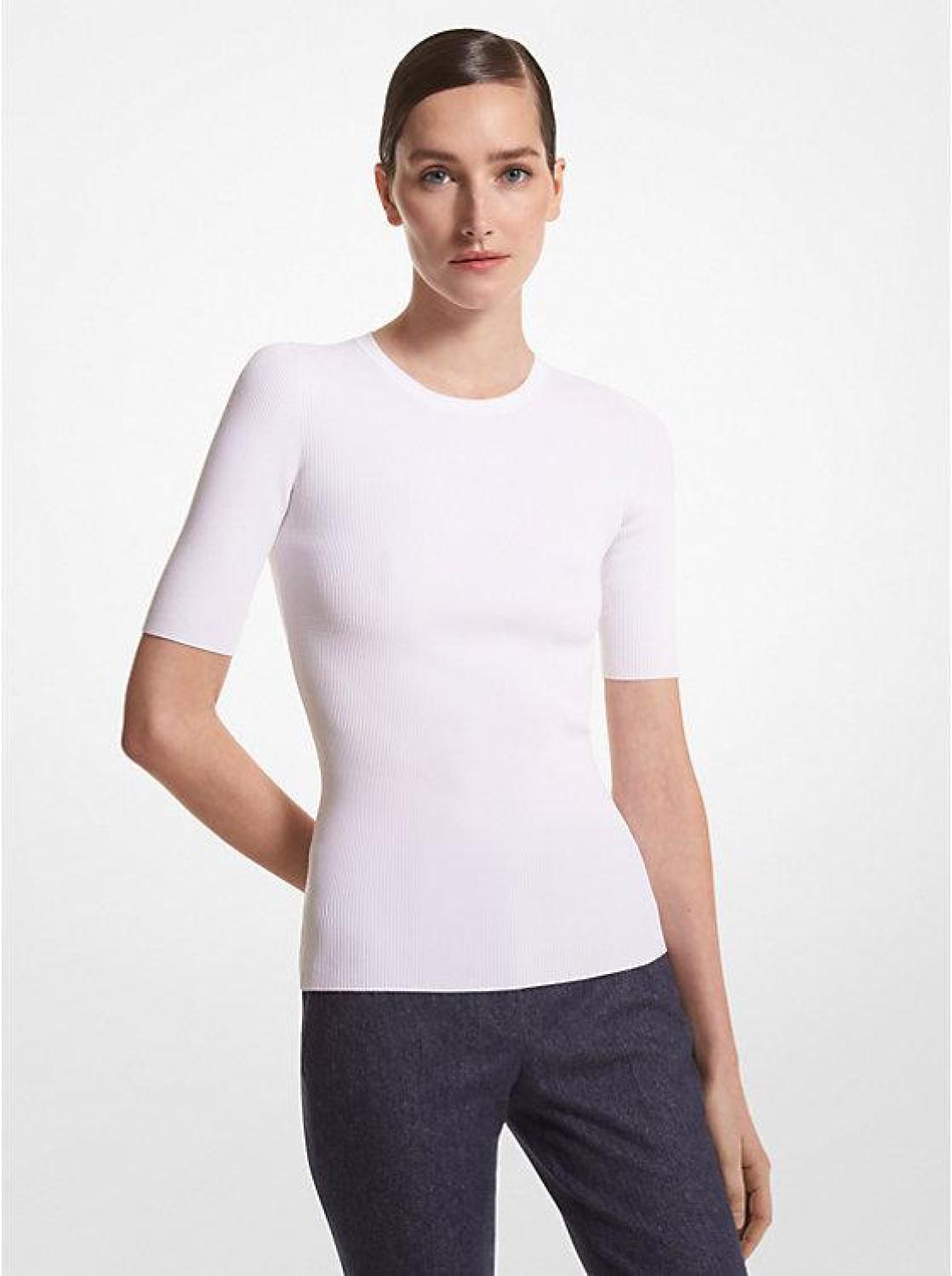 Our luxurious take on the classic crewneck T-shirt is crafted from a ribbed stretch viscose with a crew neckline and quarter-length sleeves. With its season-spanning versatility, this essential style can be easily tucked into tailored pants or jeans.