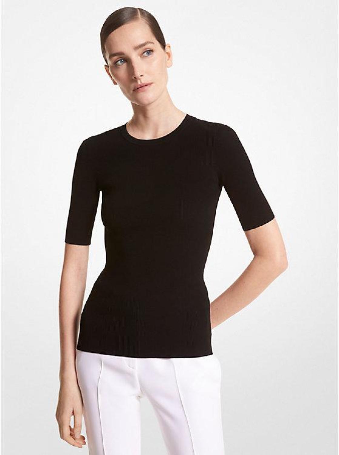 • Our luxurious take on the classic crewneck T-shirt is crafted from a ribbed stretch viscose with a crew neckline and quarter-length sleeves. With its season-spanning versatility, this essential style can be easily tucked into tailored pants or jeans.