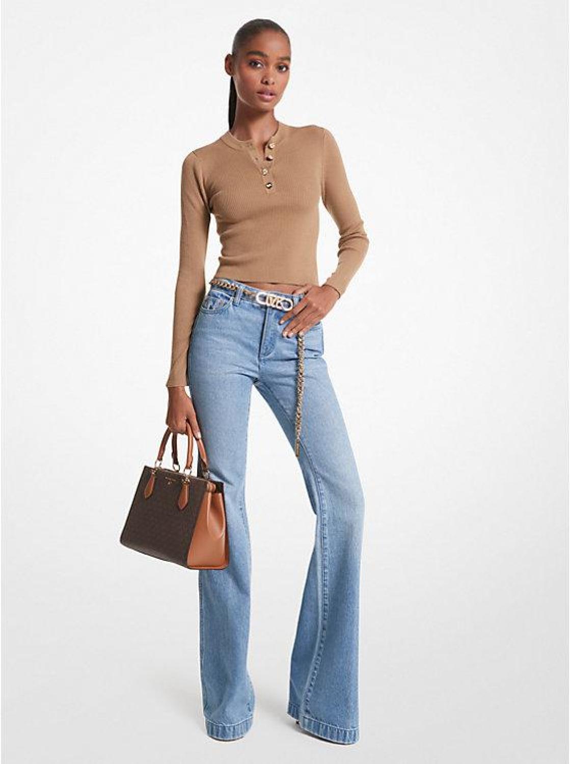 • Taking inspiration from a classic henley pullover, this wool-blend sweater is crafted in a ribbed knit and features a sporty four-button neckline. Team it with light-wash jeans and a sleek ponytail for a minimalist moment.