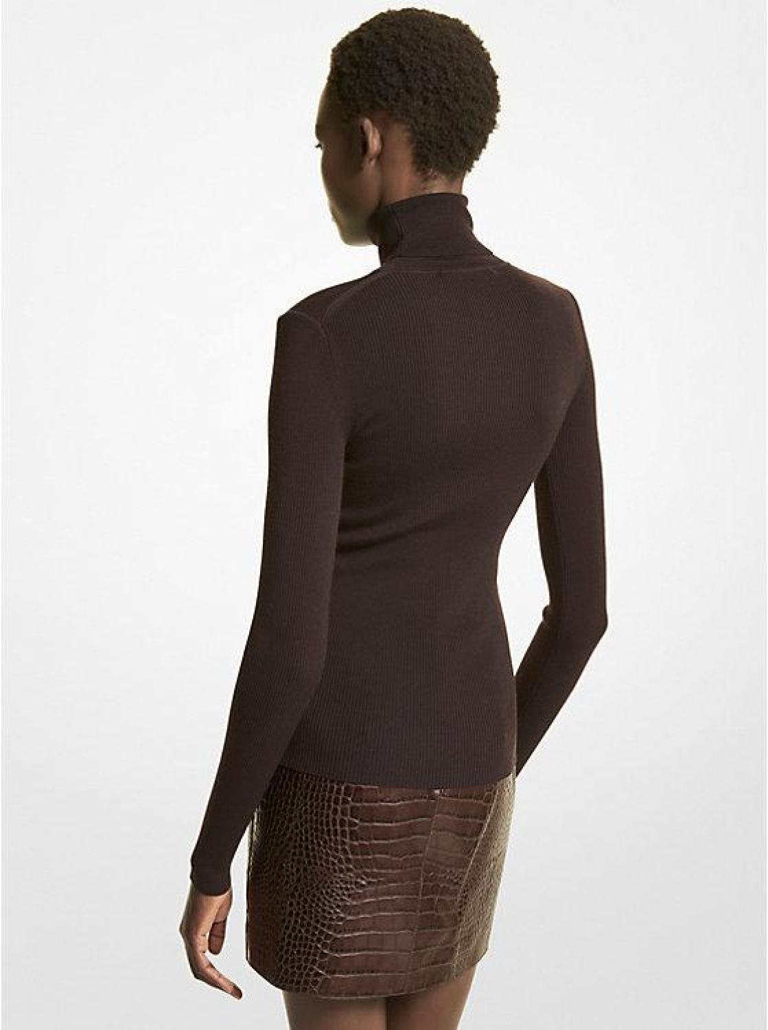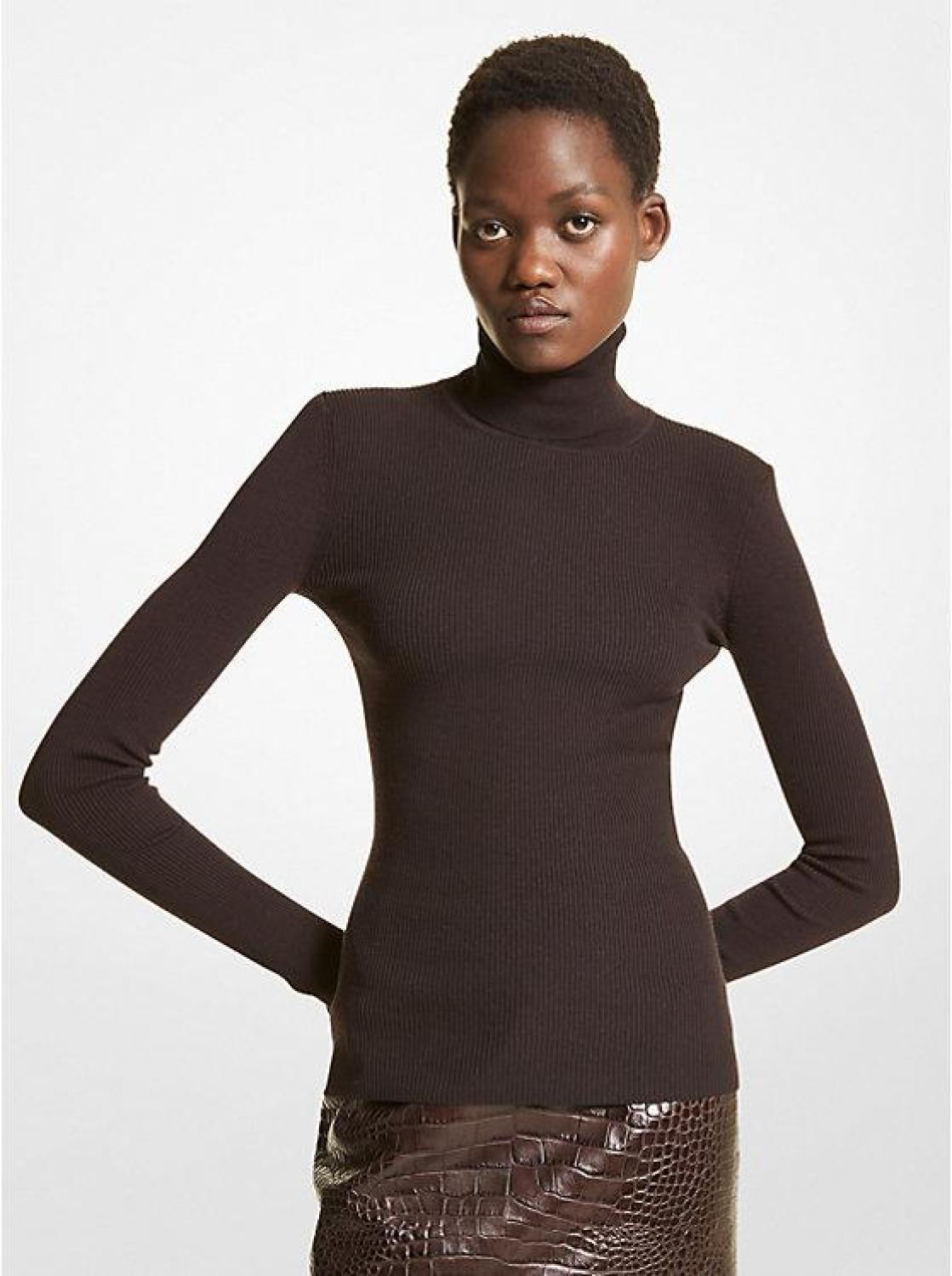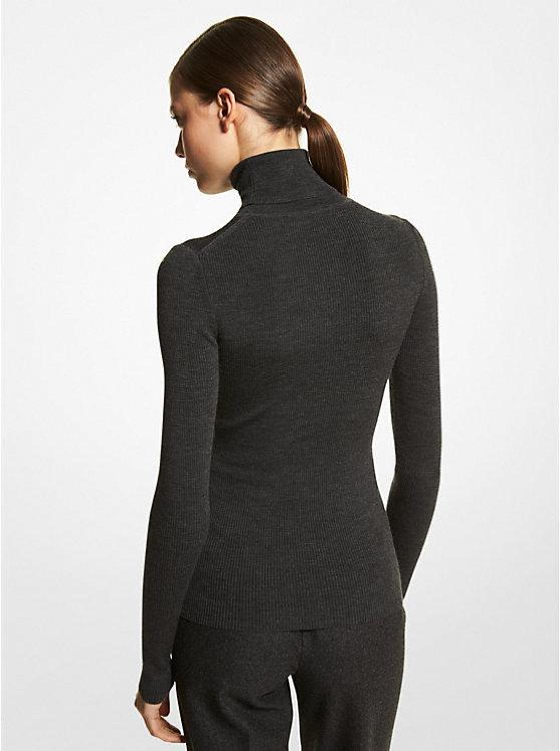 - This turtleneck sweater is a wardrobe essential with styling versatility. Featuring a ribbed finish for added texture, it’s knit from a fine merino wool blend that’s woven with stretch for a figure-flattering fit. An elevated everyday piece, it will complement the season’s ocelot-printed separates and solid trousers alike. Turtleneck sweater Wool blend 80% wool/13% nylon/7% elastane Dry clean Imported using Italian fabric Model is 5’10”/178 cm wearing size XS Turtleneck sweater Wool blend 80% wool/13% nylon/7% elastane Dry clean Imported using Italian fabric Model is 5’10”/178 cm wearing size XS