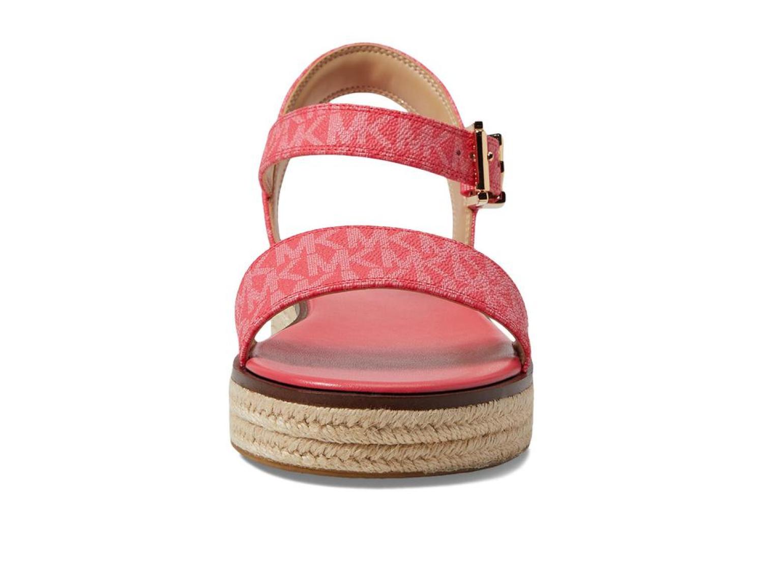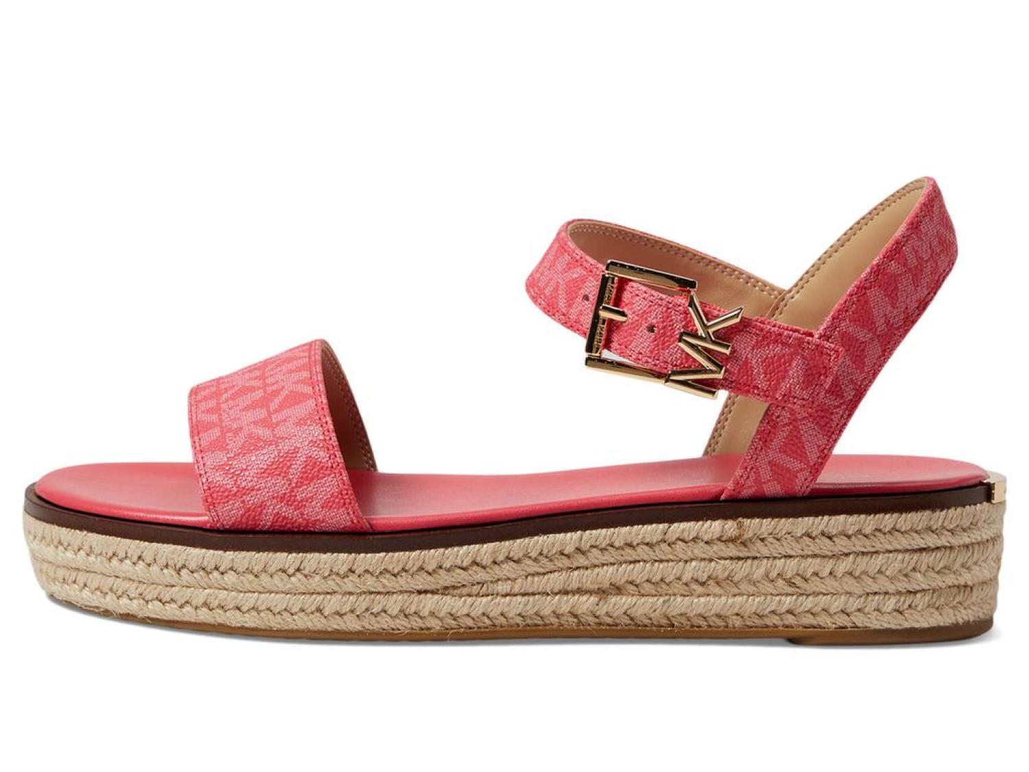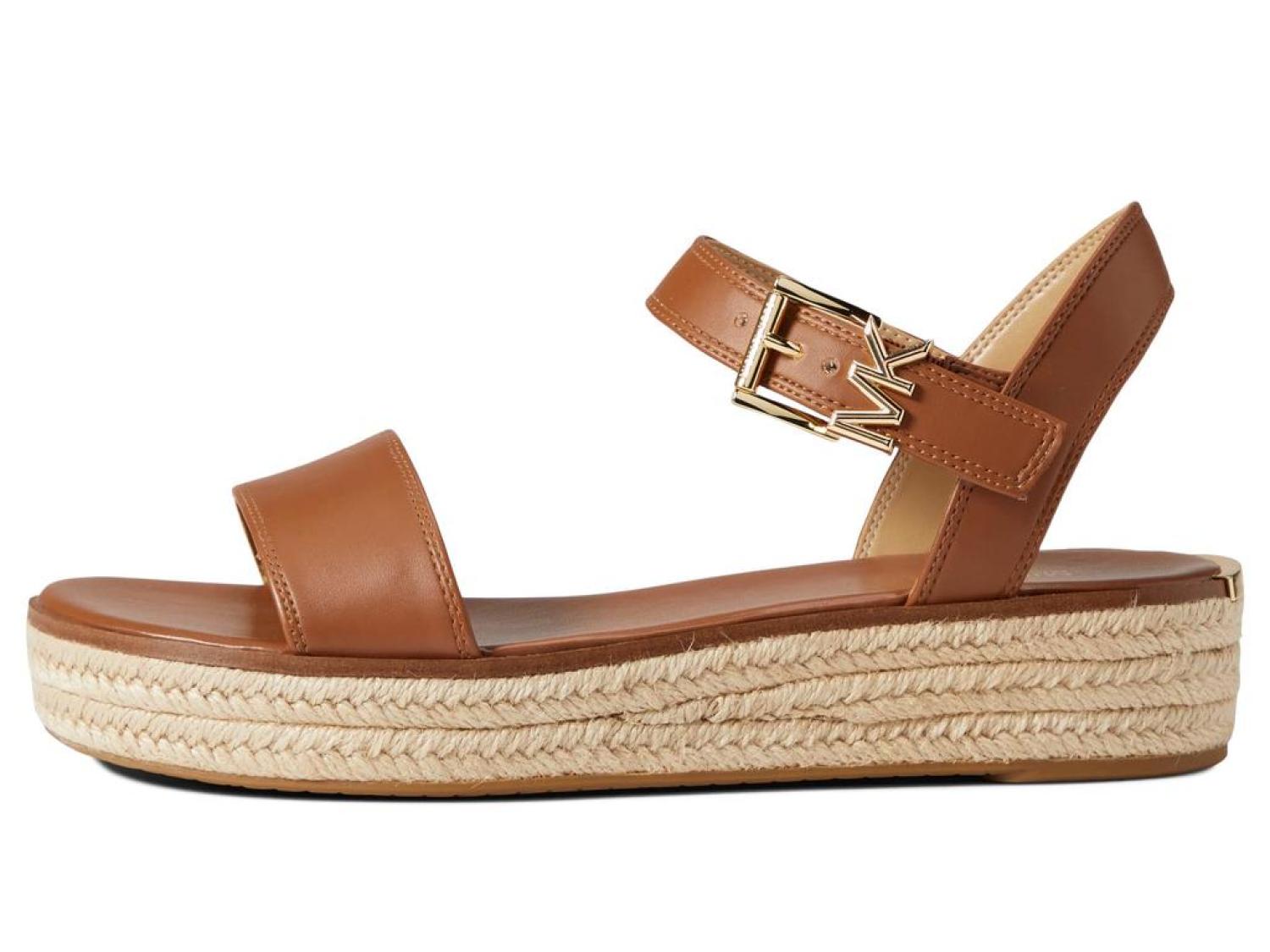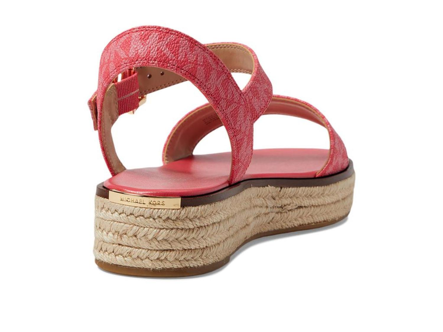 Sport a Bohemian look by wearing the super comfy and trendy MICHAEL Michael Kors® Richie Espadrille. Synthetic upper, lining, and insole. Slide-in style. Open toe and platform heel. Adjustable ankle strap with buckle closure. Jute braid detail on the outsole. Signature brand name detail on the buckle. Rubber outsole for added traction and durability. Imported. Product measurements were taken using size 8, width M. Please note that measurements may vary by size. Measurements: Heel Height: 1 1/4 in Weight: 6 oz Platform Height: 1 in-
