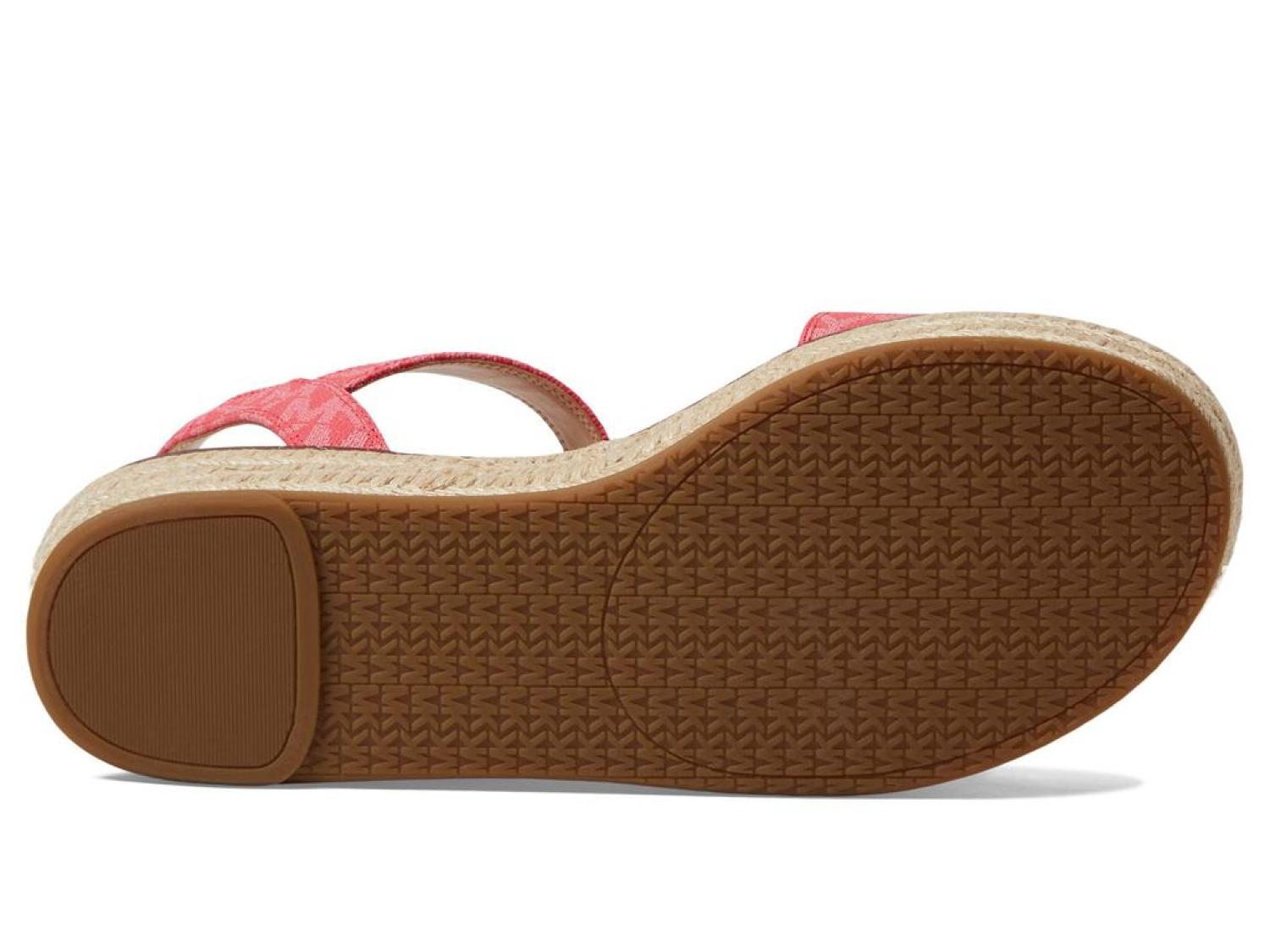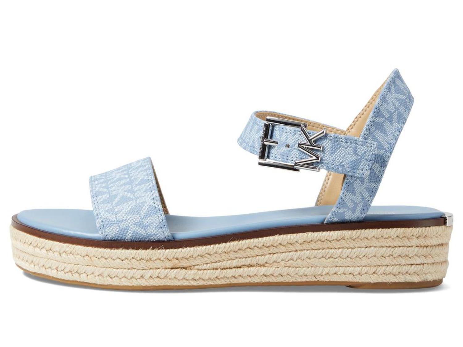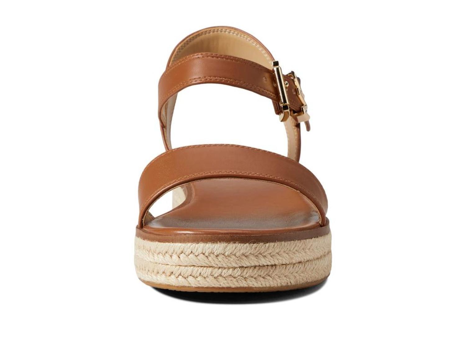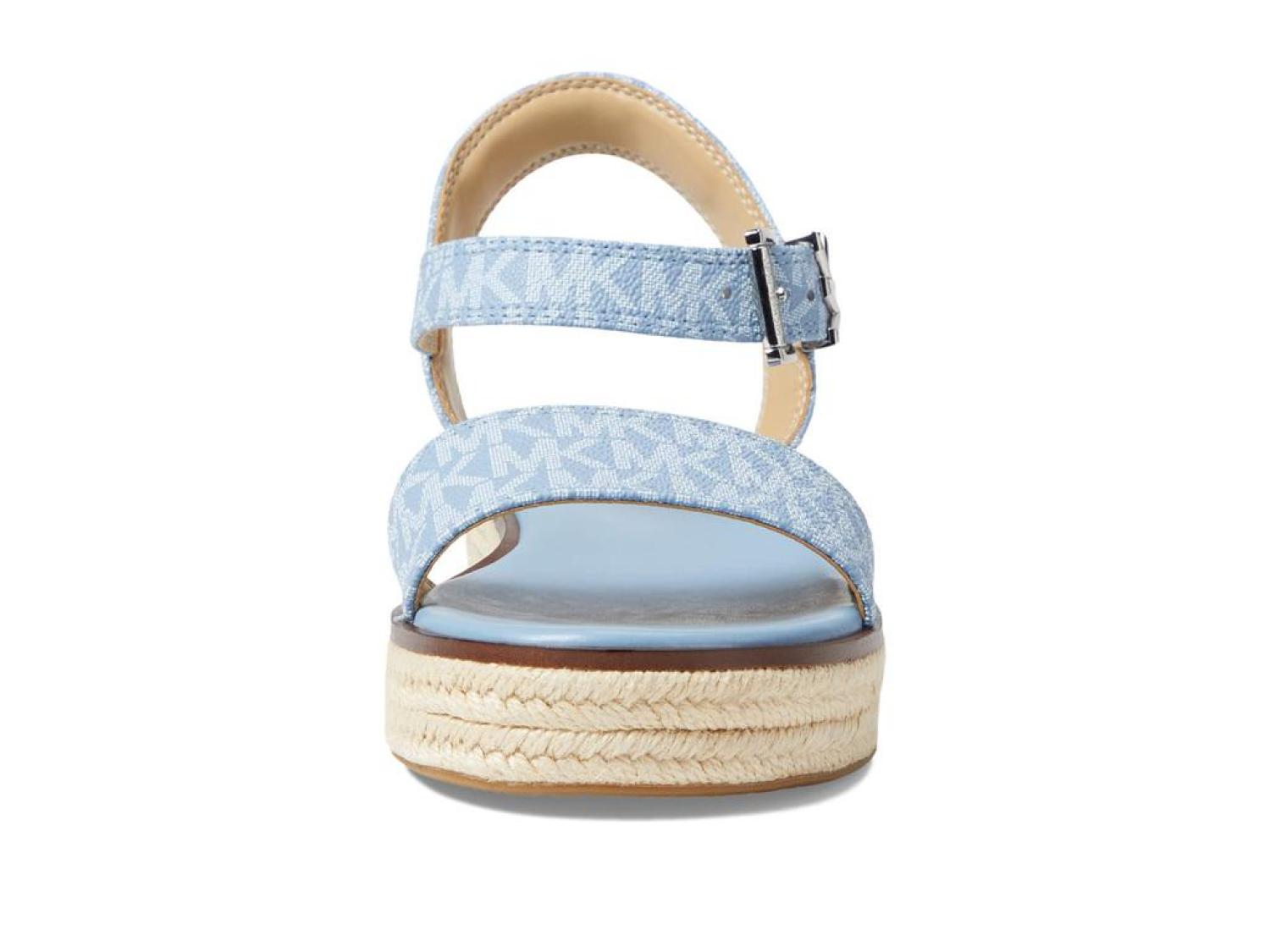 Sport a Bohemian look by wearing the super comfy and trendy MICHAEL Michael Kors® Richie Espadrille. Synthetic upper, lining, and insole. Slide-in style. Open toe and platform heel. Adjustable ankle strap with buckle closure. Jute braid detail on the outsole. Signature brand name detail on the buckle. Rubber outsole for added traction and durability. Imported. Product measurements were taken using size 8, width M. Please note that measurements may vary by size. Measurements: Heel Height: 1 1/4 in Weight: 6 oz Platform Height: 1 in-