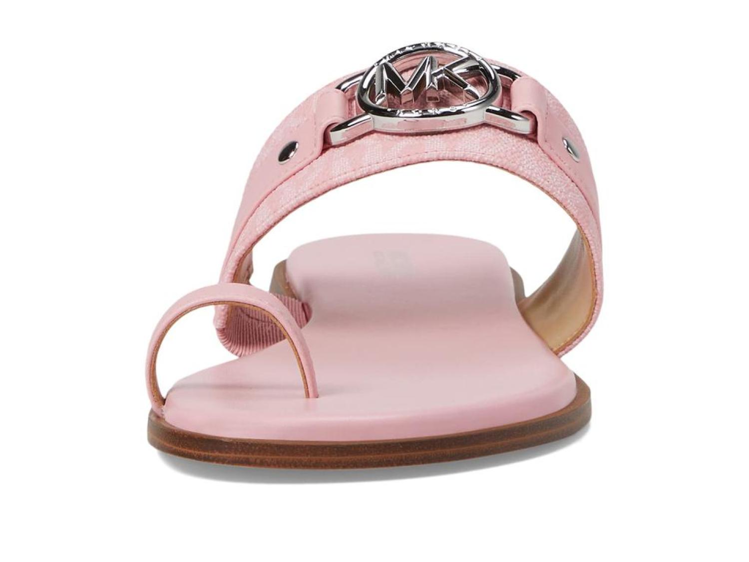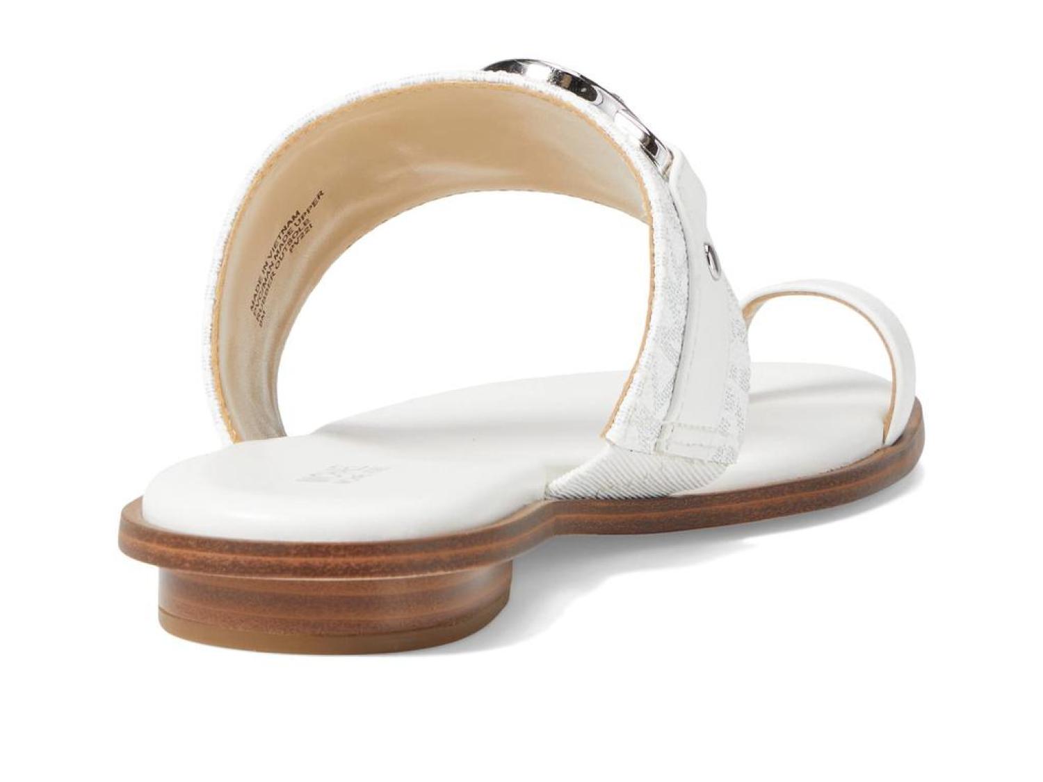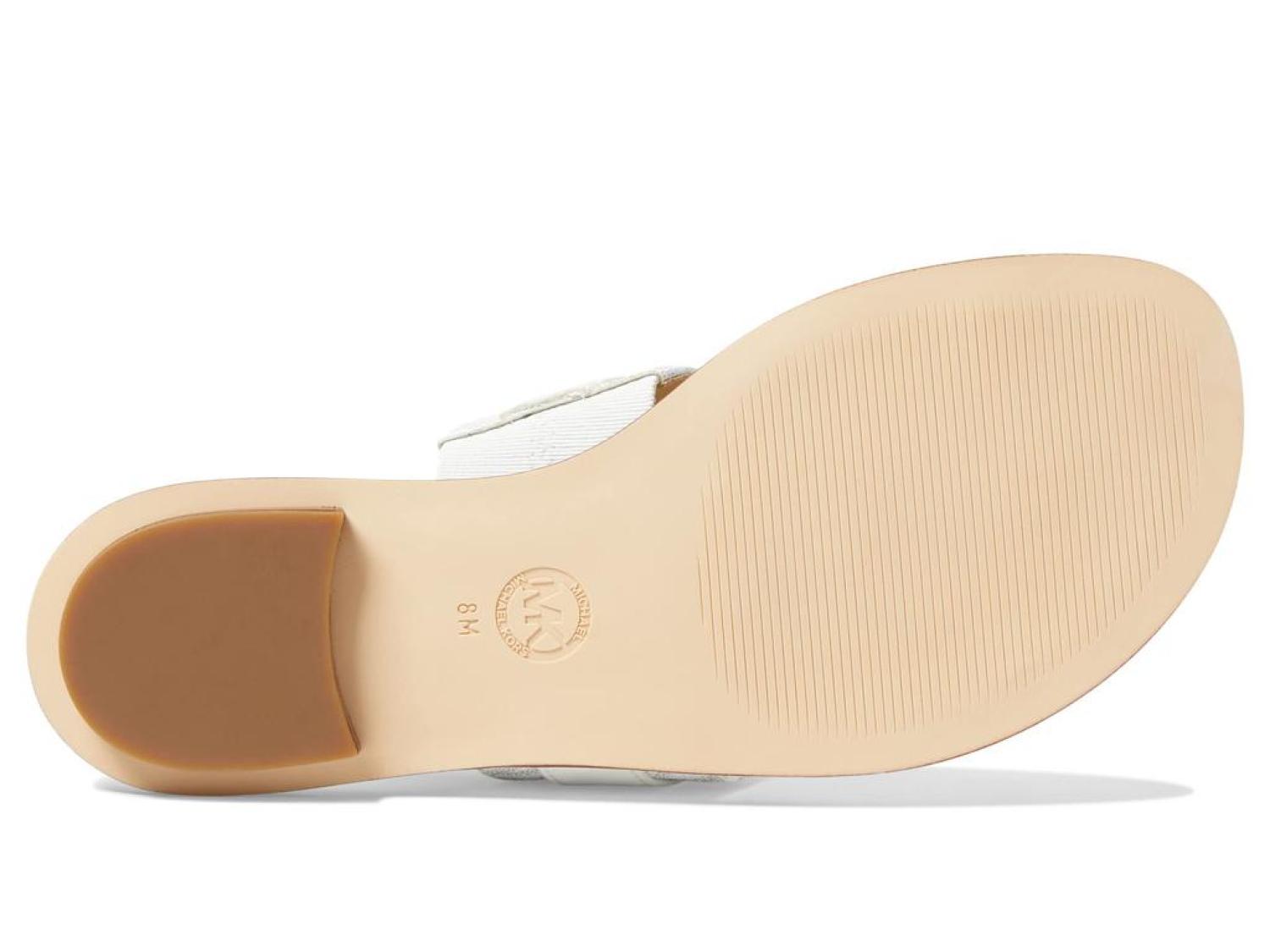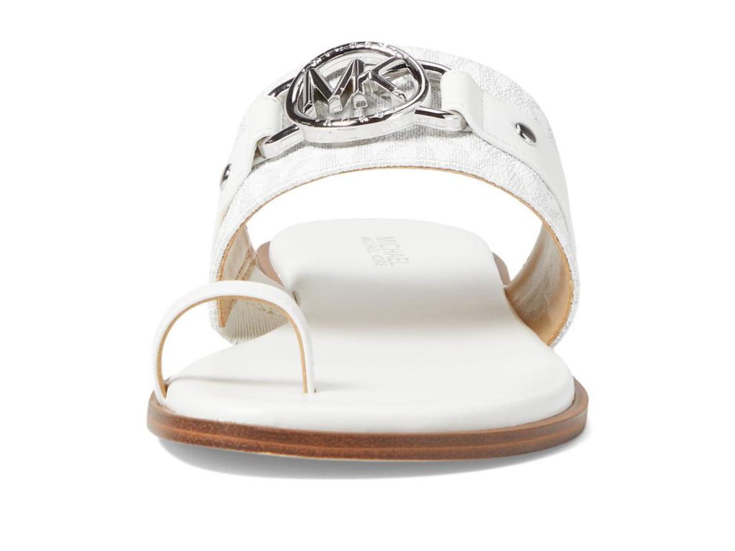 Add a fusion touch to your attire wearing the MICHAEL Michael Kors® Rory Flat Thong. Polyurethane and polyester upper. Polyurethane blend lining. Synthetic footbed. Slip-on style with toe loop design. Metallic brand detailing on the strap. Open round toe design. Low stacked heel. Rubber outsole. Imported. Product measurements were taken using size 7, width M. Please note that measurements may vary by size. Measurements: Heel Height: 1/4 in-
