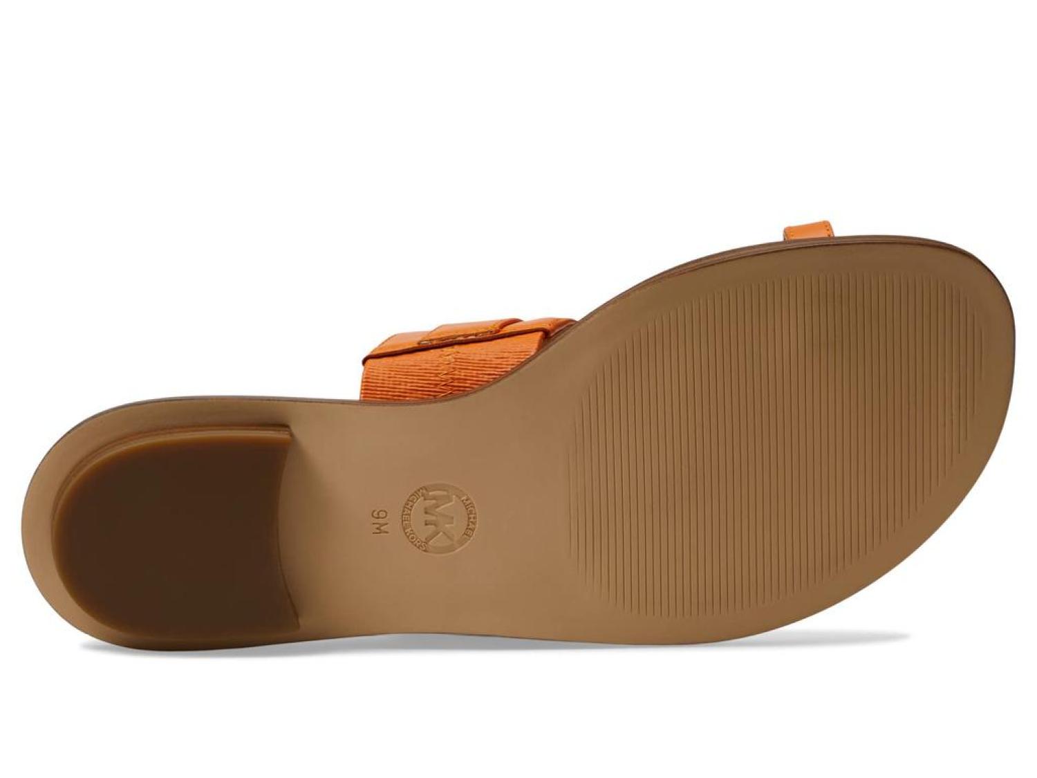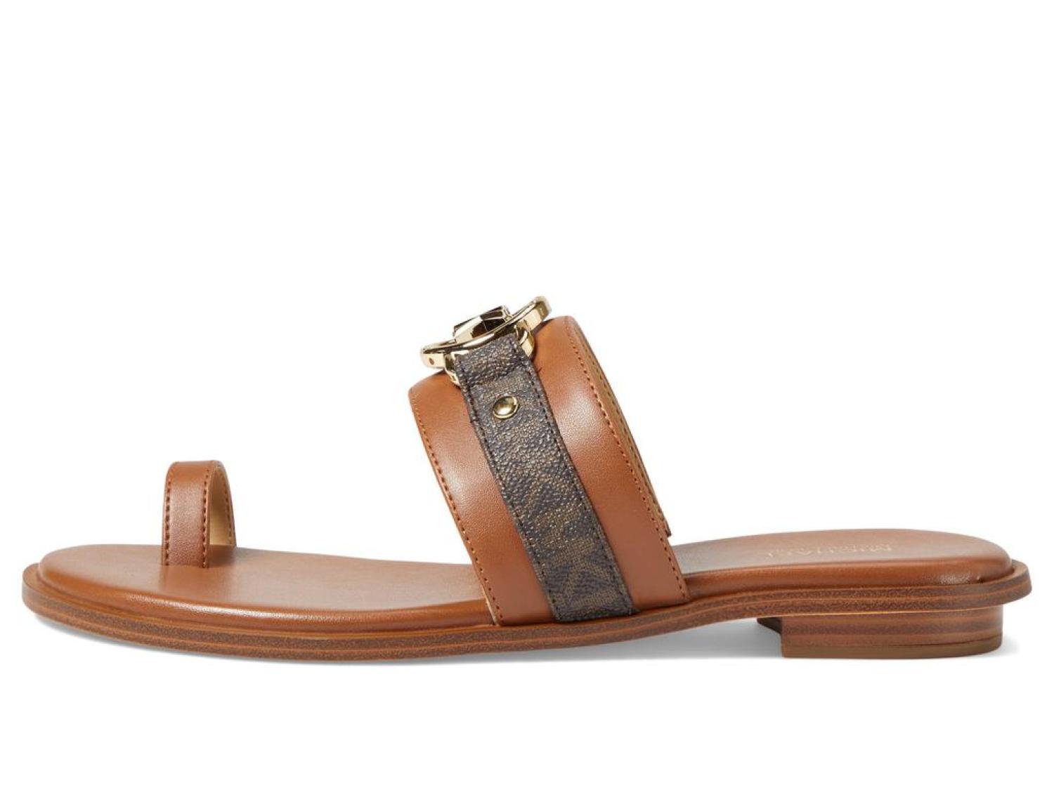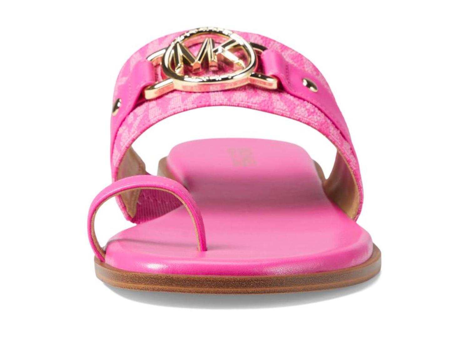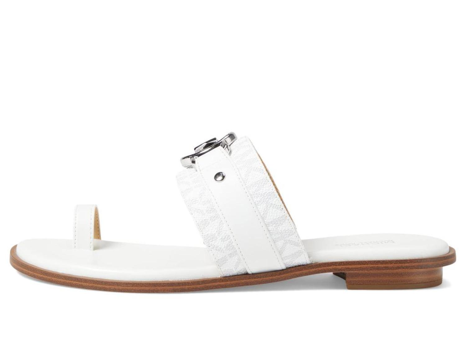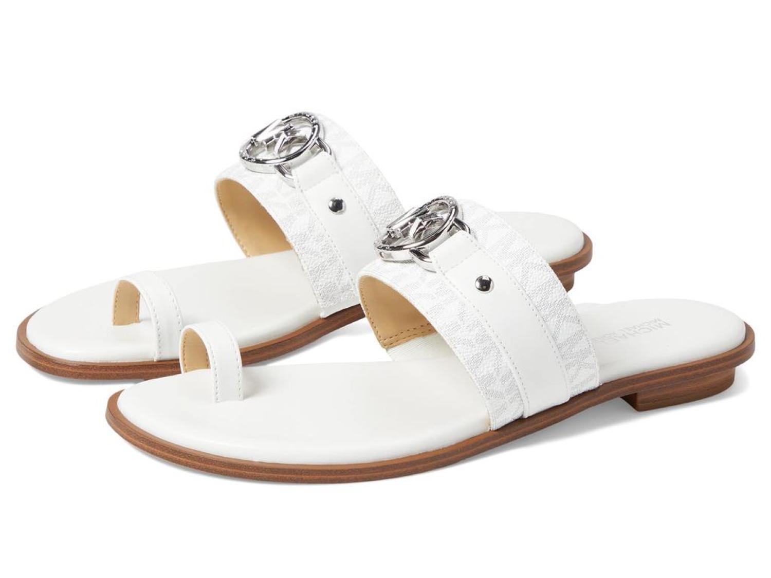 Add a fusion touch to your attire wearing the MICHAEL Michael Kors® Rory Flat Thong. Polyurethane and polyester upper. Polyurethane blend lining. Synthetic footbed. Slip-on style with toe loop design. Metallic brand detailing on the strap. Open round toe design. Low stacked heel. Rubber outsole. Imported. Product measurements were taken using size 7, width M. Please note that measurements may vary by size. Measurements: Heel Height: 1/4 in-