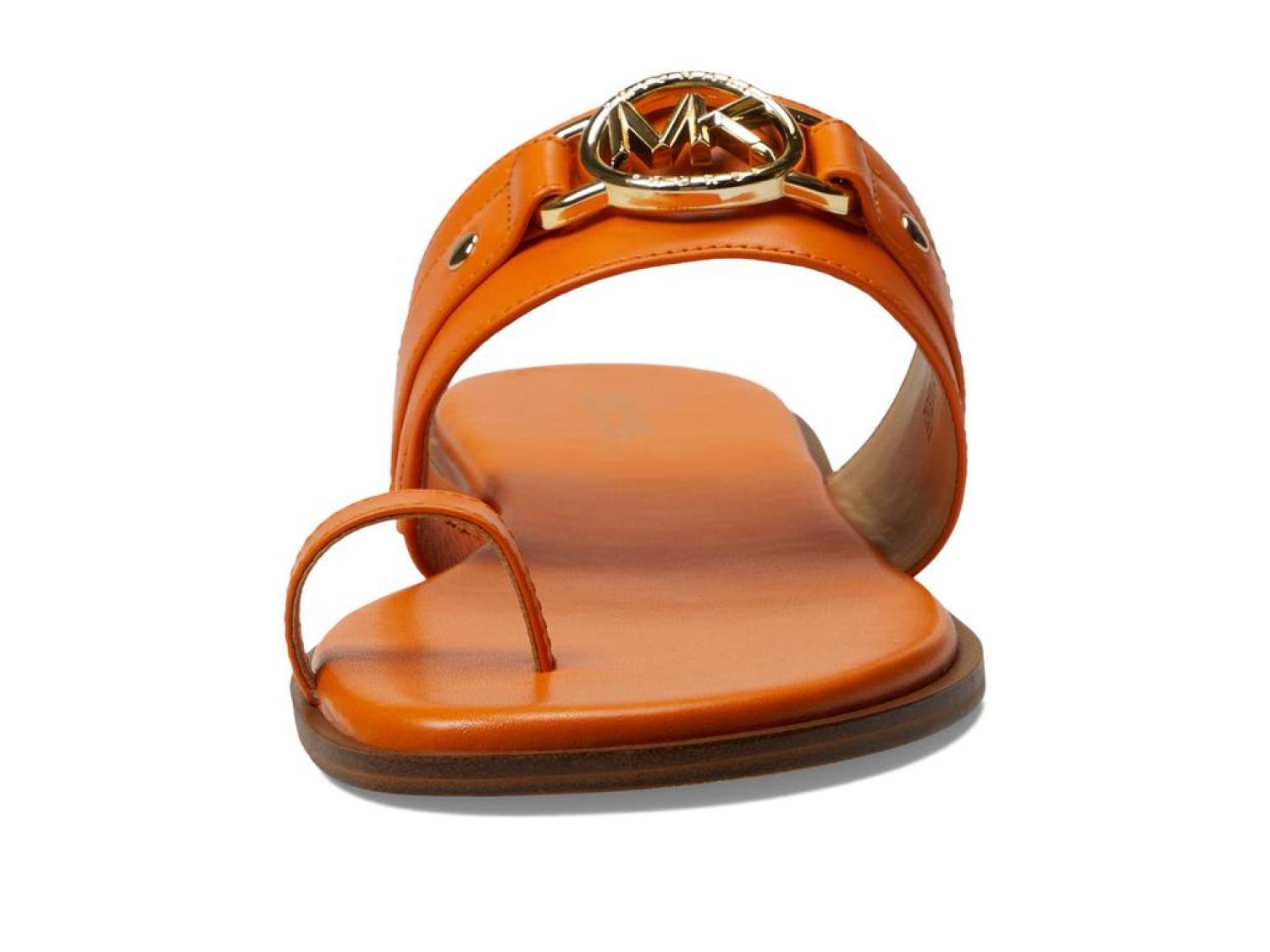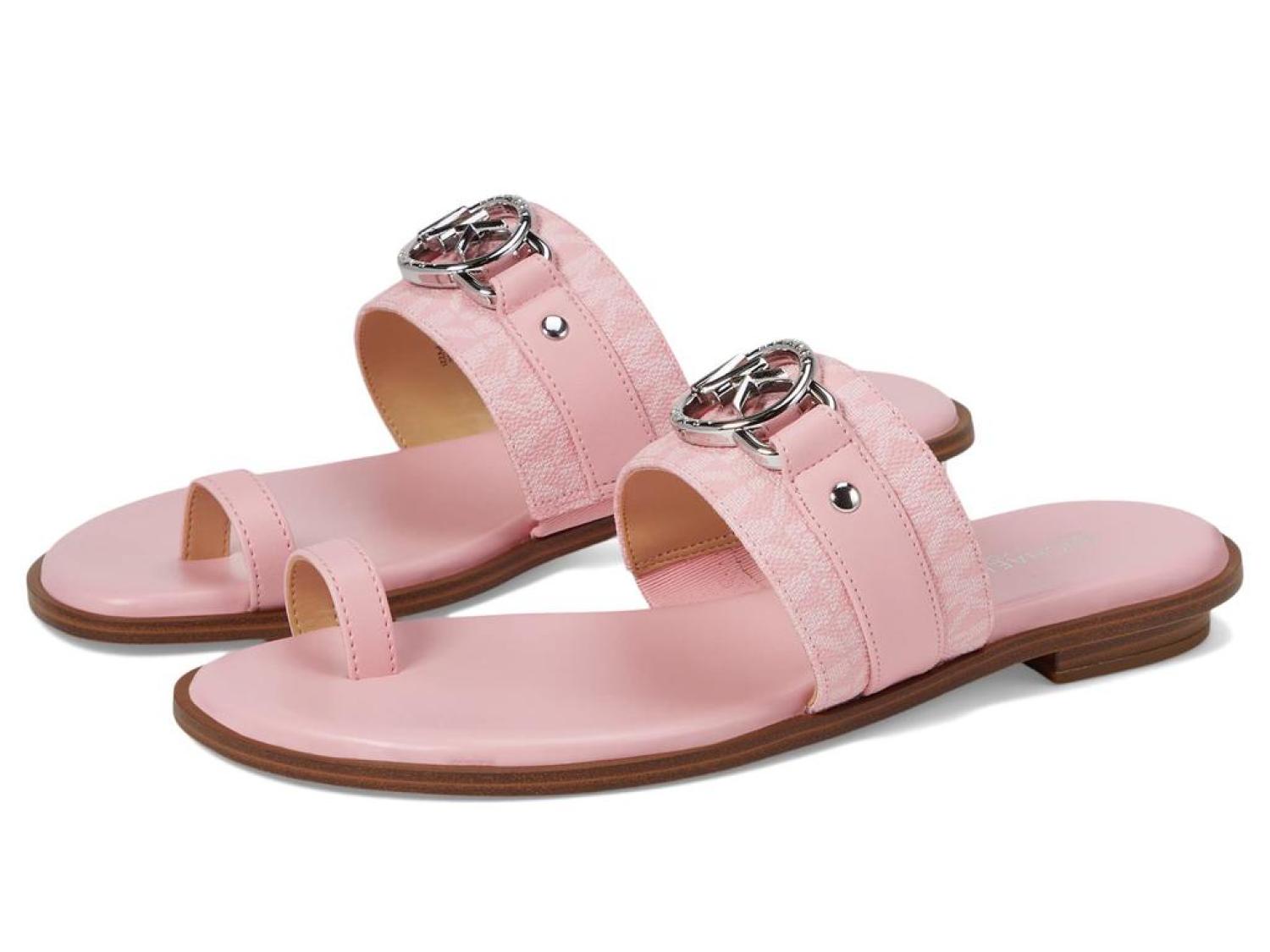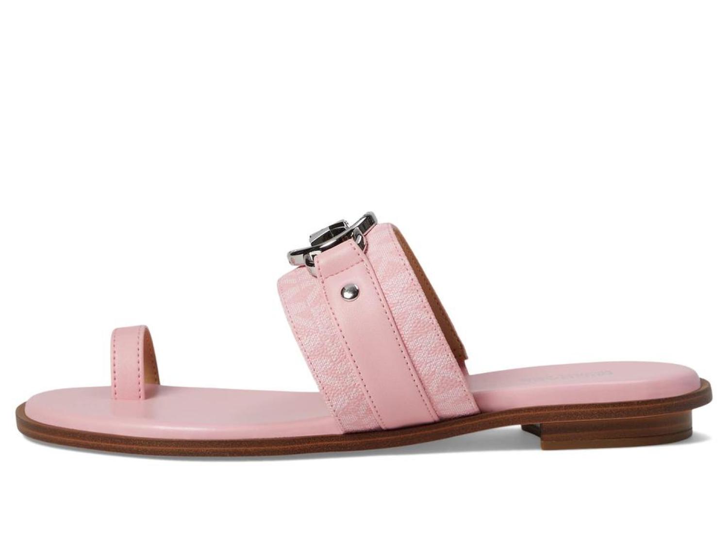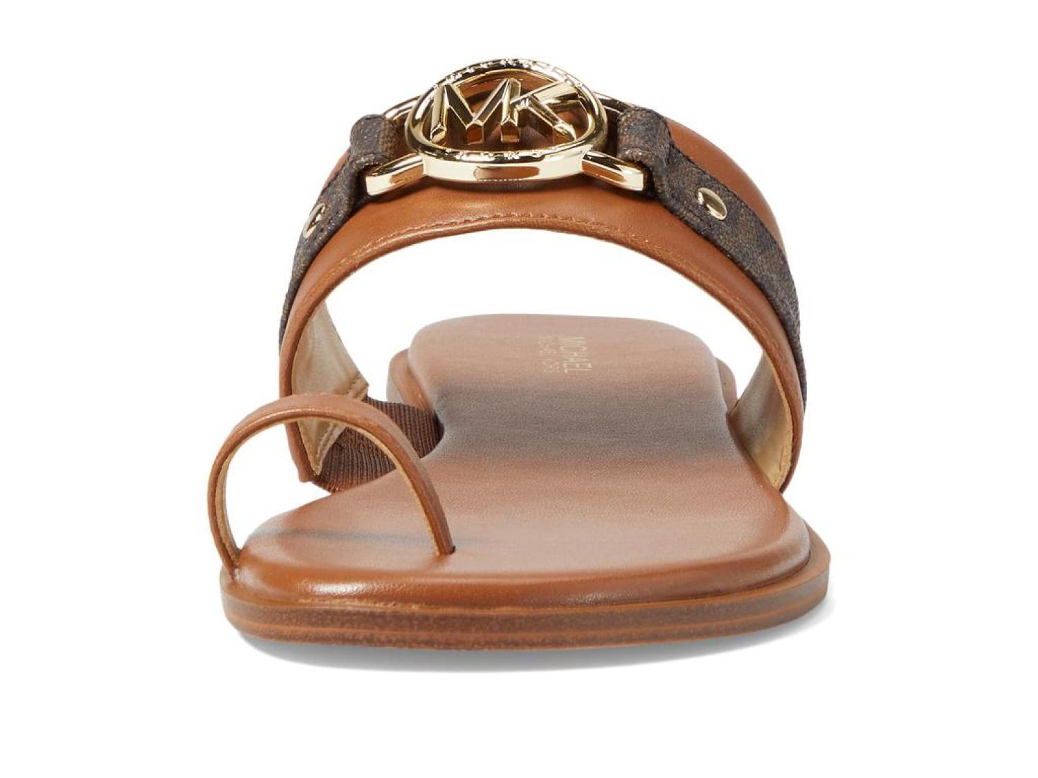 Add a fusion touch to your attire wearing the MICHAEL Michael Kors® Rory Flat Thong. Polyurethane and polyester upper. Polyurethane blend lining. Synthetic footbed. Slip-on style with toe loop design. Metallic brand detailing on the strap. Open round toe design. Low stacked heel. Rubber outsole. Imported. Product measurements were taken using size 7, width M. Please note that measurements may vary by size. Measurements: Heel Height: 1/4 in-