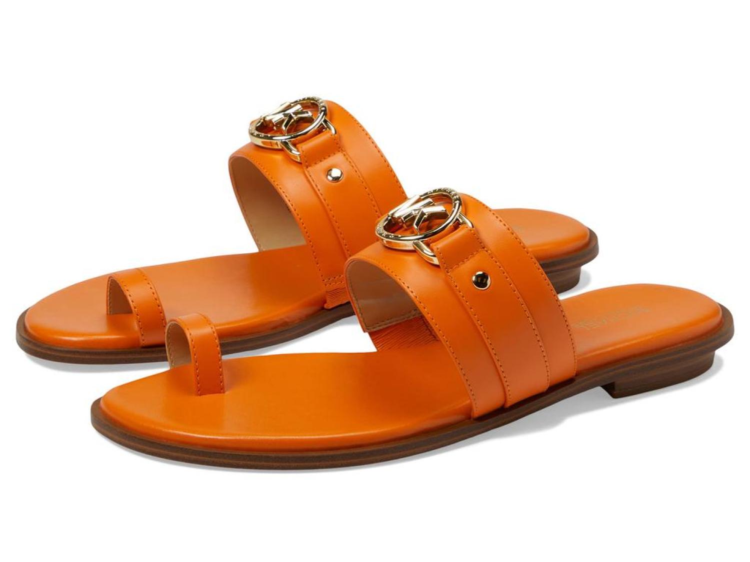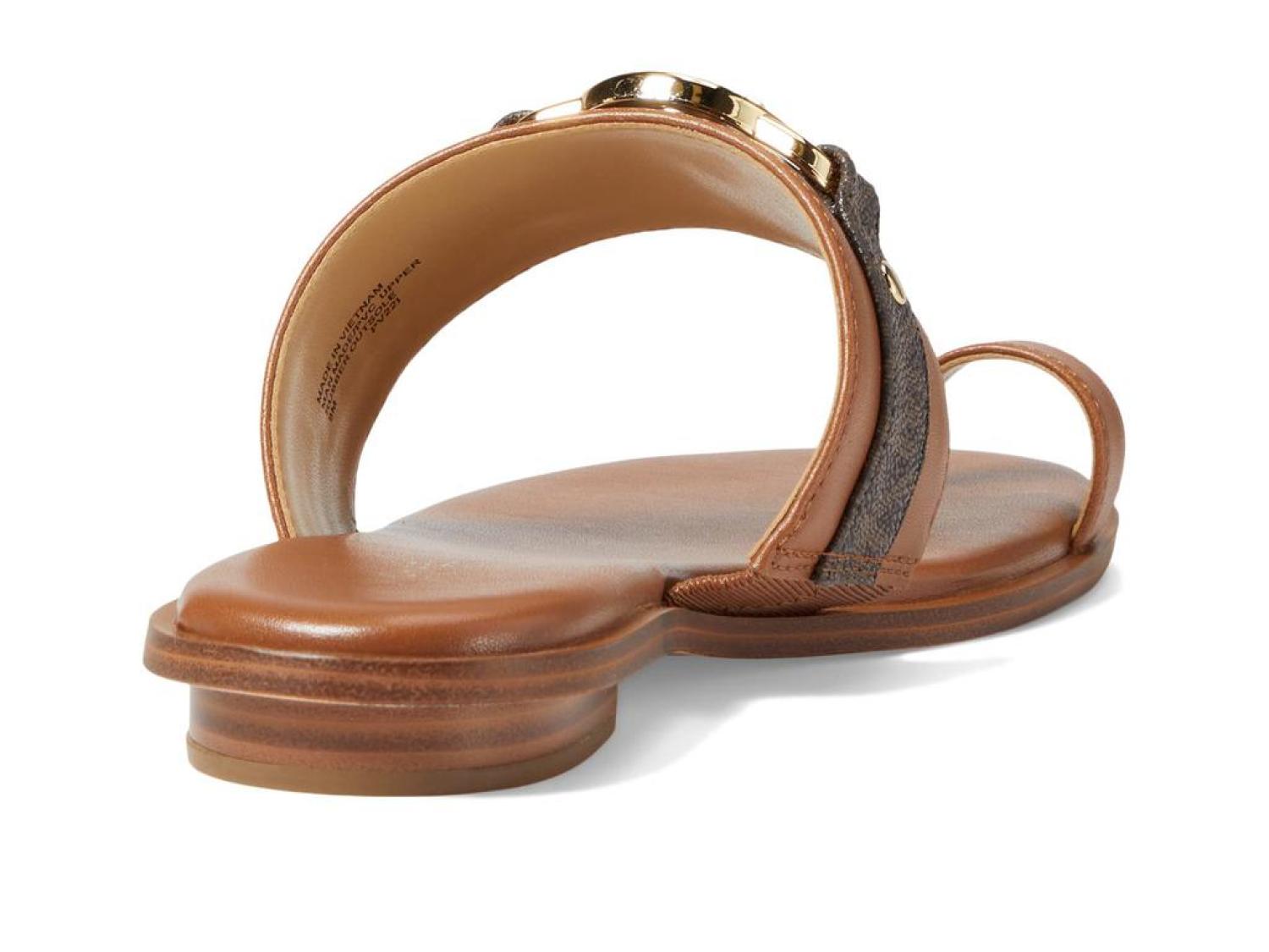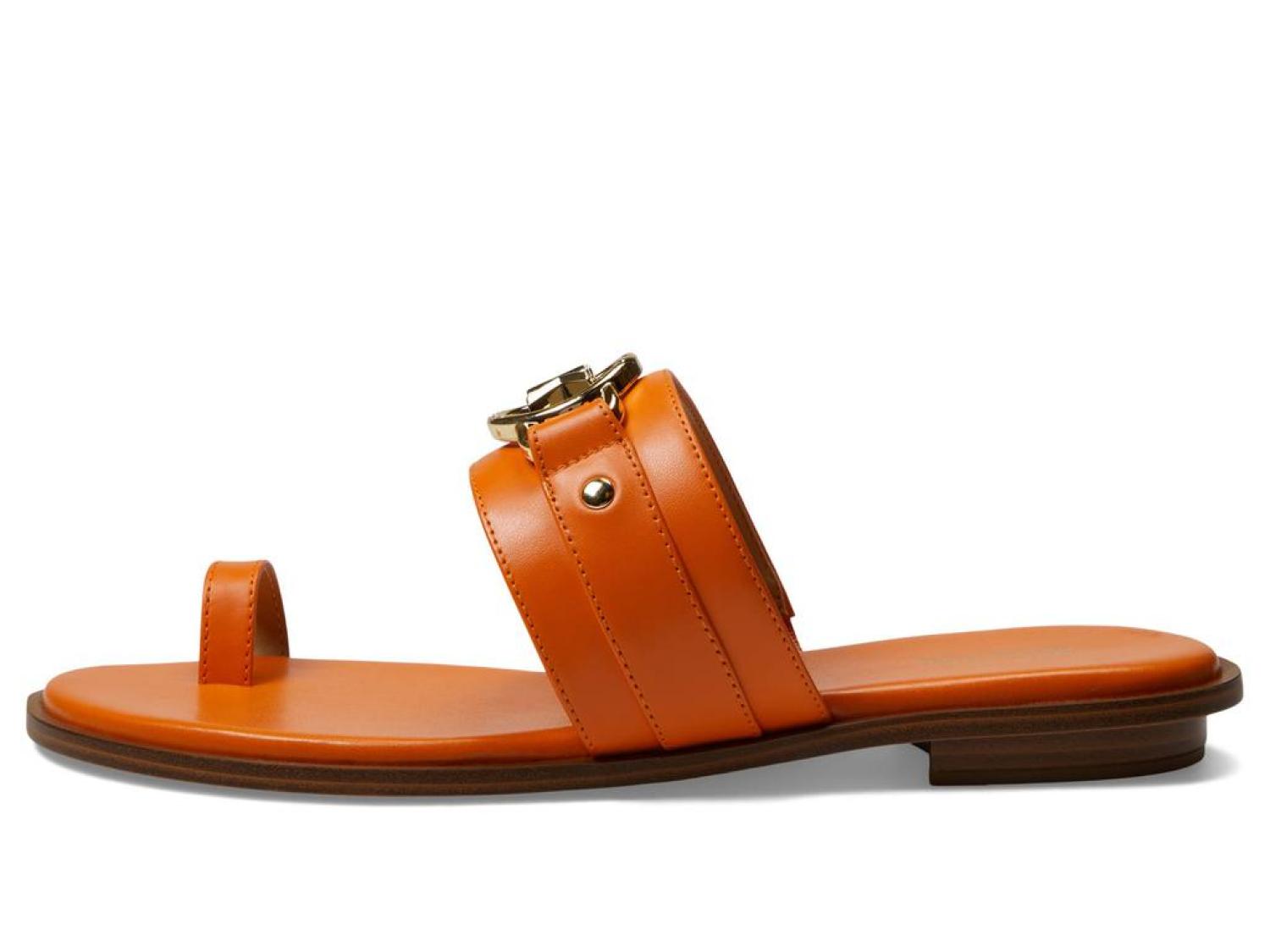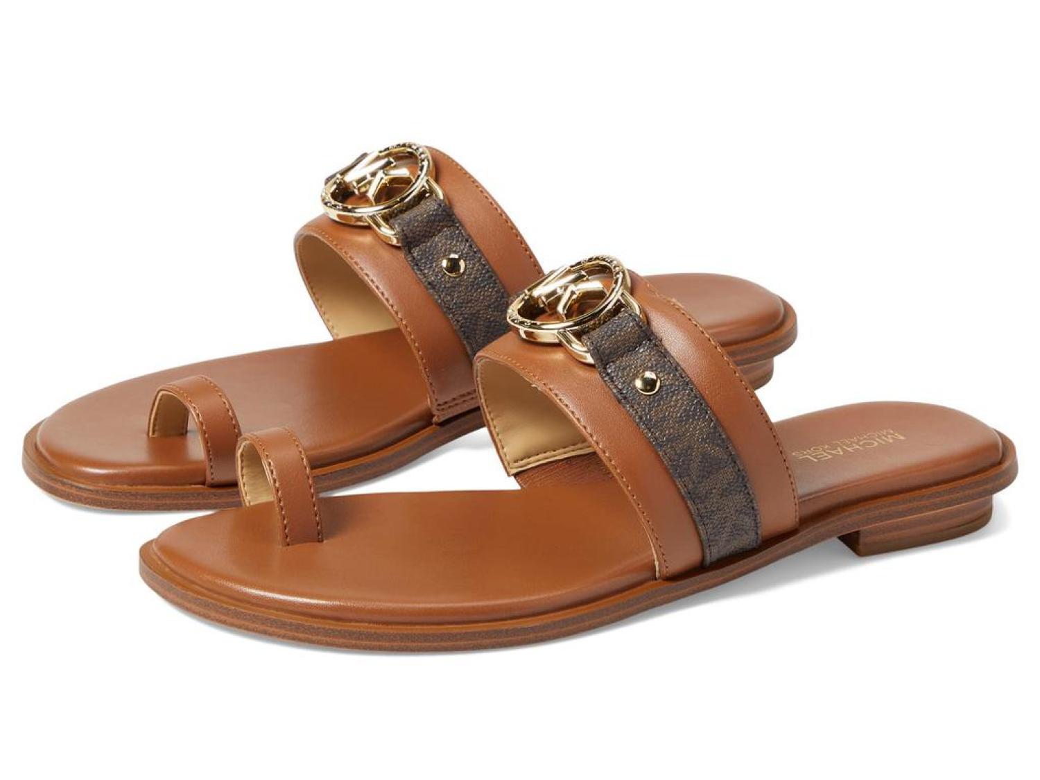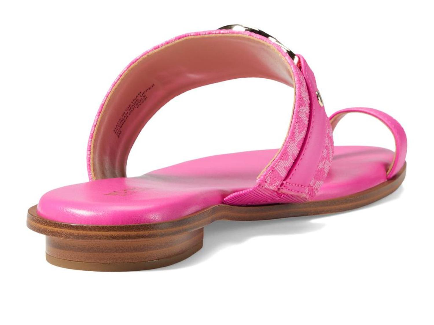 Add a fusion touch to your attire wearing the MICHAEL Michael Kors® Rory Flat Thong. Polyurethane and polyester upper. Polyurethane blend lining. Synthetic footbed. Slip-on style with toe loop design. Metallic brand detailing on the strap. Open round toe design. Low stacked heel. Rubber outsole. Imported. Product measurements were taken using size 7, width M. Please note that measurements may vary by size. Measurements: Heel Height: 1/4 in-