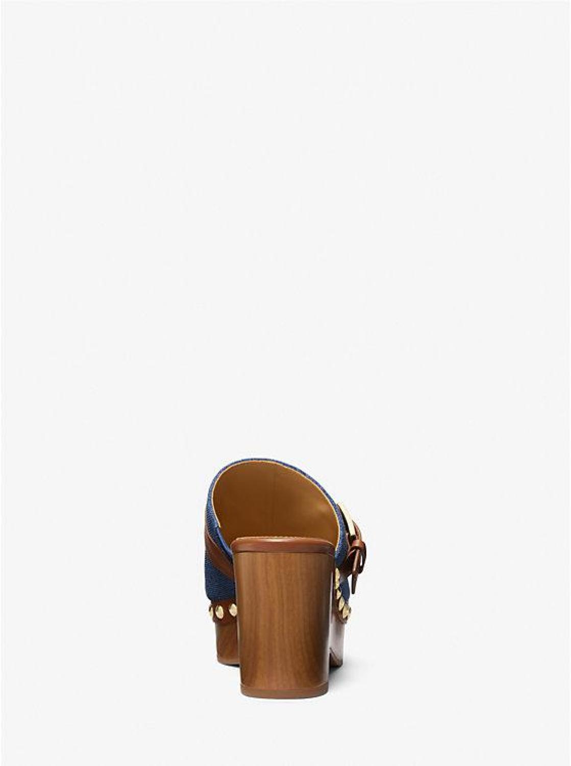 • The Rye elevates the classic clog in more ways than one. Topped with a leather buckled strap, this denim style rests on a faux wooden sole with a studded platform heel and features rubber trim for traction. Wear the pair to ground boho dresses or flared pants.