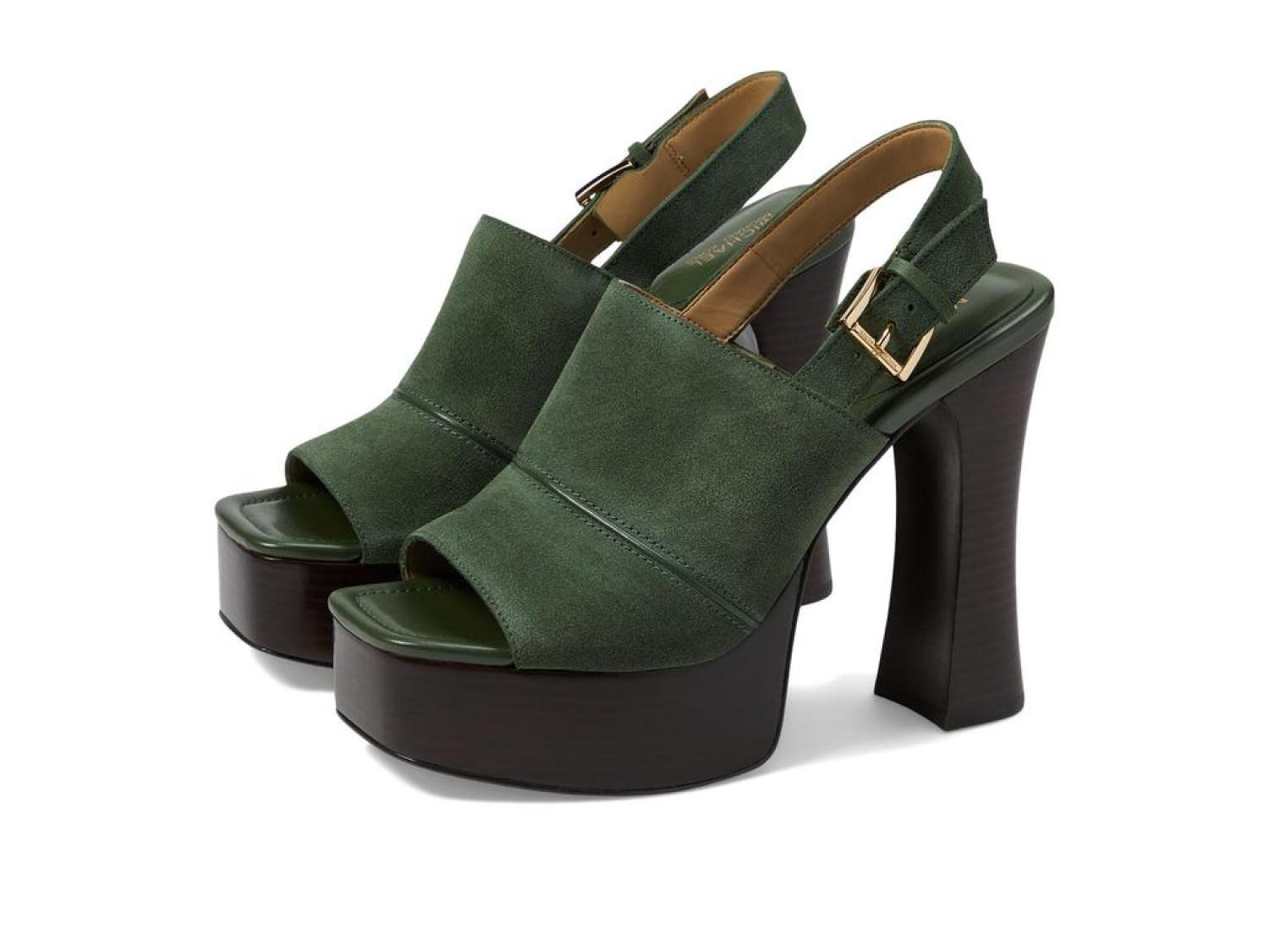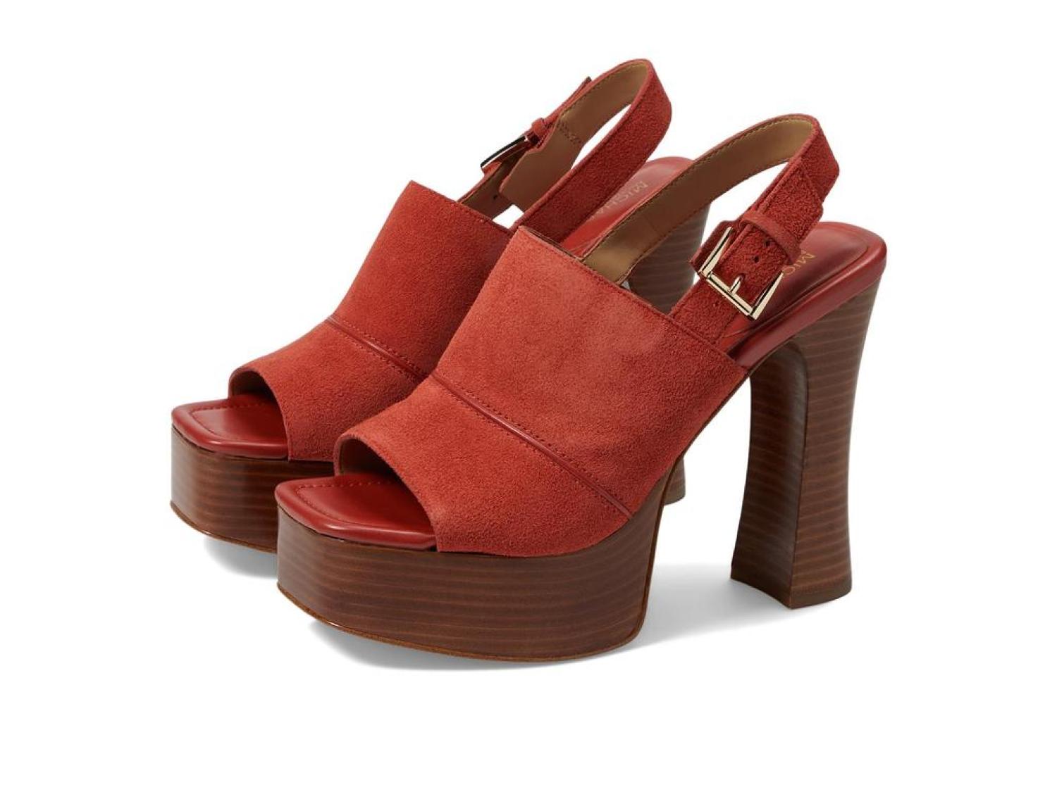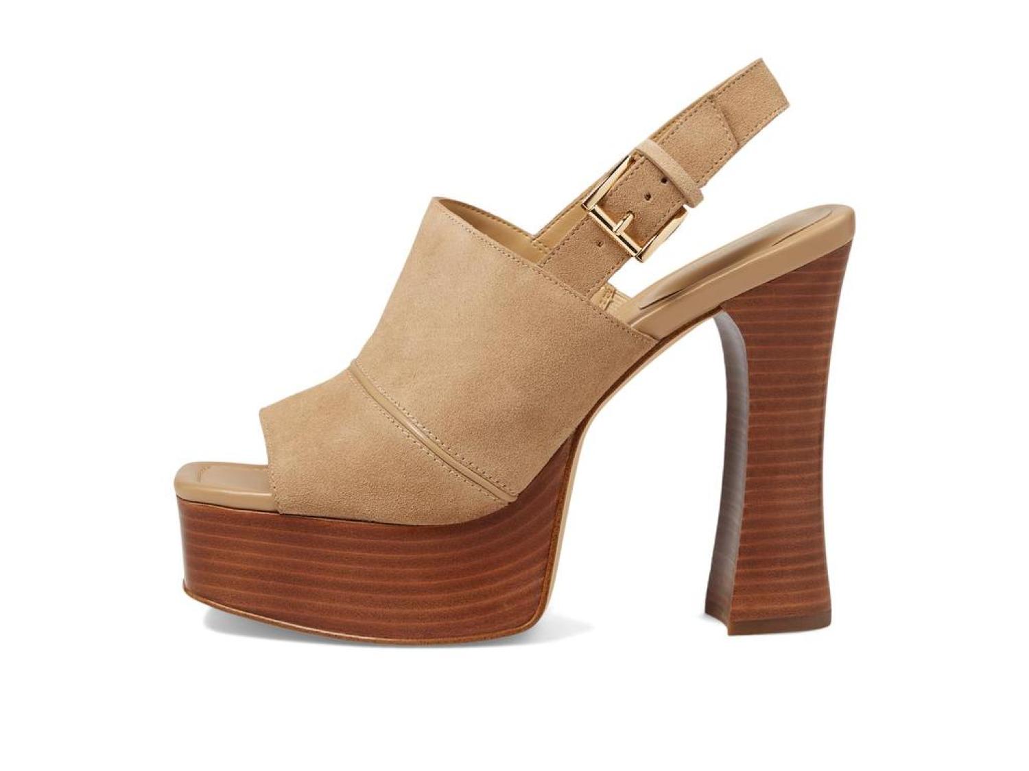 • Featuring a sleek and elegant profile with an open squared toe and an ultra-high stacked heel, the MICHAEL Michael Kors® Rye Platform Sandals are sure to make a statement wherever you go! The shoes come with a leather upper, lining, and insole and have an adjustable buckle strap closure on the ankle for a custom fit.