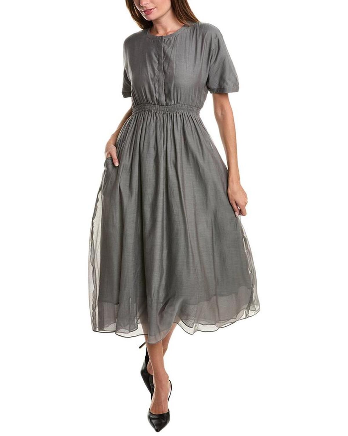 Elevate your wardrobe with the 'S Max Mara Ribes Silk-Blend A-Line Dress. This stylish dress features a sleek grey color and a flattering A-line silhouette. The dolman sleeves and elasticized waistband add a touch of sophistication, while the dual side pockets offer convenience. Made from a luxurious blend of cotton and silk, this dress is perfect for any special occasion. With a button placket for easy dressing, this imported dress is a must-have for any fashion-forward woman. Dry clean only. Model is 5'10 and wearing a size 2. Measurements may vary slightly by size.