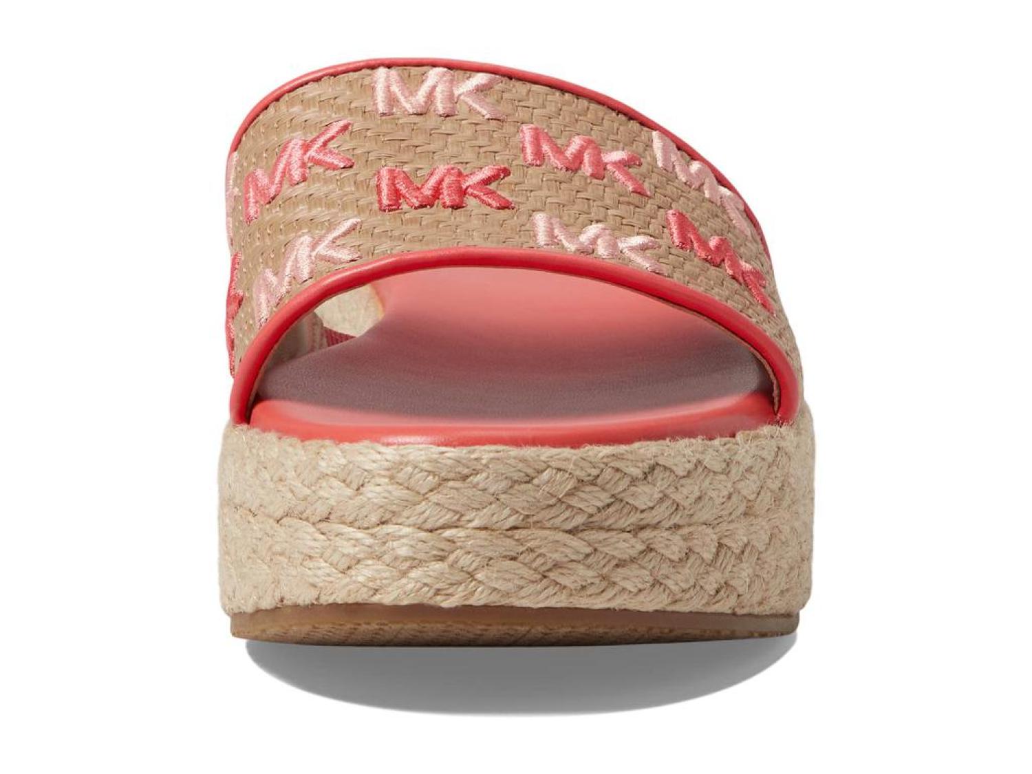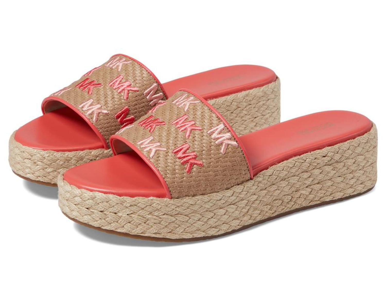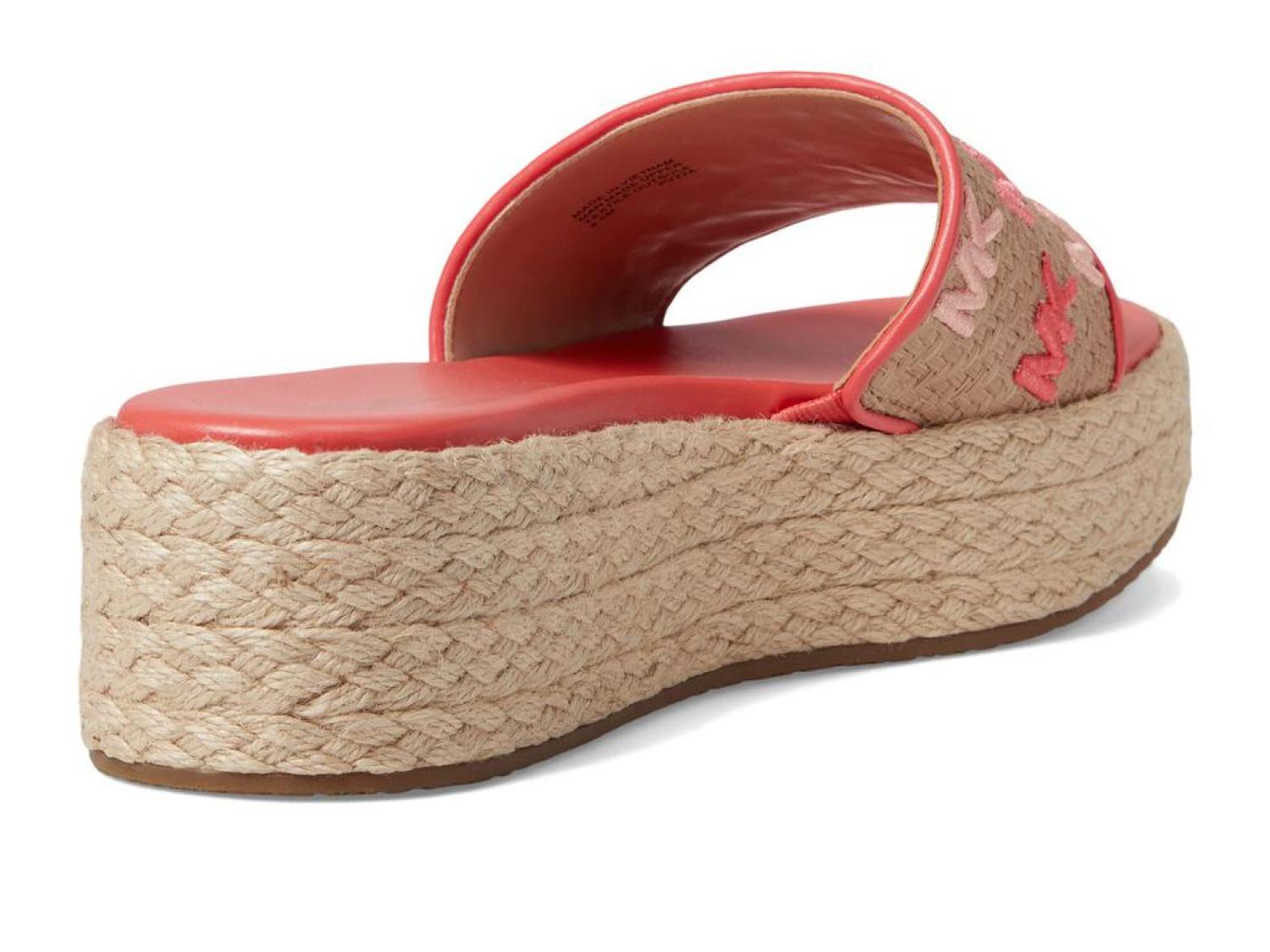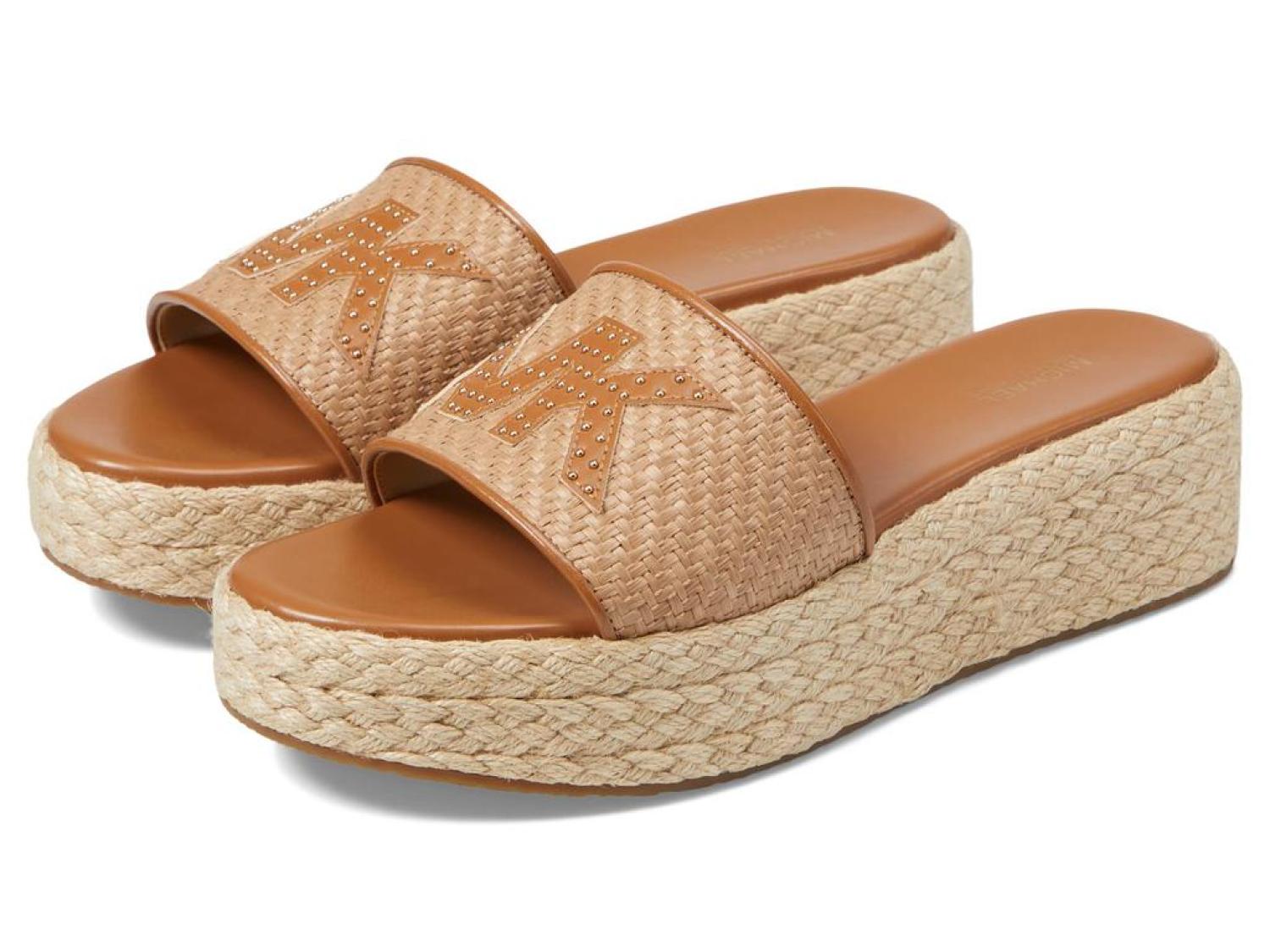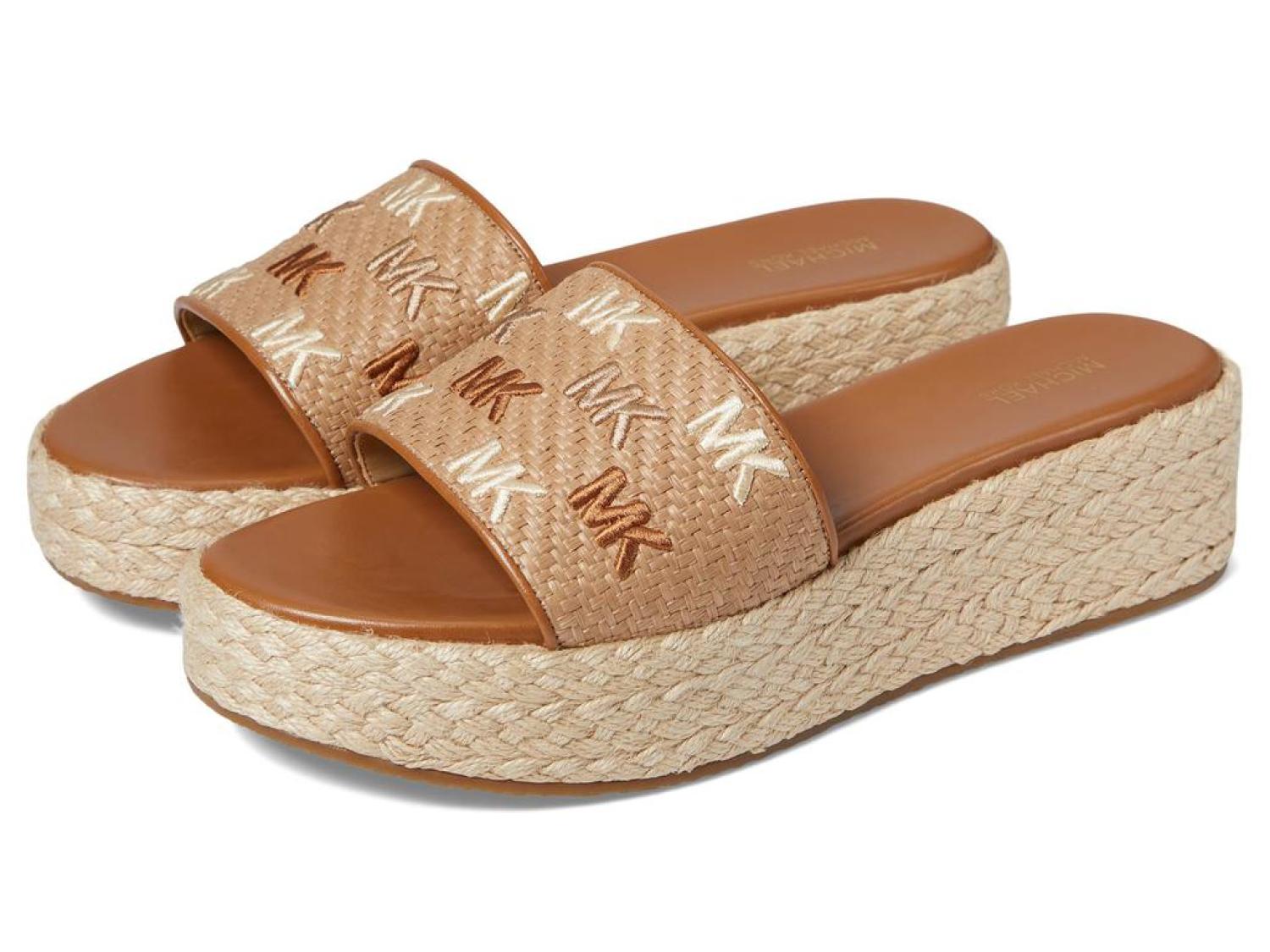 Start your weekend in a sporty look with signature details wearing the MICHAEL Michael Kors® Sadler Wedge. Open toe. Slip-on style. Logo jacquard. Upper: 100% cotton. Synthetic lining and insole. Rubber outsole. Imported. Platform height: 1.25" Heel height: 2"