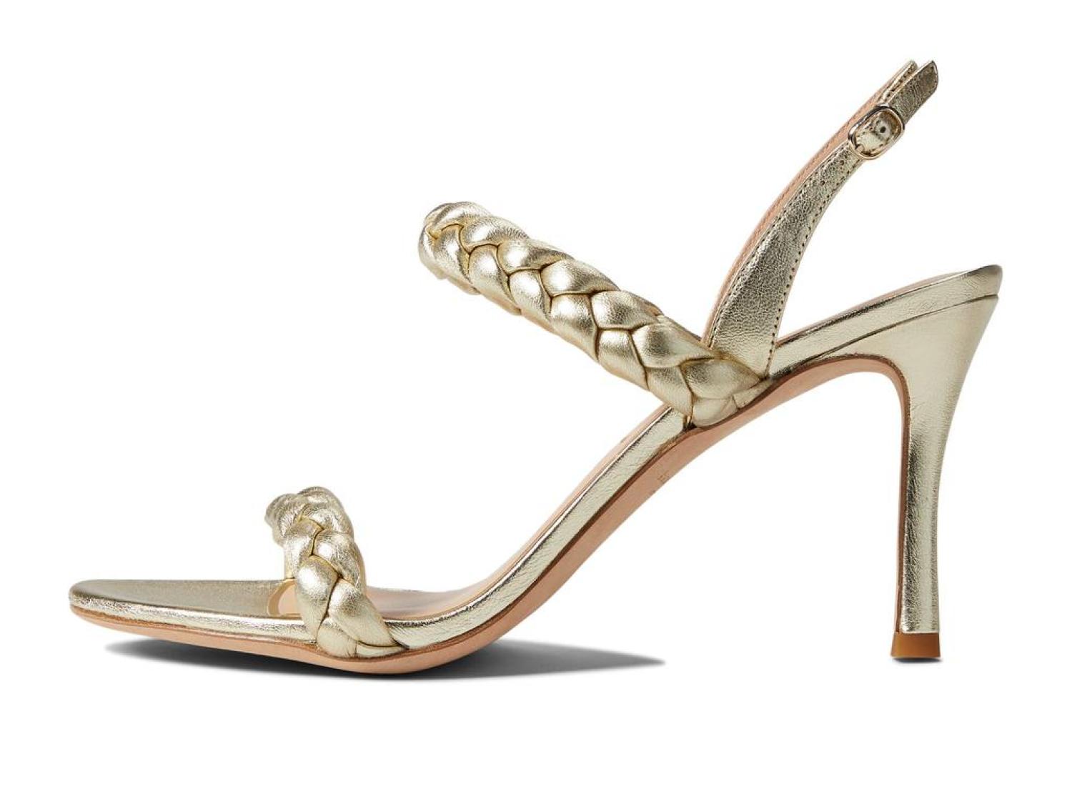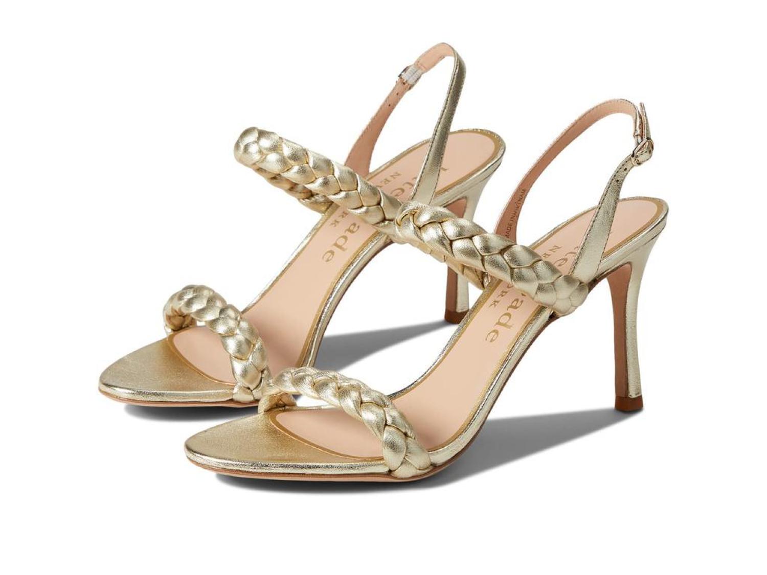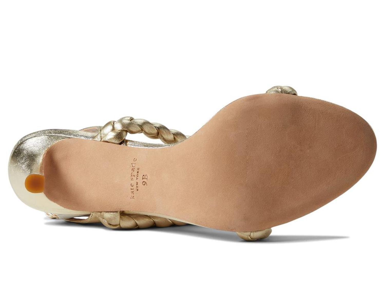 Look effortlessly flawless at your next romantic dinner in the Kate Spade New York® Saffron. Ankle buckle closure. Braided straps. Round, open toe silhouette. Classic stiletto heel. Leather upper, lining, insole and outsole. Imported. Product measurements were taken using size 9, width M. Please note that measurements may vary by size. Weight of footwear is based on a single item, not a pair. Measurements: Heel Height: 3 1/2 in Weight: 7 oz-