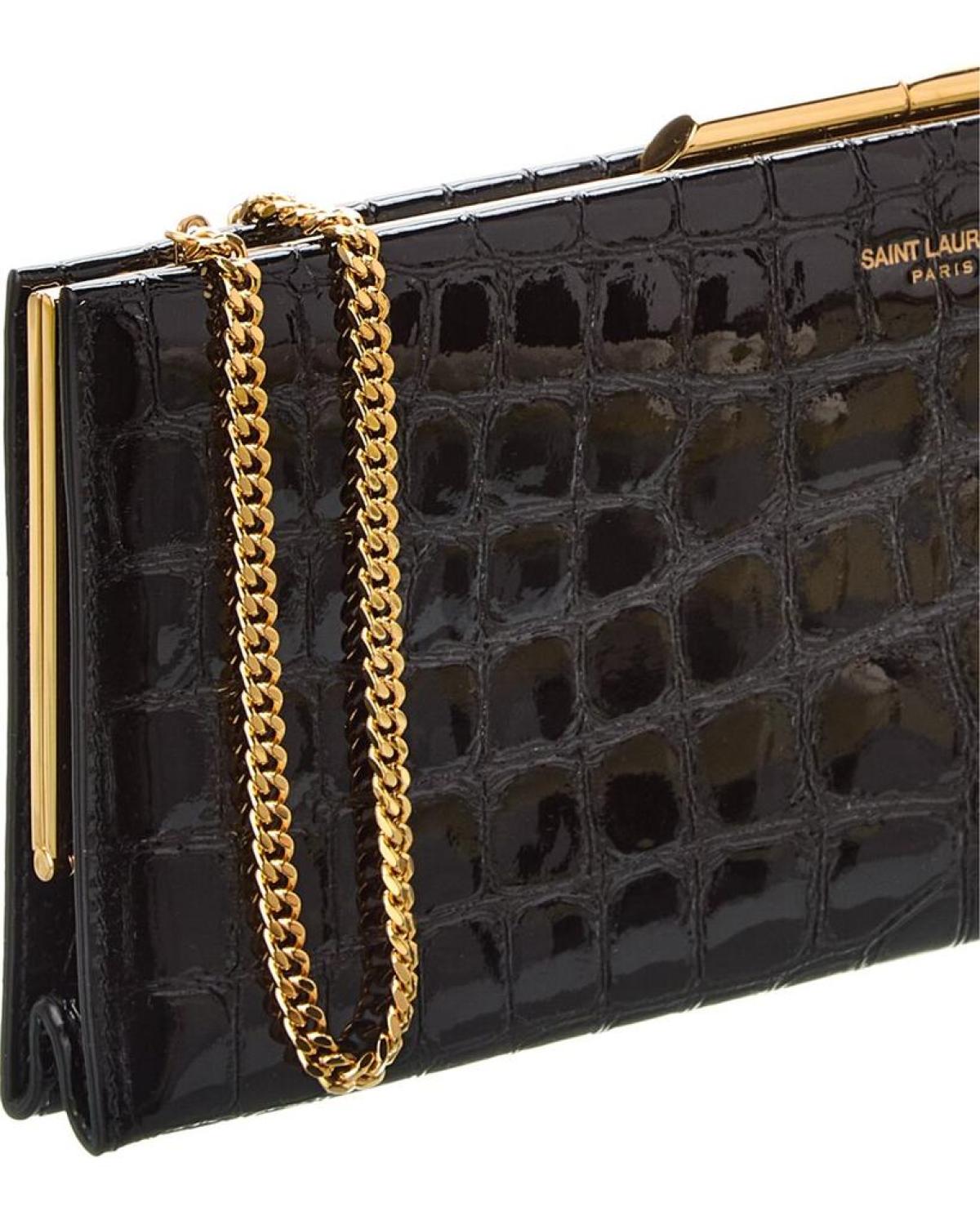 Saint Laurent Croc-Embossed Patent Clutch