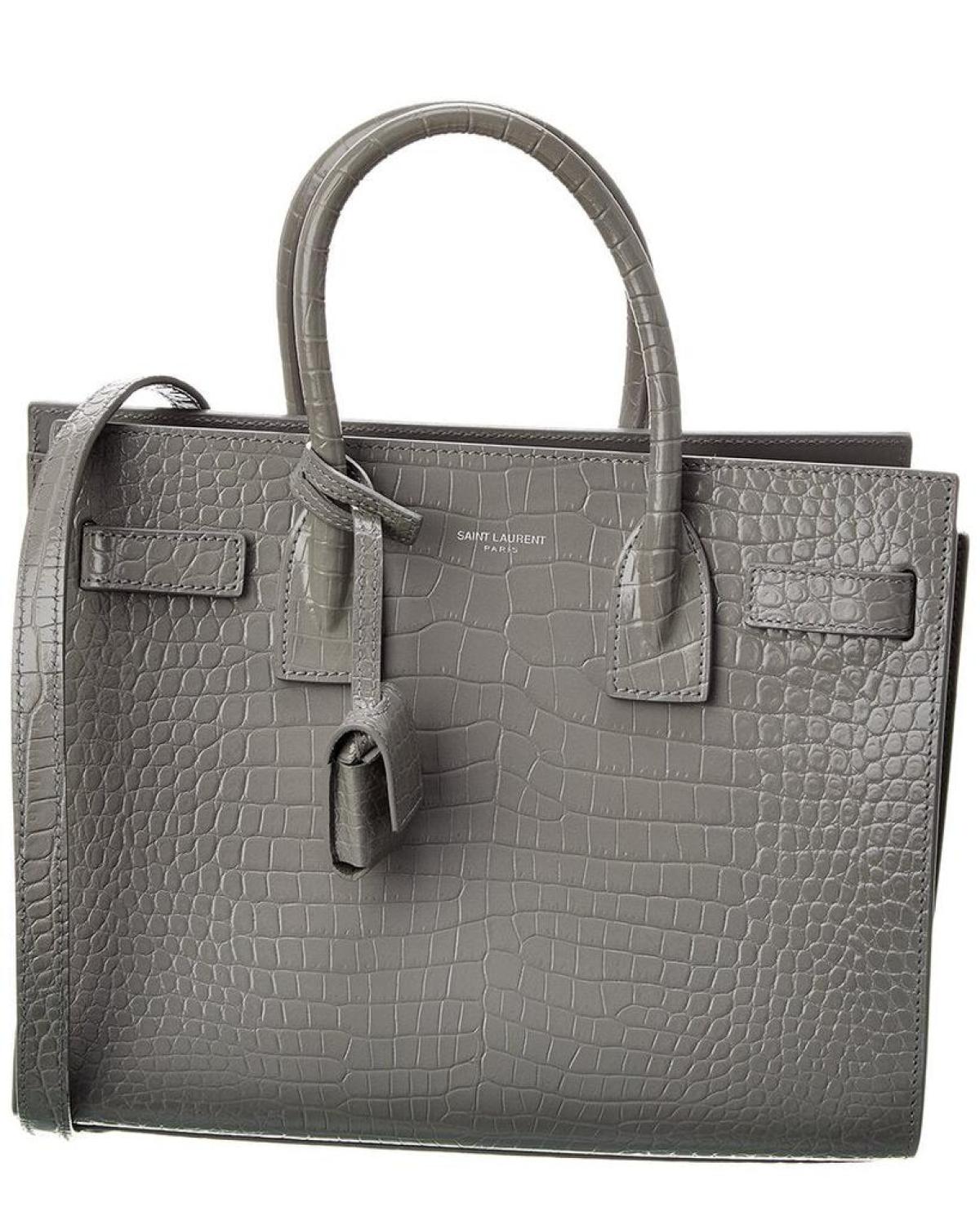 Saint Laurent Sac De Jour Classic Baby Croc-Embossed Leather Tote
