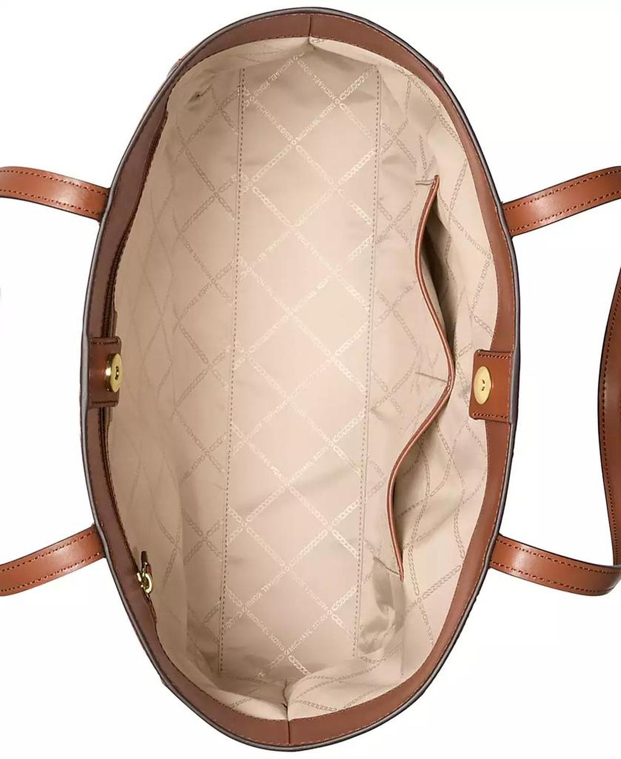 A timeless workday accessory that's both chic and functional, this tote by MICHAEL Michael Kors is crafted in leather and accented with a shiny gold-tone logo charm. Large-sized bag; 16-1/4"W x 11-1/4"H x 5-3/4"D (width is measured across the bottom of handbag); 1.62 lbs. approx. weight Silhouette is based off 5'9" model 10-1/2"L handles Snap closure Gold-tone hardware & logo charm, interior zip & slip pockets Leather; lining: 100% polyester; trim: 60% PU, 20% cotton, 20% polyester Spot clean Imported