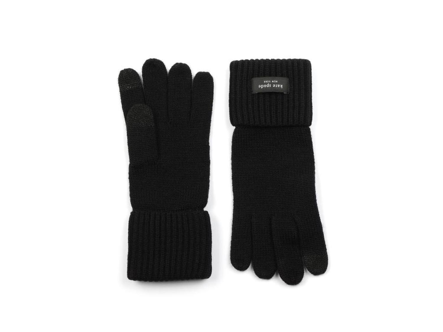 The primary materials that compose this product contain a minimum of 20 percent recycled content. Cover your fingers and feel cozy comfort throughout the day wearing the Kate Spade New York® Sam Label Knit Gloves. The gloves come in a knit construction and feature a rolled-over ribbed cuff and spade logo patch for authenticity. Touch tip. 25% recycled acrylic, 45% acrylic, 30% wool. Machine washable. Imported.