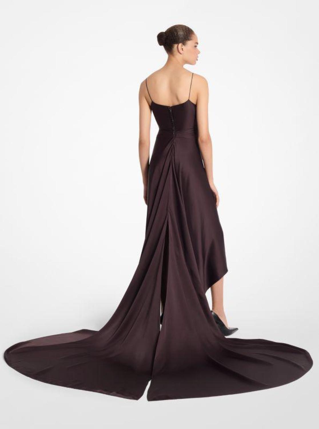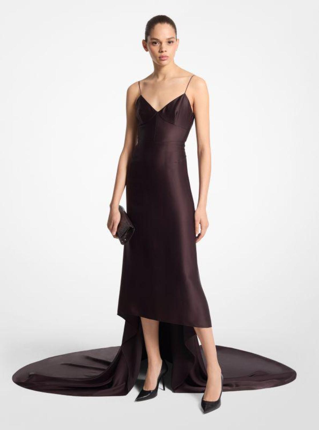 This slip dress delivers indisputable glamour, making it the perfect choice for black-tie events. Cut from swathes of satin charmeuse, it features a fitted bodice and skirt that pool into a fishtail train. Accessorize it with black heels and a clutch. Made in Italy.
