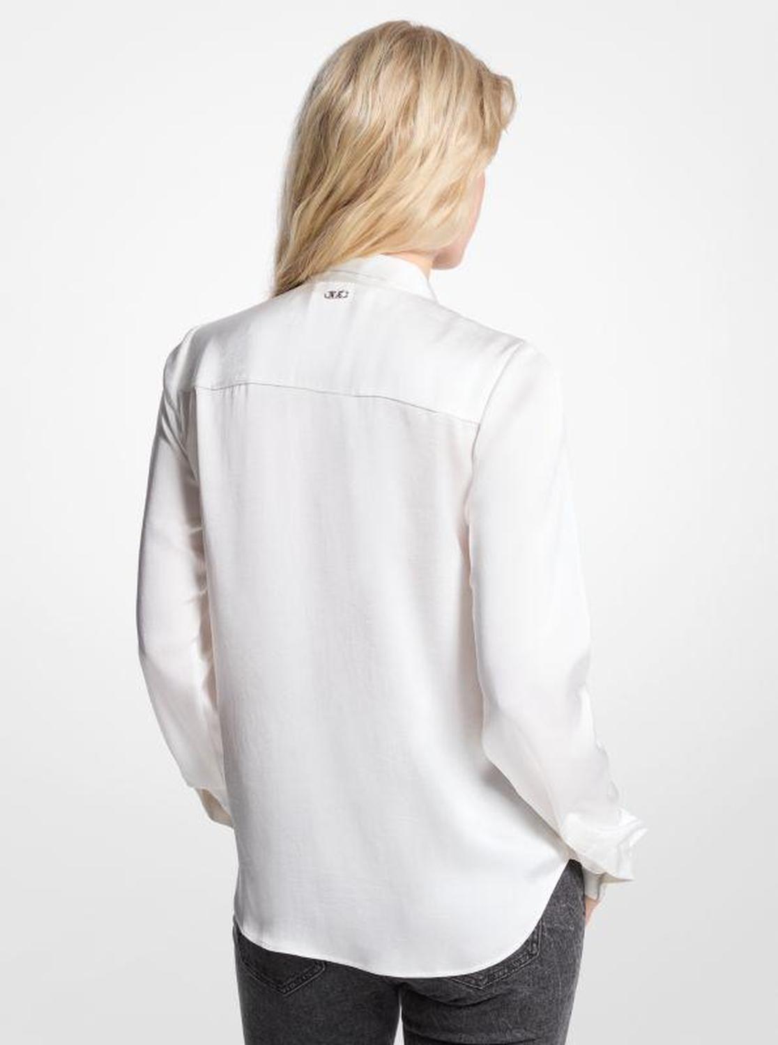 This blouse delivers sophisticated elegance with its luxurious satin construction and dramatic fringed tie-neck detail. It’s perfect for pairing with trousers for a polished office look, or wide-leg jeans for elevated weekend style. • Blouse • Satin • 100% polyester • Trim: 100% polyester • Button fastening • Machine wash • Imported • Model is 5'10"/178 cm wearing size XS • Blouse • Satin • 100% polyester • Trim: 100% polyester • Button fastening • Machine wash • Imported • Model is 5'10"/178 cm wearing size XS