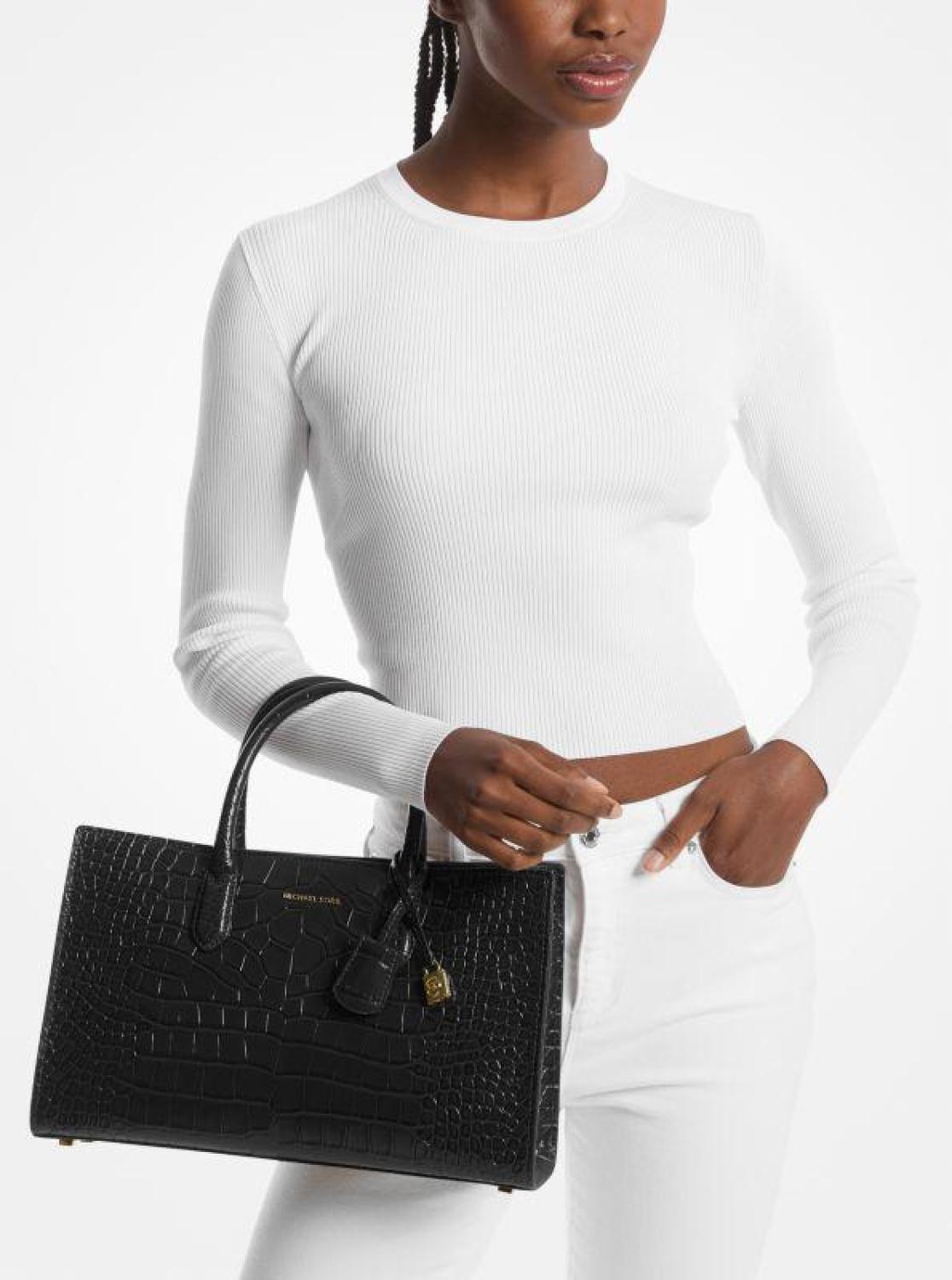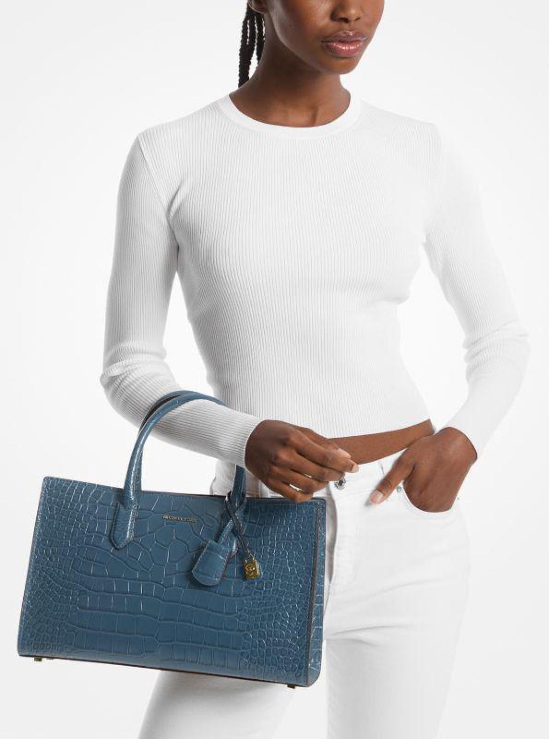 Scarlett Medium Crocodile Embossed Patent Leather Satchel