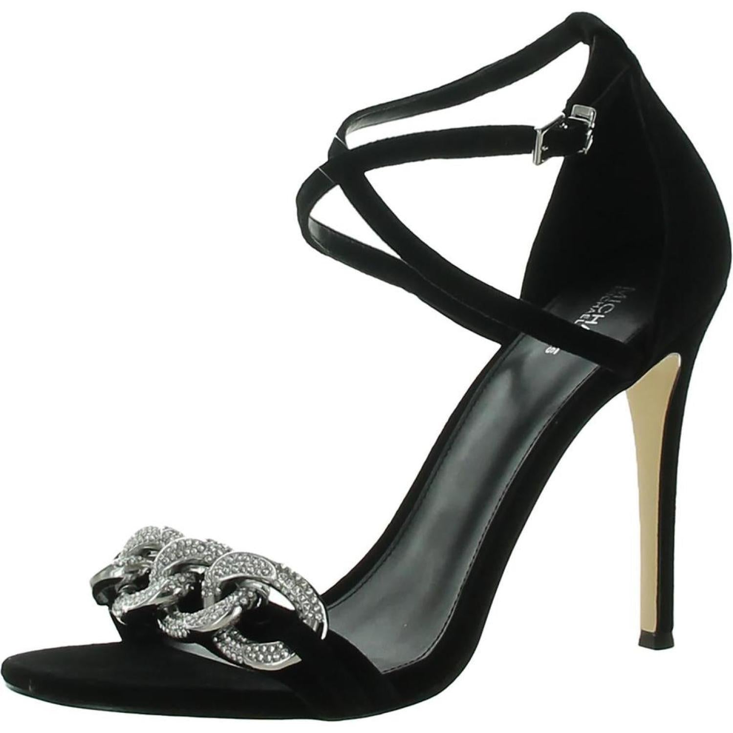Scarlett Womens Leather Rhinestone Heels