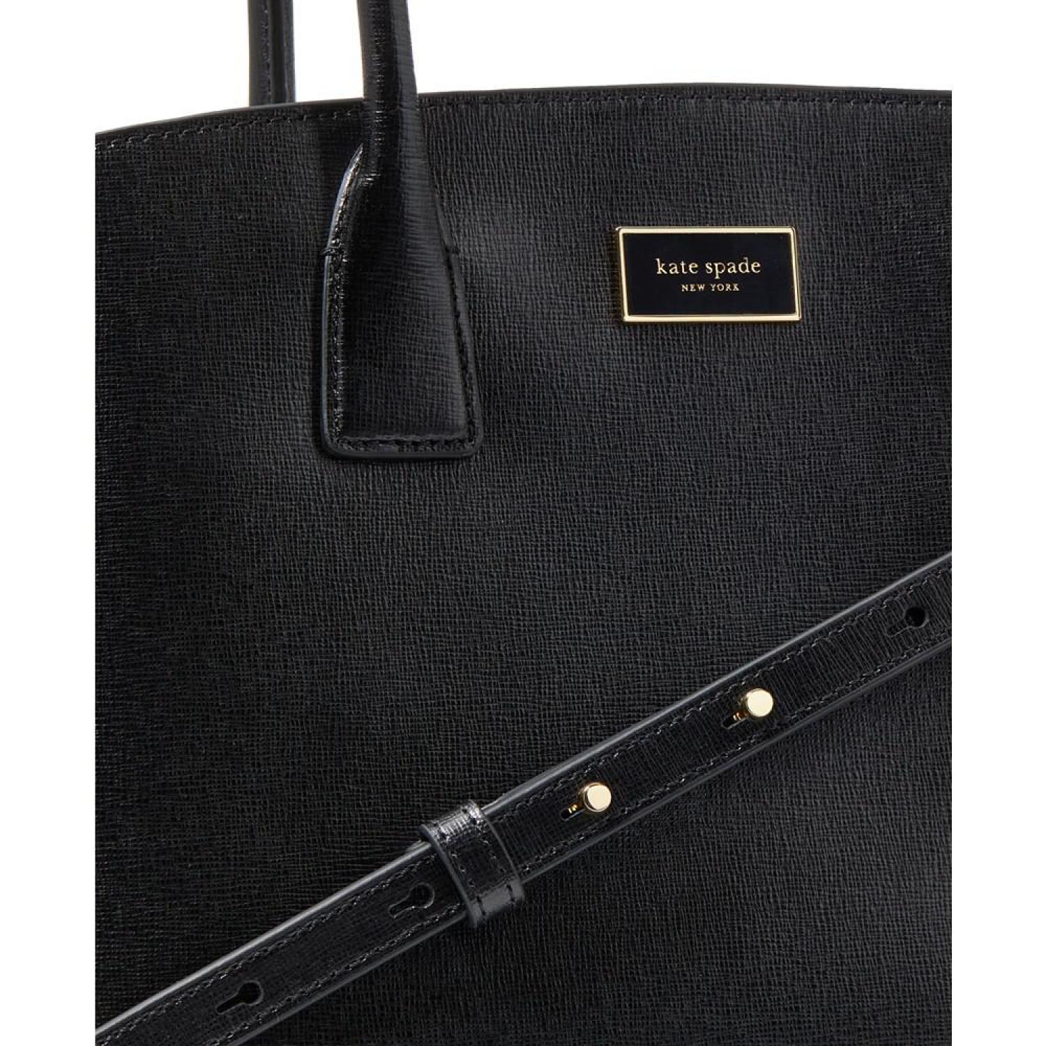 Crafted in a classic silhouette, this leather satchel by Kate Spade New York opens up to an interior capable of keeping you organized with a center zip compartment and snap compartments at the front and back. Grab it by the handles or attach the strap to go handsfree.