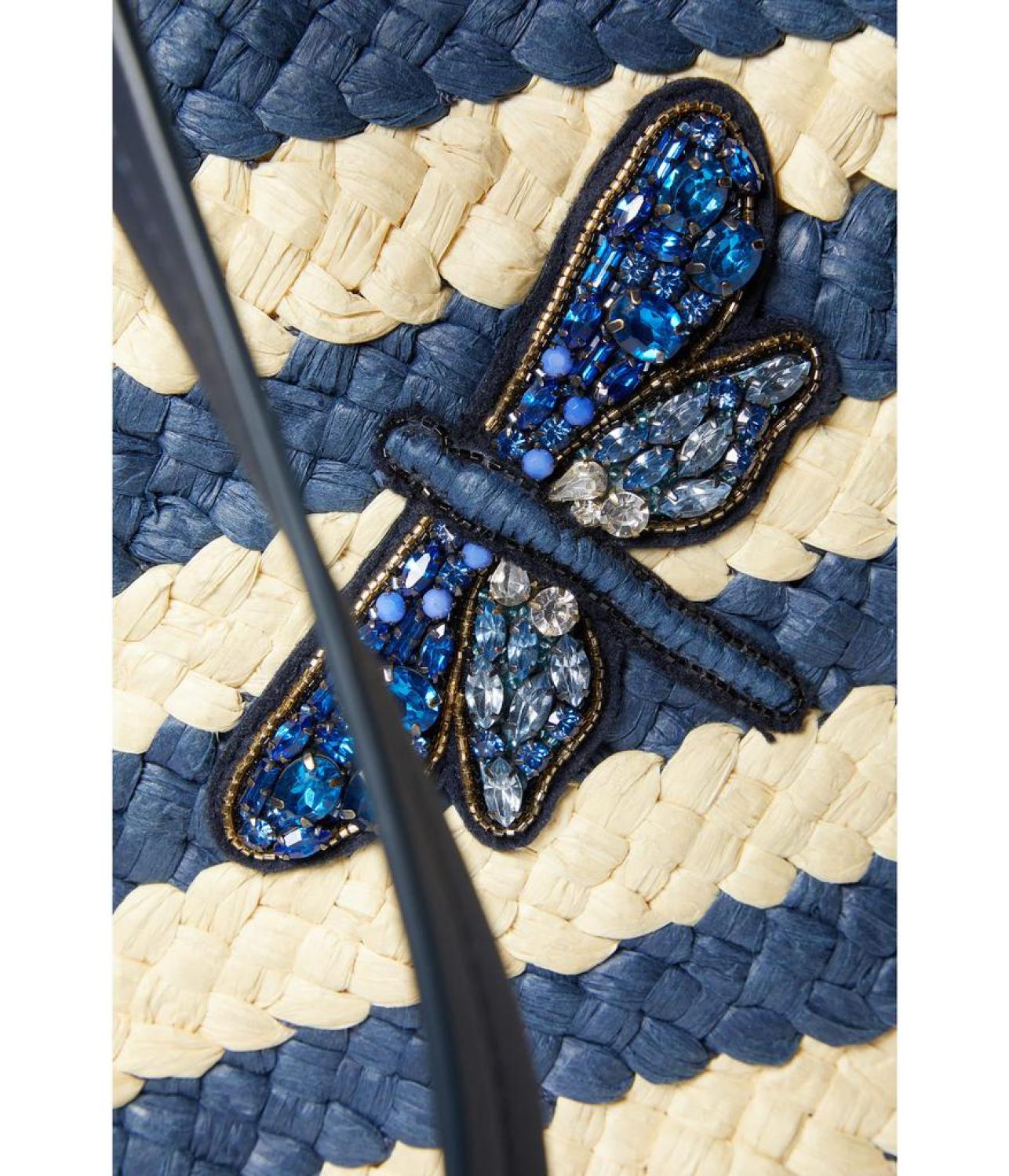 Shore Thing Dragonfly Embellished Striped Straw Large Tote