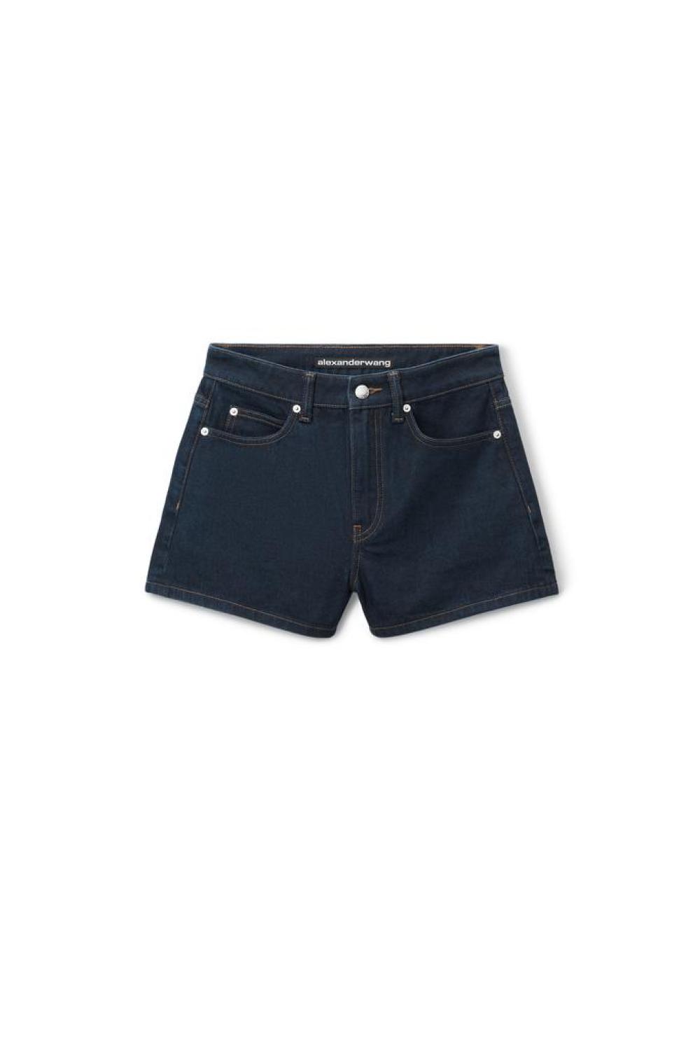 • high-rise shorts with invisible pockets at sides and classic denim pockets at back in clean bright indigo wash