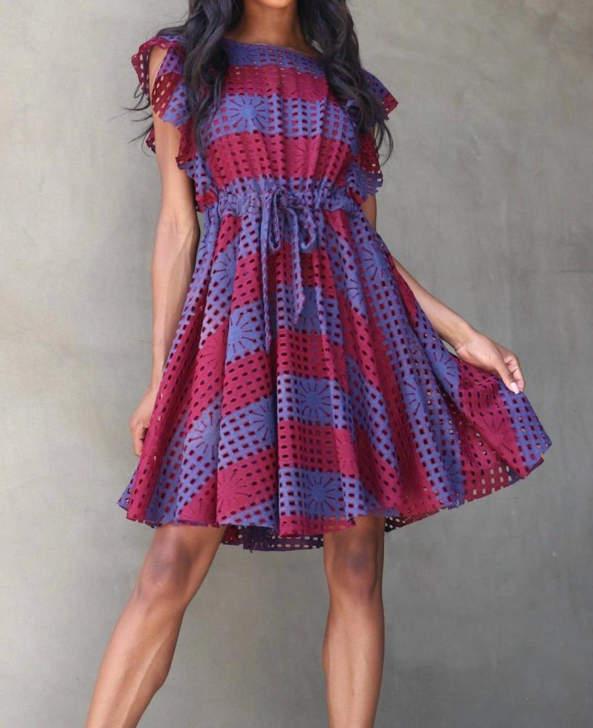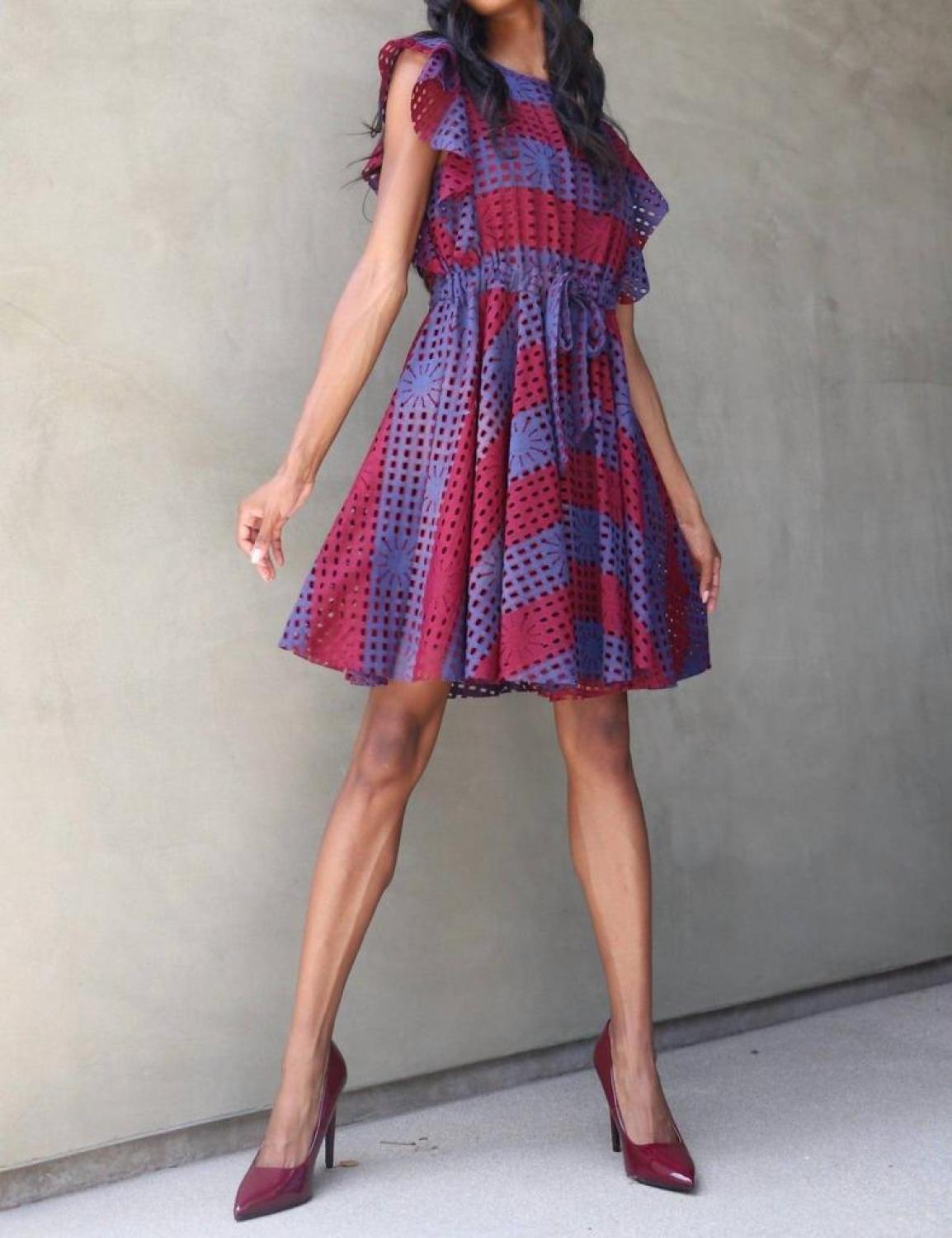 Just add slides or mules and you are good to go. Boat neck Ruffled shoulders Cinched Waistband Tie Midi length Nylon, cotton; polyester lining