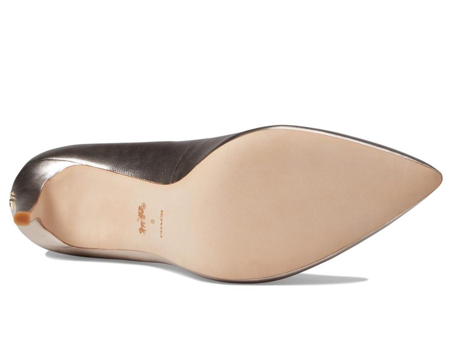 Please Note: COACH™ items cannot be shipped to military addresses (APO or FPO) and addresses in Hawaii, the Virgin Islands, Guam or any other locations outside of the continental US. Featuring an allover metallic finish, the COACH® Skyler Metallic Leather Pump looks glamorous. Metallic leather upper. Leather lining and footbed. Slip-on style. Pointed toe. Stiletto high heel. Metallic branding accent on the back. Leather outsole. Made in Brazil. Weight of footwear is based on a single item, not a pair. Measurements:Heel Height: 3 ½ in