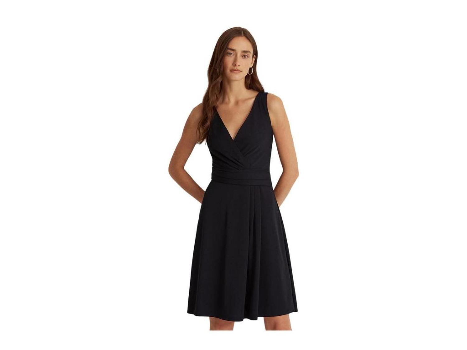 - Look and feel gorgeous as you don a stylish look for a special occasion wearing the LAUREN Ralph Lauren® Sleeveless Jersey Dress. Surplice neckline. Sleeveless style. Knee-length dress. 94% polyester, 6% elastane. Machine wash, tumble dry. Imported. Product measurements were taken using size 4. Please note that measurements may vary by size. Measurements: Length: 40 in