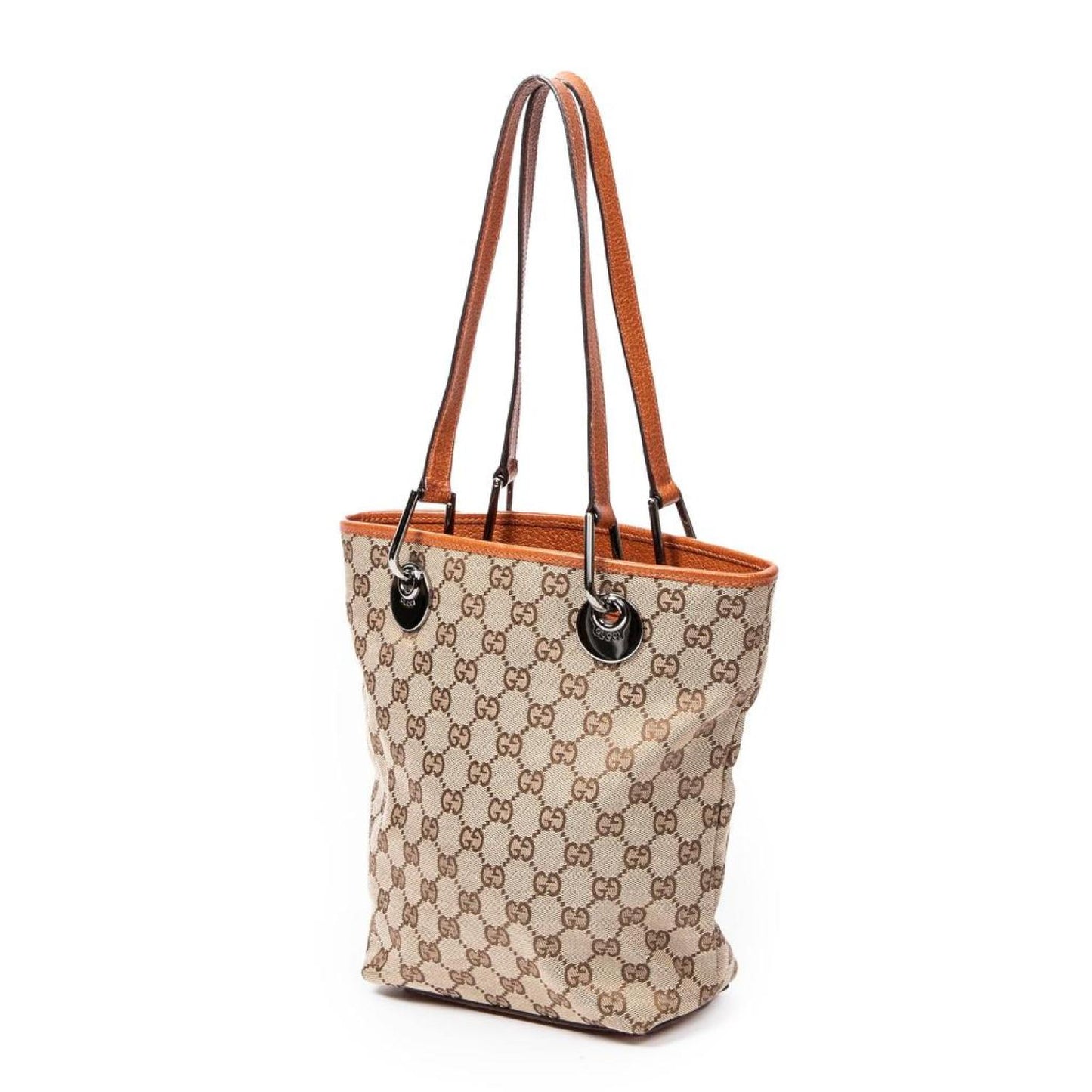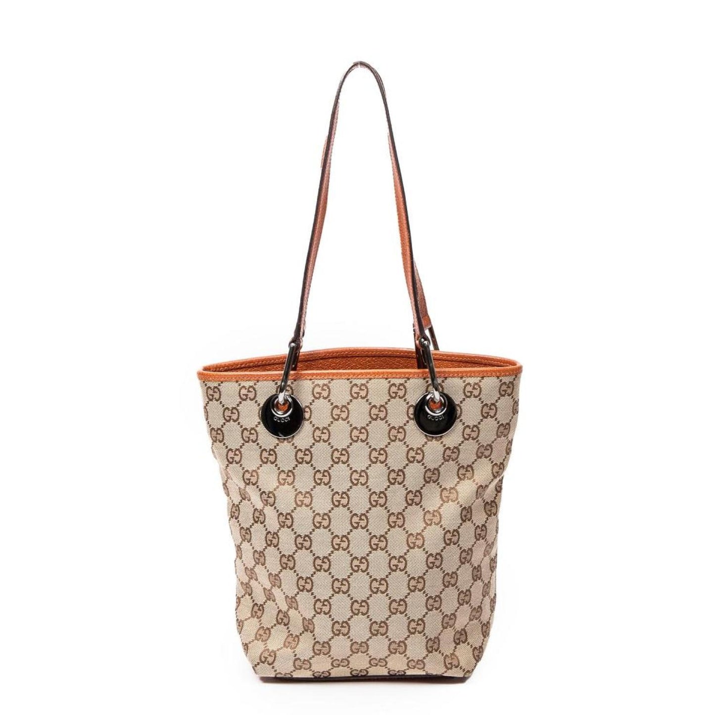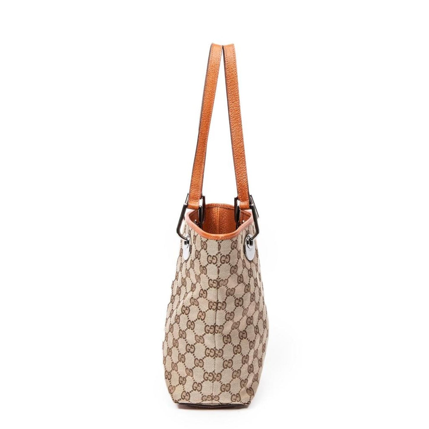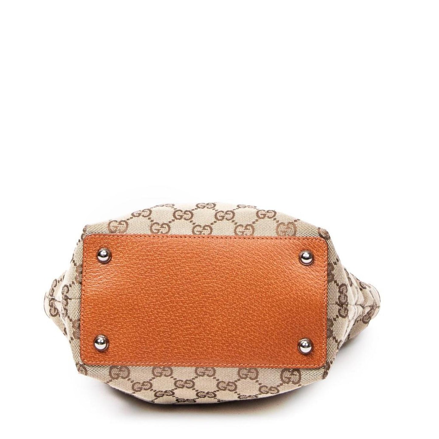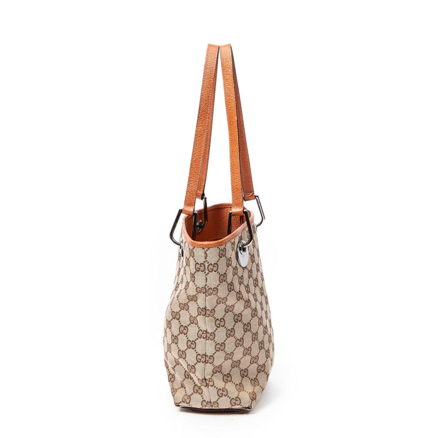 Gucci Shoulder Bag in Beige/Tan Monogrammed Canvas and Silver hardware. Dimensions - 17*24*9cm. Serial number - 120840 3444. Inclusions - None.