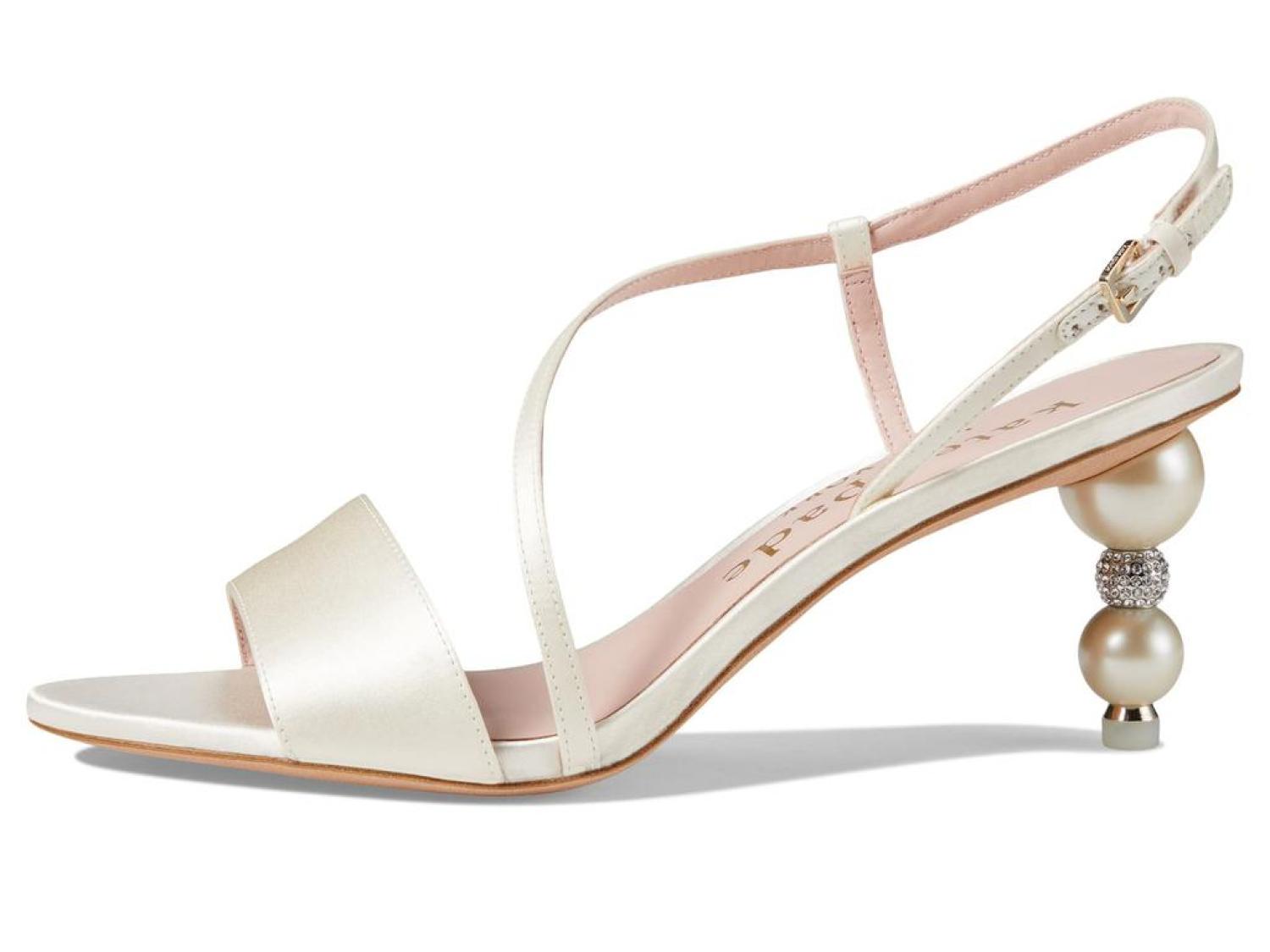 Be the princess of your own kingdom wearing the Kate Spade New York® Sparkle And Shine heels. Satin/leather upper. Leather lining and insole. Adjustable strap buckled closure. Brand name embossed on the footbed. Open almond toe design. Sculptural heel. Leather outsole. Imported. Product measurements were taken using size 9, width B - Medium. Please note that measurements may vary by size. Measurements: Heel Height: 3 in Weight: 9 oz-