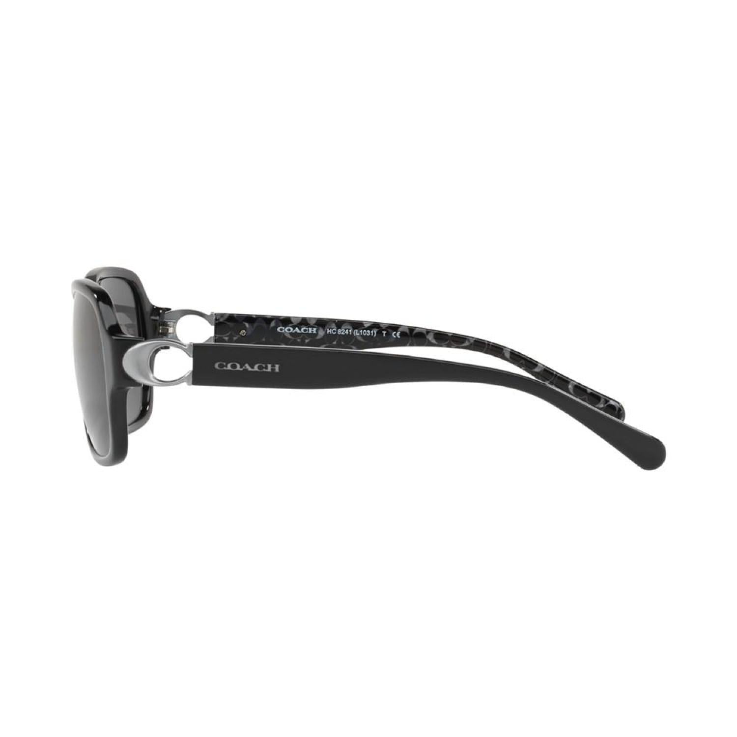 Coach Eyewear is a quality lifestyle accessory offering classic American design and functionality. The Coach Eyewear Collection consists of modern designs with trend-right frames and lens colors developed to match every face tone. Lenses are made from the highest-quality materials, provide 100% UV protection, and are optically correct and distortion free. A Coach signature grommet is at the end of each frame's temple tip. Each Coach sunglass style features a logo treatment based on one of four primary logo collections. Gender: FEMALE Frame Style: RECTANGLE Frame Fit: STANDARD Lens Material: POLYAMIDE Eye/Bridge/Temple: 57/17/140 Case or Microfiber pouch included