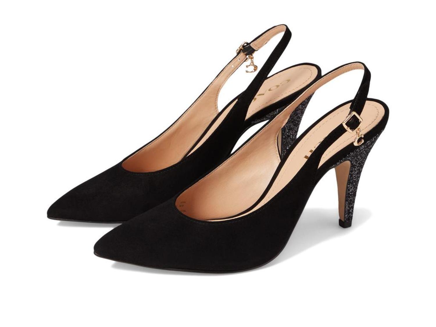 Style like a diva by wearing COACH® Sutton Glitter Slingback Pump.