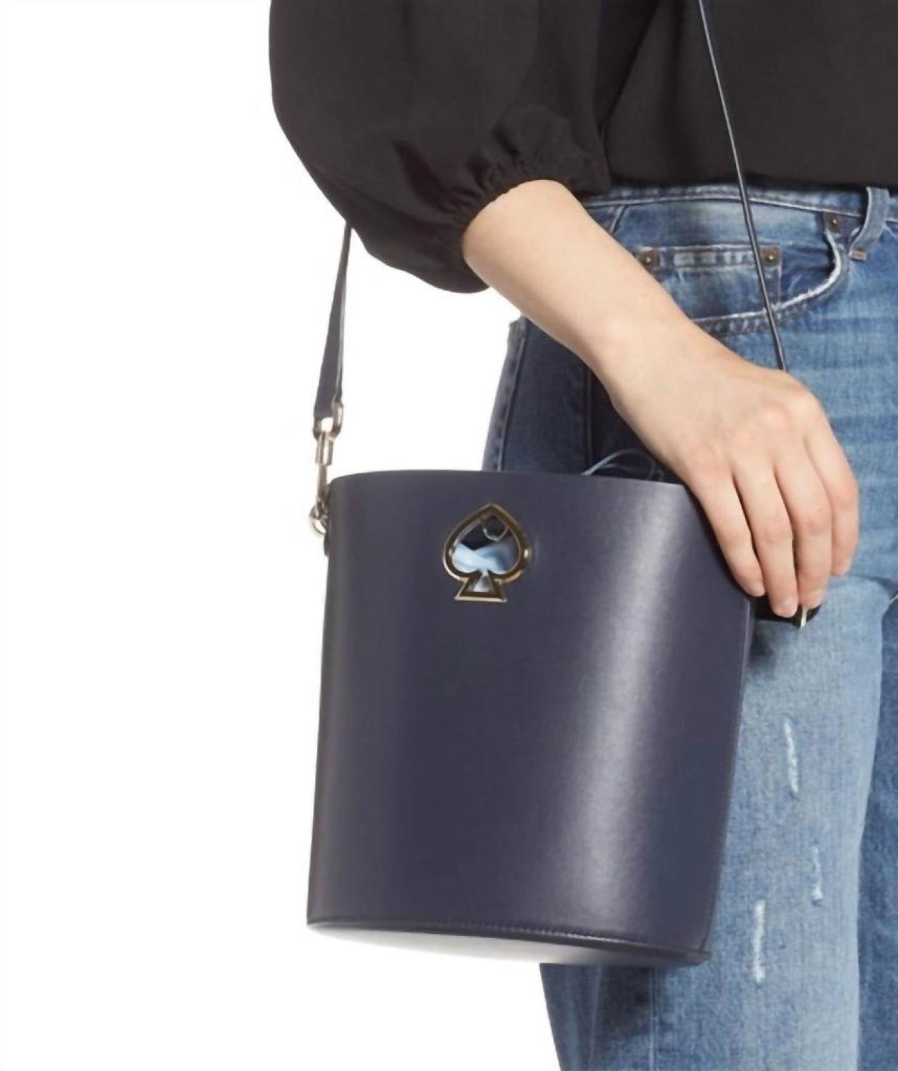 • The crossbody bag is a trend that is here to stay and we especially love this style.Smooth Italian leather. Faux lambskin lining with removable soft faille drawstring pouch. Spade grommet. Bucket bag with dog clip closure. Optional (and adjustable) shoulder strap. Size - 8.5"h x 9"w x 5"d. Handle drop - 7". Strap drop - 18"