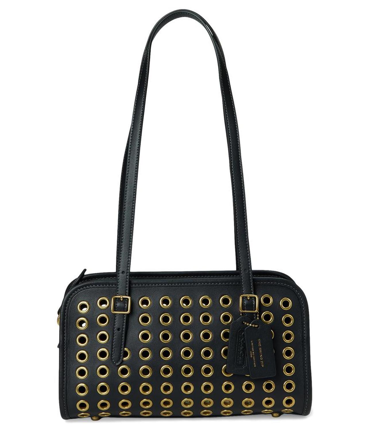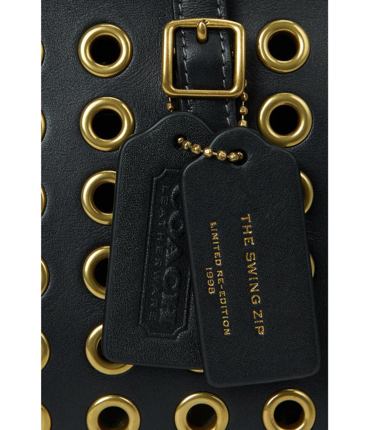 Please Note: COACH™ items cannot be shipped to military addresses (APO or FPO) and addresses in Hawaii, the Virgin Islands, Guam or any other locations outside of the continental US. Crafted from glovetanned leather, the COACH™ Swing Zip Bag with Grommets give your everyday style some added flair with grommets on the exterior and a top zipper closure. This bag also features adjustable handles, an interior zip pocket, one credit card slot, and four protective feet at the base. Leather lining. Imported. Measurements: Bottom Width: 10 1/2 in Depth: 3 1/2 in Height: 6 in Handle Length: 25 in Handle Drop: 12 in Weight: 15.3 oz