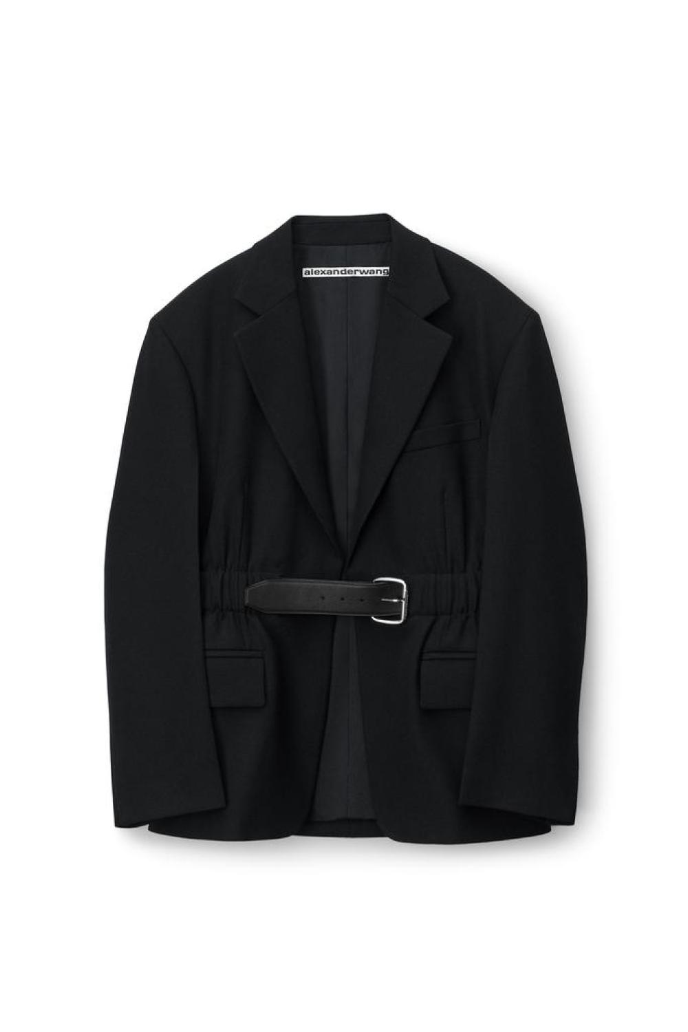 Black 3 pleat tailored trouser in buttery lambskin leather and embossed logo at center back waistband baggy fit features besom pockets at back and logo waistband curtain metal zipper at hidden fly full length lined exterior composition: 100% lambskin/ lining: 100% viscose made in china model is 5'11" and wears size s 1WC4234659001