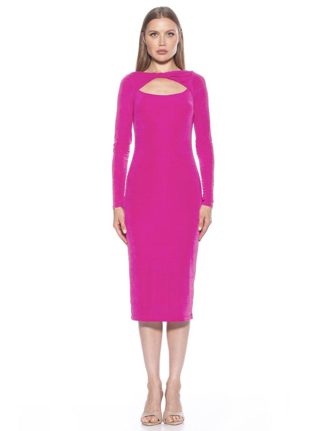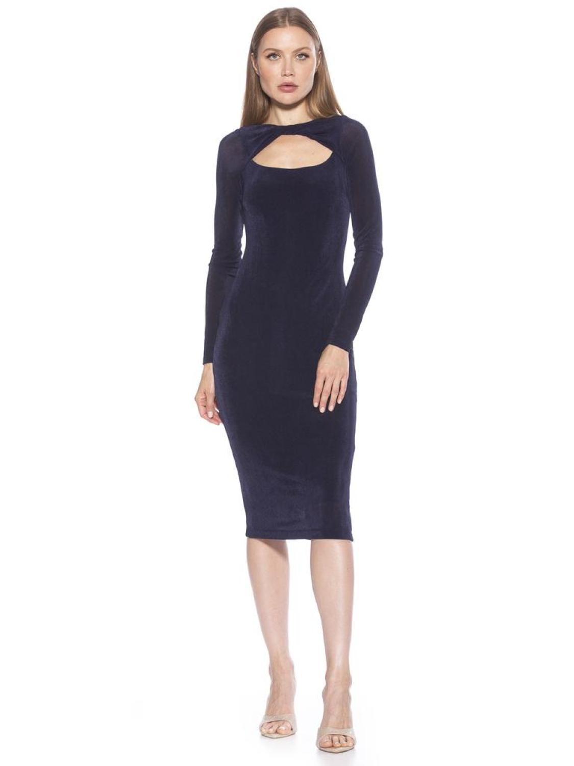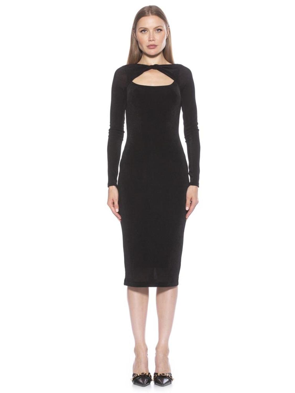 The Tanya dress has a body-hugging silhouette, striking twist-front neckline, and a cocktail-length hem - get ready to have all eyes on you. Twist Front Cutout Neckline Long Sleeve Midi Dress Body Con 93% POLY, 7% SPLINING 100% POLY TANYA TWIST FRONT CUTOUT LONG SLEEVE MIDI DRESS Imported Style D4098