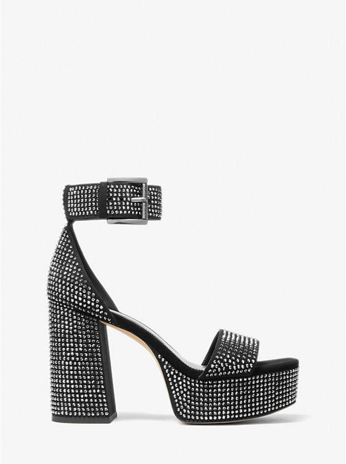 Tara Crystal Embellished Faux Suede Platform Sandal