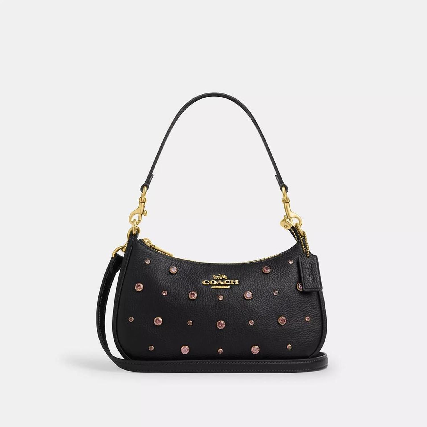 Crystal fabric and refined pebble leather Inside multifunction pocket Zip-top closure fabric lining Detachable handle with 8 1/2 drop Detachable strap with 22 3/4 drop for shoulder or crossbody wear 9 1/2 (L) x 6 (H) x 3 (W) Style No. CAL48 | Coach Outlet Teri Shoulder Bag With Crystal - Black