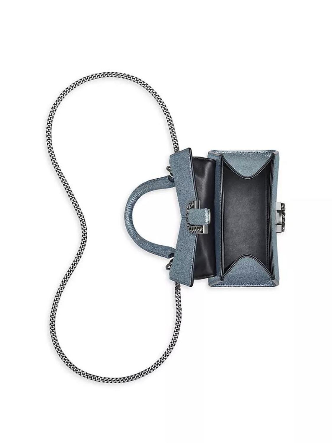 Marc Jacobs' The Galactic Glitter St. Marc mini bag is a compact accessory with a distinctive M shape. This versatile piece can be worn as a top handle or transformed into a crossbody bag with the addition of the removable chain strap. Top handle Removable crossbody chain strap Interior: two card slots Magnetic snap closure Leather/polyurethane Lining: cotton/polyurethane/other fibers Spot clean Imported SIZE About 7.32"W x 3.74"H x 5.71"D Top handle: about 3.74" drop Removable crossbody chain strap: about 22.44"L Marc Jacobs' The Galactic Glitter St. Marc mini bag is a compact accessory with a distinctive M shape. This versatile piece can be worn as a top handle or transformed into a crossbody bag with the addition of the removable chain strap.Top handleRemovable crossbody chain strapInterior: two card slotsMagnetic snap closureLeather/polyurethaneLining: cotton/polyurethane/other fibersSpot cleanImportedSIZEAbout 7.32"W x 3.74"H x 5.71"DTop handle: about 3.74" dropRemovable crossbody chain strap: about 22.44"L