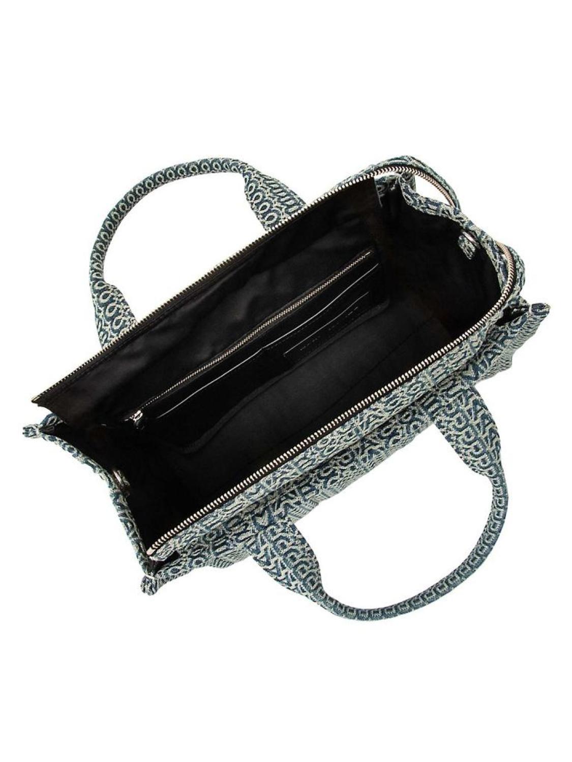 The Medium Monogram Denim Tote Bag from Marc Jacobs is rendered in denim with a monogram pattern.Two top handlesAdjustable, removable shoulder strapInterior: one card slot, one zip, two slip pocketsTop-zip closure100% cottonLining: 100% polyesterImportedSIZEAbout 13"W x 10"H x 6"DTwo top handles, about 4.75" dropAdjustable, removable shoulder strap, about 27" drop