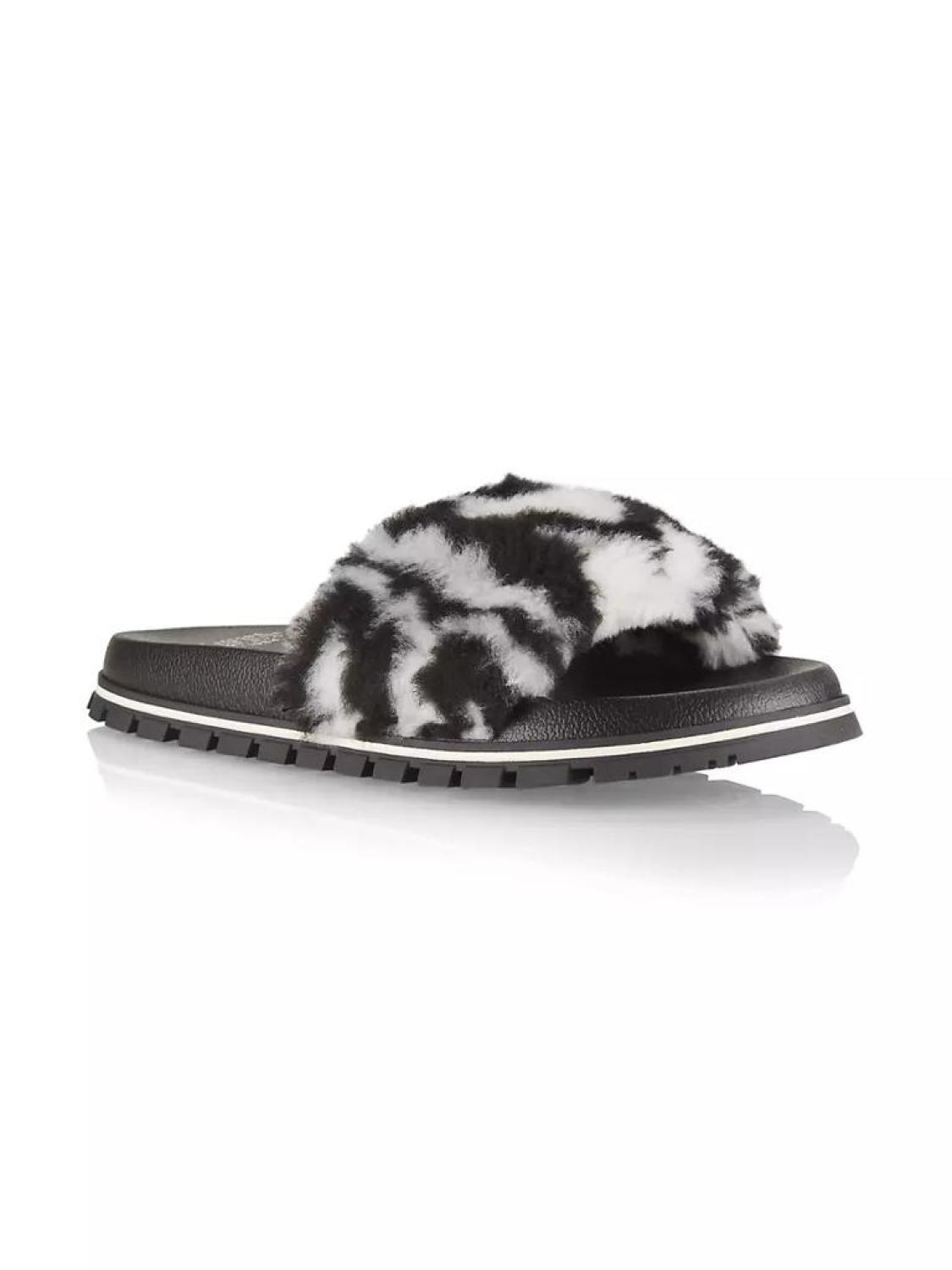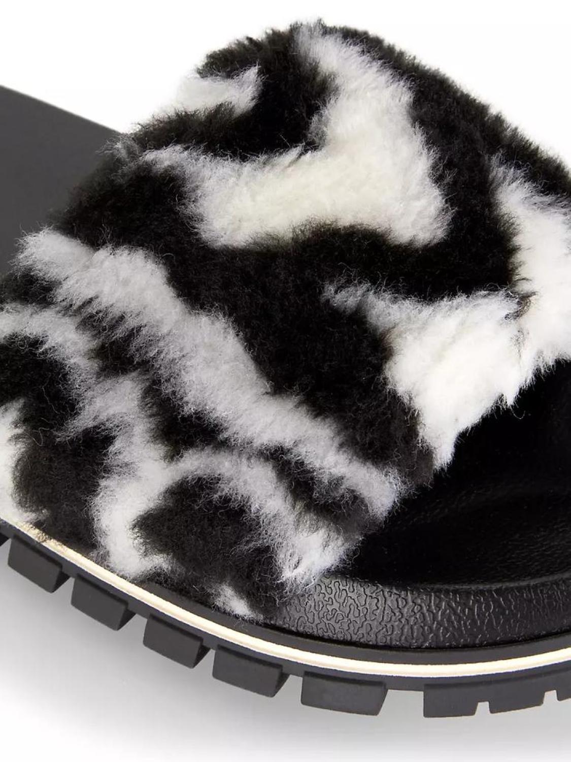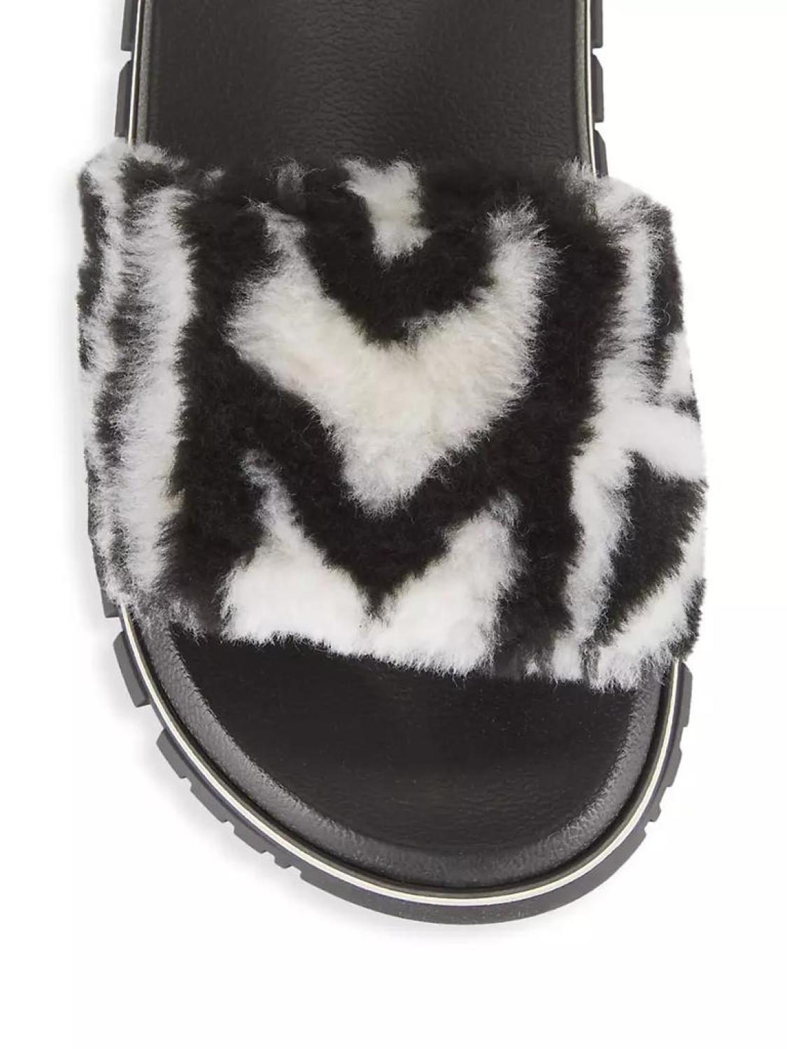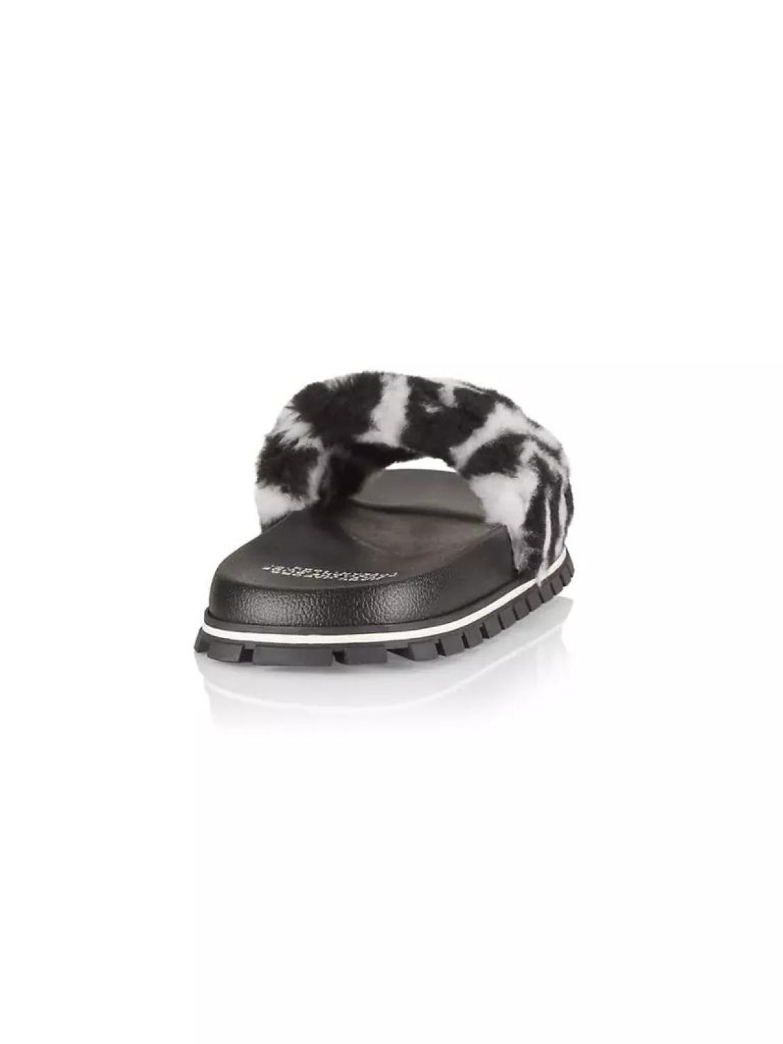 Crafted of teddy fabric, these Marc Jacobs slides are printed with a monogram pattern. Open toe Slips on Textile upper Textile lining Synthetic sole Fur type: Faux Imported Crafted of teddy fabric, these Marc Jacobs slides are printed with a monogram pattern.Open toeSlips onTextile upperTextile liningSynthetic soleFur type: FauxImported