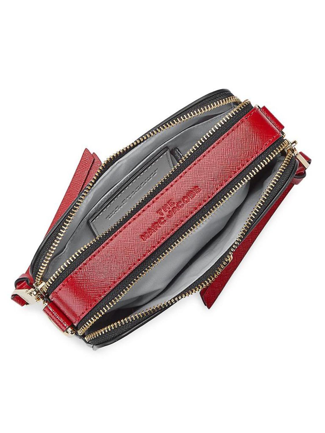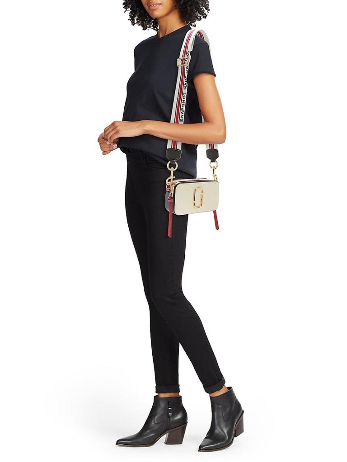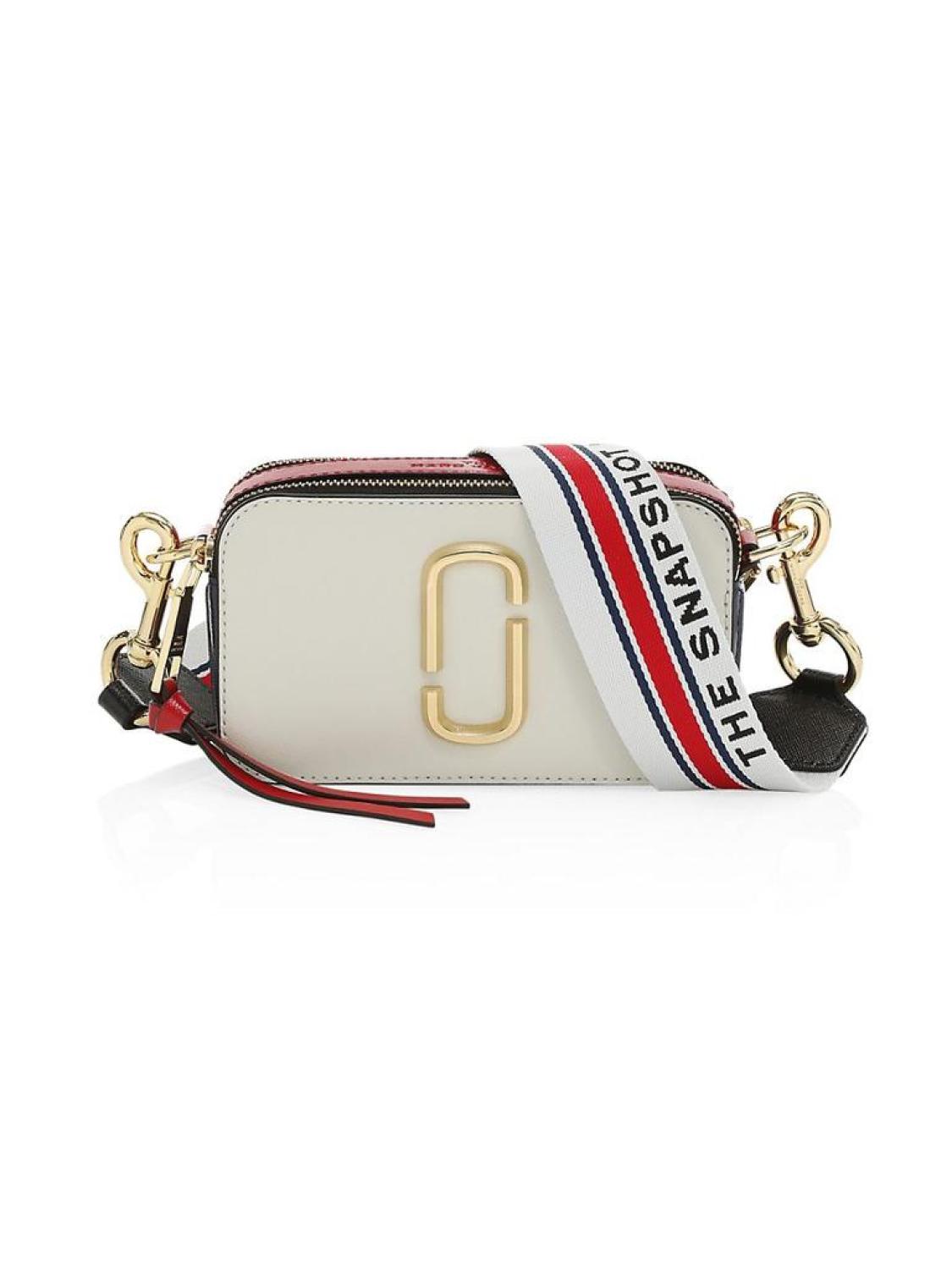 Marc Jacobs' signature camera bag silhouette featuring a striped webbing strap and colorblock leather construction.Adjustable removable crossbody strapDual top zipGoldtone hardware2 interior compartmentsInterior slip pocketLeatherImportedSIZE7.5"W x 4.5"H x 2.5"D