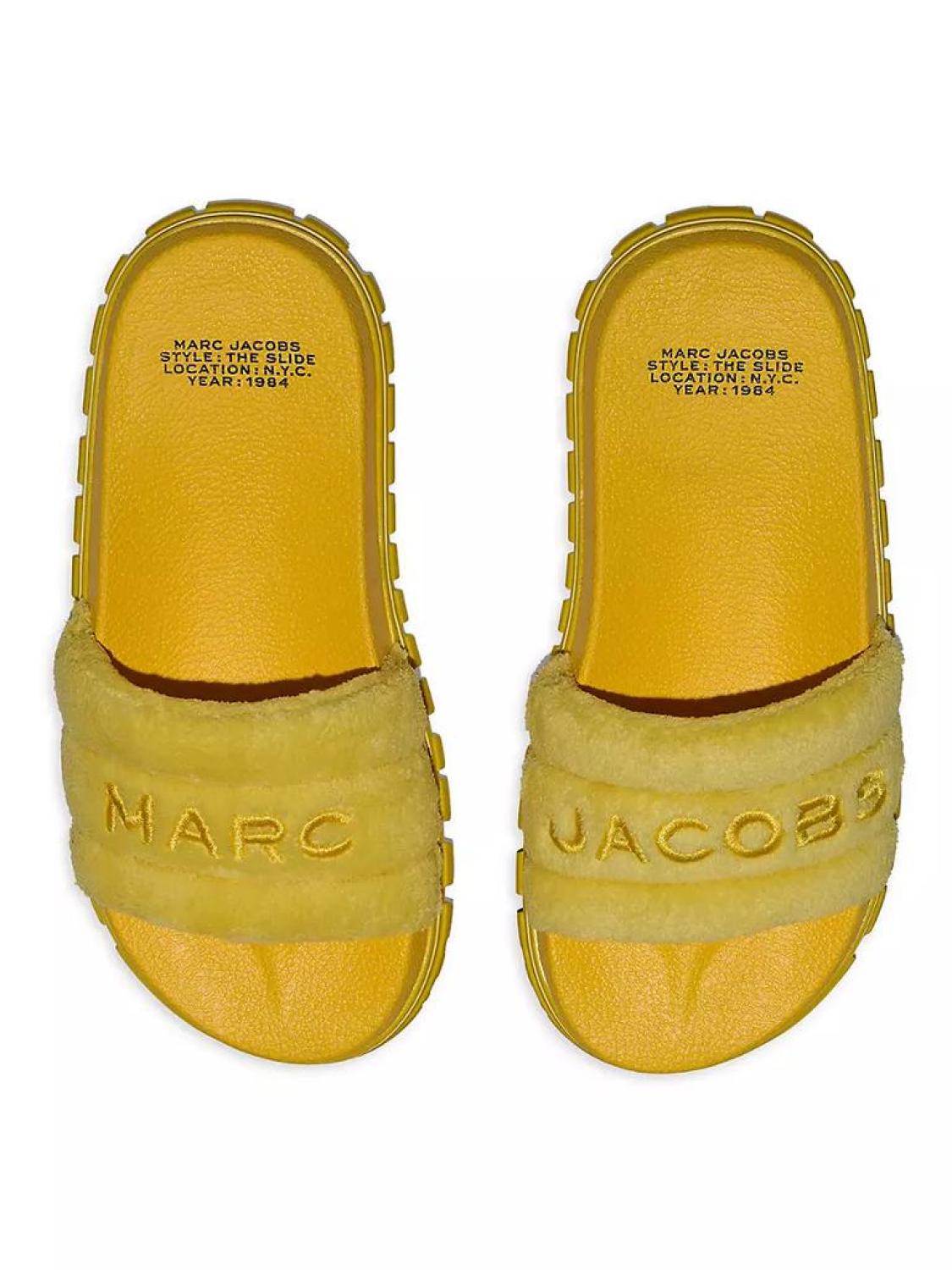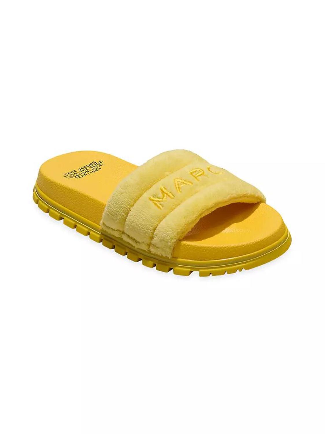 Crafted of logo embroidered soft terry, The Slides by Marc Jacobs are elevated with a lugged sole. 100% polyester upper Open toe Slip-on style Rubber sole Imported Crafted of logo embroidered soft terry, The Slides by Marc Jacobs are elevated with a lugged sole.100% polyester upperOpen toeSlip-on styleRubber soleImported