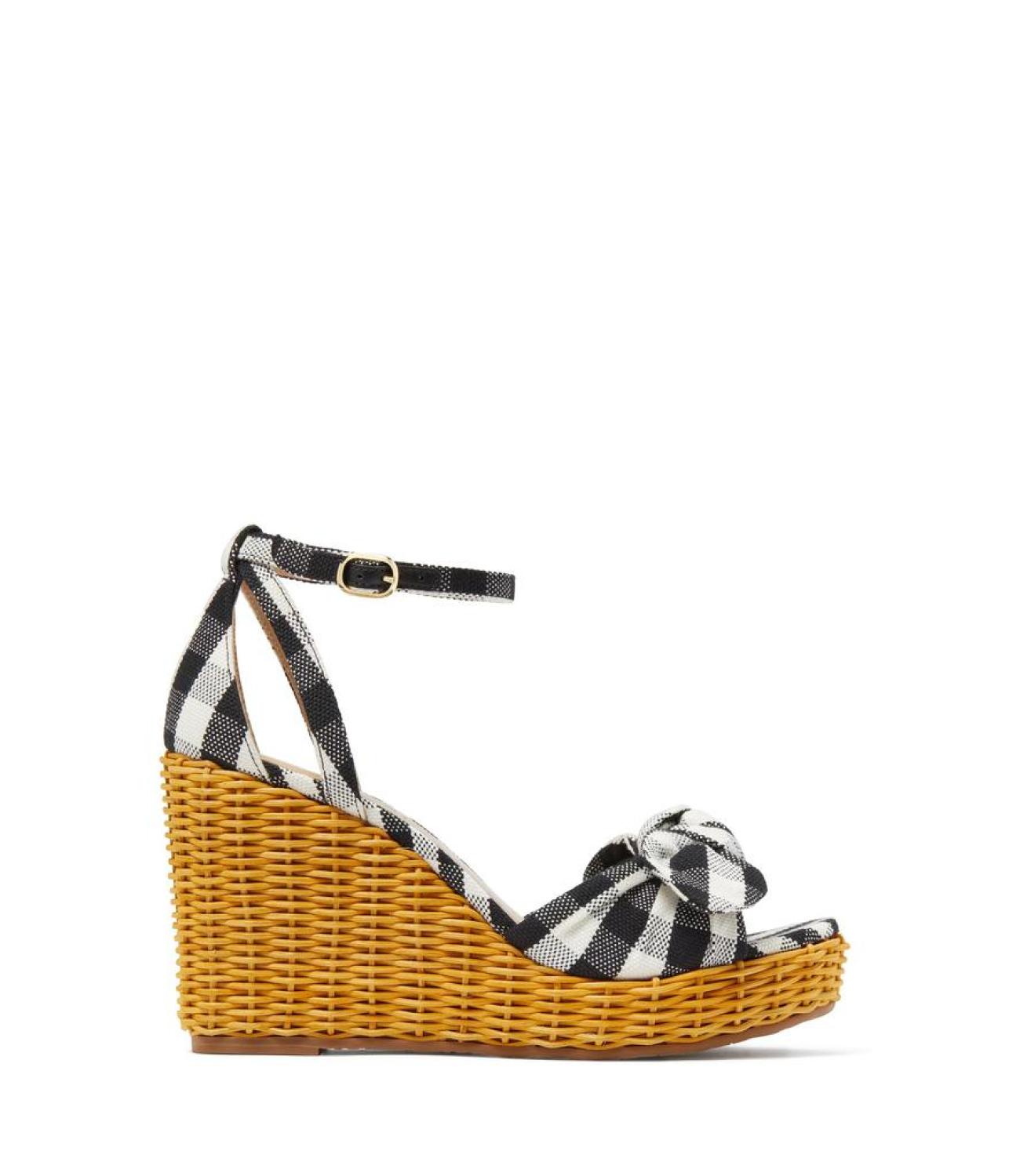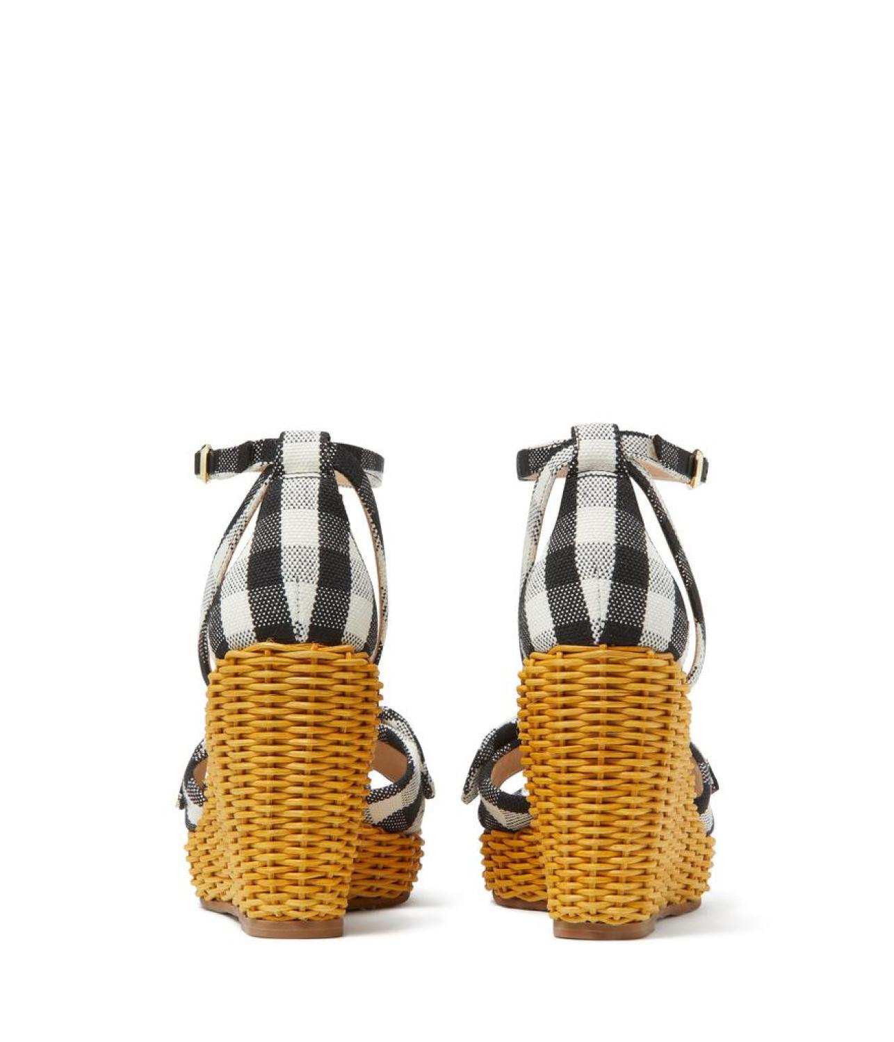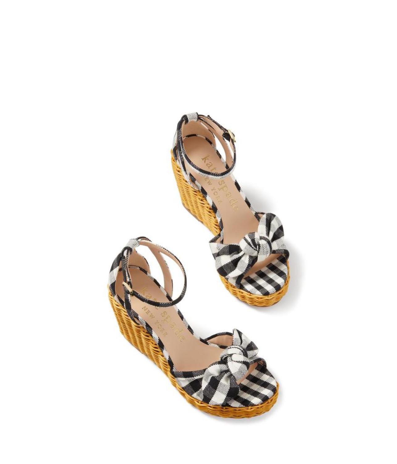 • Step into spring with Kate Spade New York® Tianna Wicker, where chic meets comfort. Elevate your style with these suede wedges, boasting a wicker-wrapped heel that adds a touch of whimsy to picnics or patio parties. The backstrap closure ensures a secure fit, while the leather insole guarantees all-day comfort for every step.