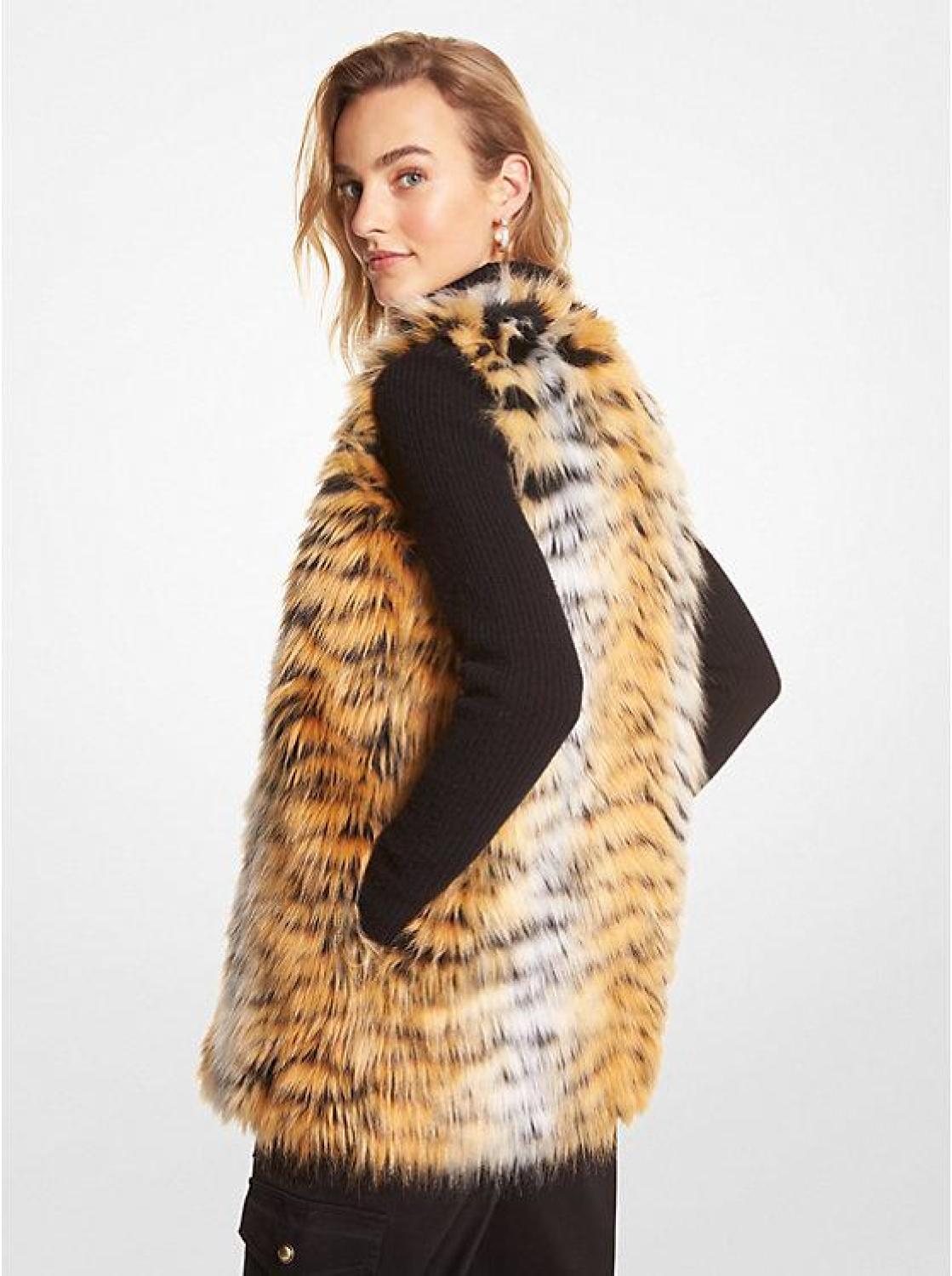 Take a walk on the wild side with this tiger-print vest. Made from plush faux fur, it’s cut for an enveloping fit and lined to easily layer over the season’s chunky knits. Keep it in focus with a monochrome outfit.