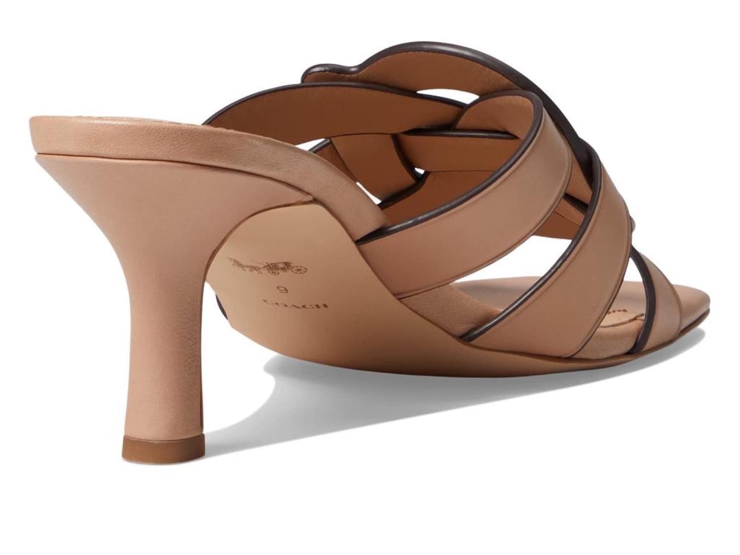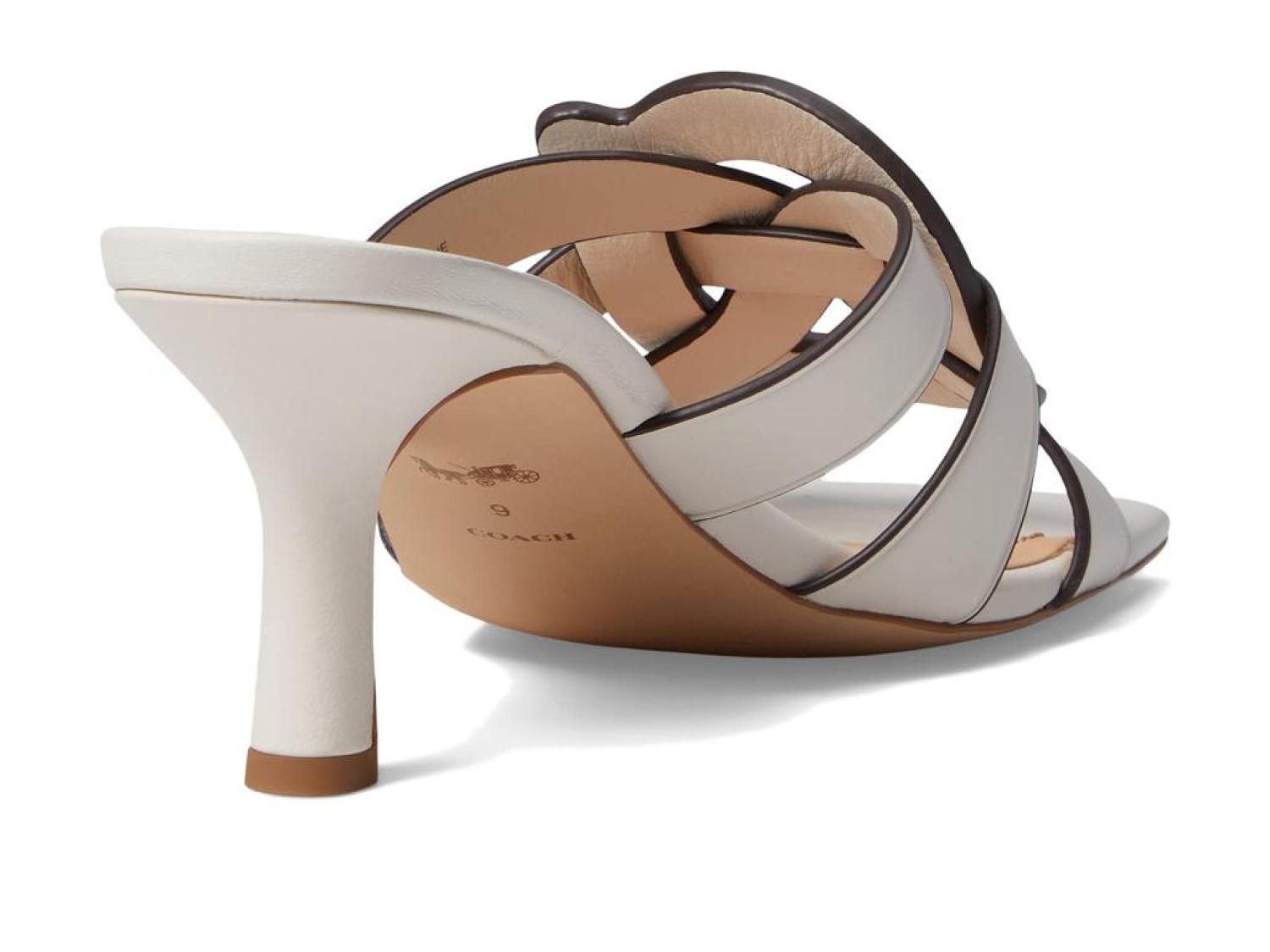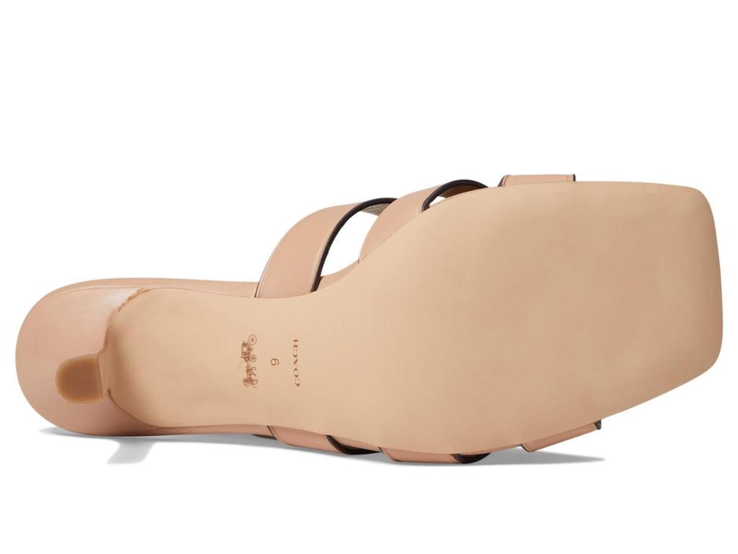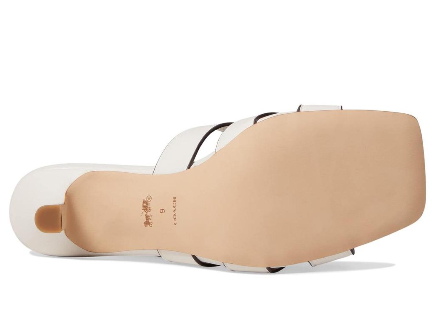 Please Note: COACH™ items cannot be shipped to military addresses (APO or FPO) and addresses in Hawaii, the Virgin Islands, Guam or any other locations outside of the continental US. Bring on that appealing touch to your attire by slipping into the COACH® Tillie Leather Sandal sandals. Leather upper with cutout details. Leather lining with a cushioned footbed. Open square toe silhouette. Easy slip-on style. Unique design on the upper with crisscross detail in the center. Brand name embossed on the footbed. Stiletto heel. Durable leather and rubber outsole. Imported. Product measurements were taken using size 9, width B - Medium. Please note that measurements may vary by size. Measurements: Heel Height: 3 in Weight: 8 oz-