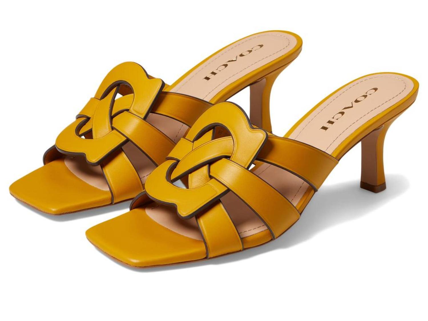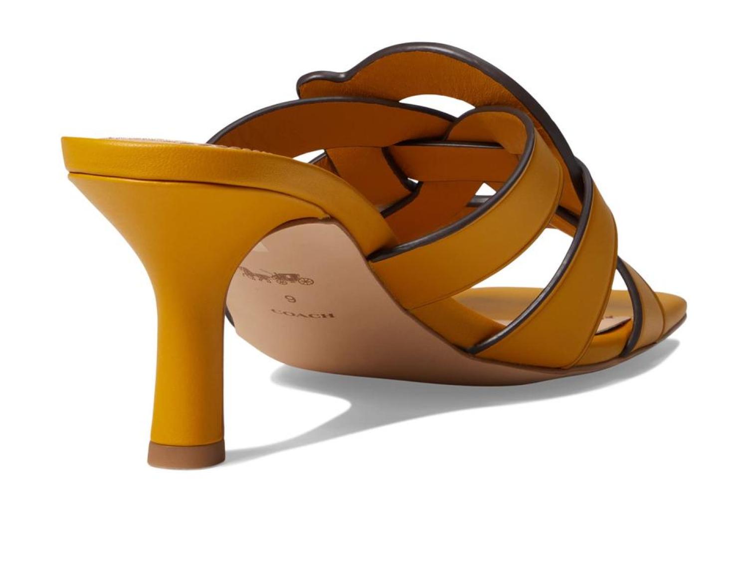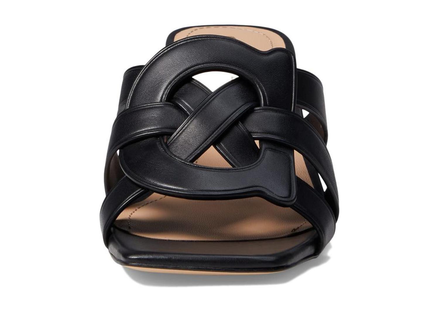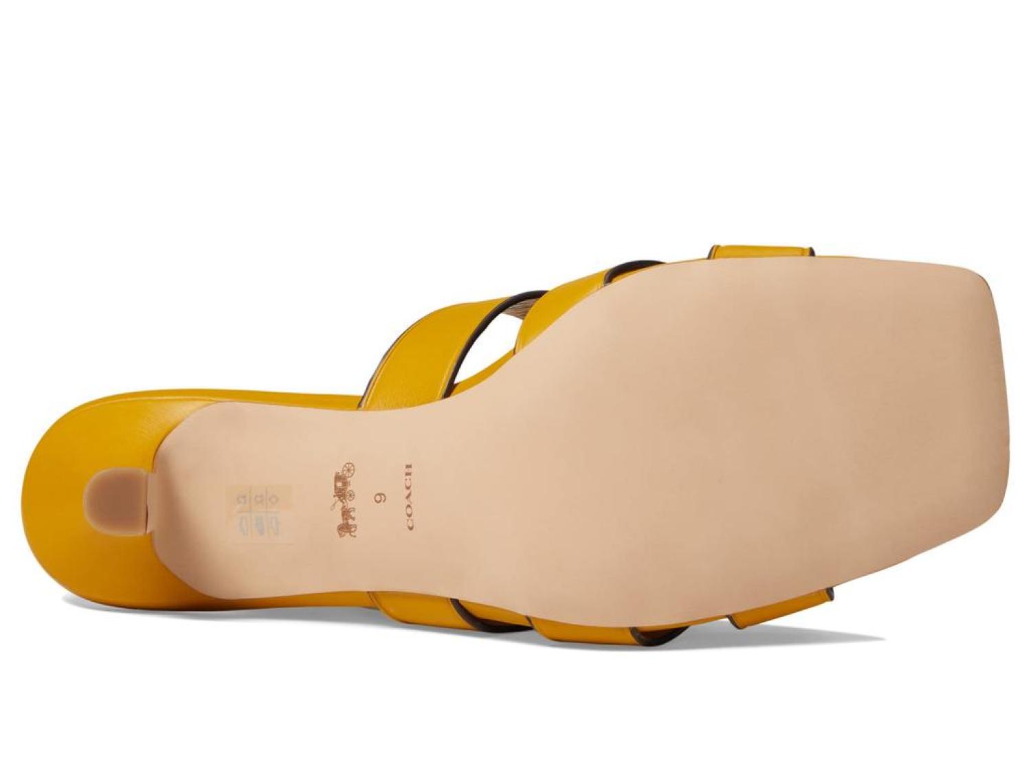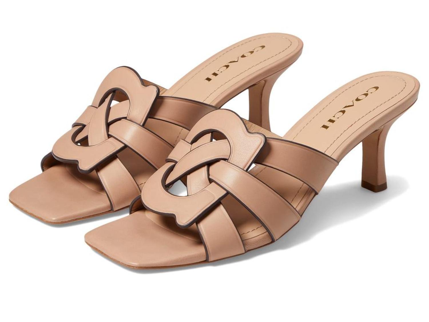 Please Note: COACH™ items cannot be shipped to military addresses (APO or FPO) and addresses in Hawaii, the Virgin Islands, Guam or any other locations outside of the continental US. Bring on that appealing touch to your attire by slipping into the COACH® Tillie Leather Sandal sandals. Leather upper with cutout details. Leather lining with a cushioned footbed. Open square toe silhouette. Easy slip-on style. Unique design on the upper with crisscross detail in the center. Brand name embossed on the footbed. Stiletto heel. Durable leather and rubber outsole. Imported. Product measurements were taken using size 9, width B - Medium. Please note that measurements may vary by size. Measurements: Heel Height: 3 in Weight: 8 oz-