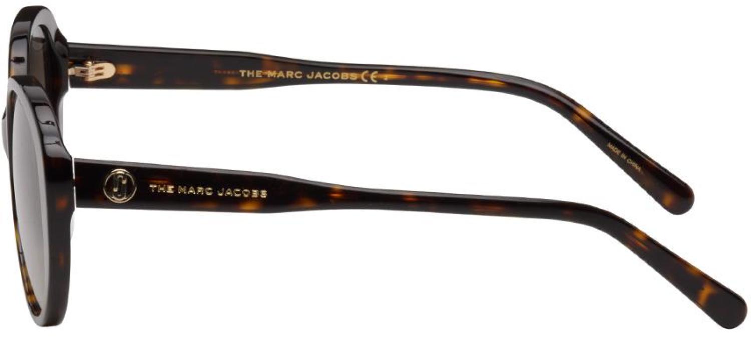 - Marc Jacobs Tortoiseshell Oval Sunglasses Oval acetate-frame sunglasses in tortoiseshell. · Brown lenses · Adjustable rubber nose pads · Logo hardware at temples · Logo etched at temples · Hardside case included · Size: 54.19 145 Supplier color: Havana Acetate. Made in China. 231190F005038