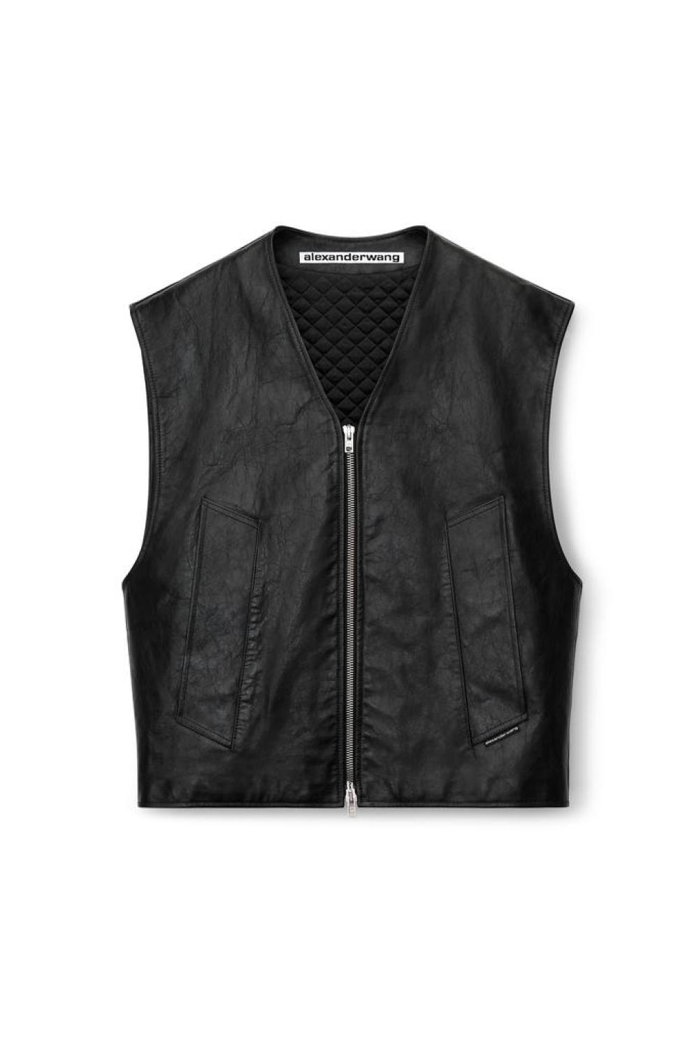 oversized track jacket with piping details, alexander wang emboss logo at back, and drawcord hem for adjustable fit in black athletic satin jersey